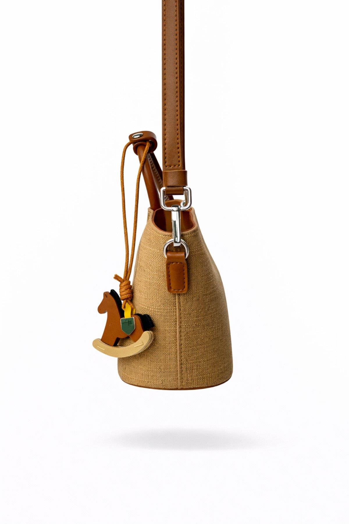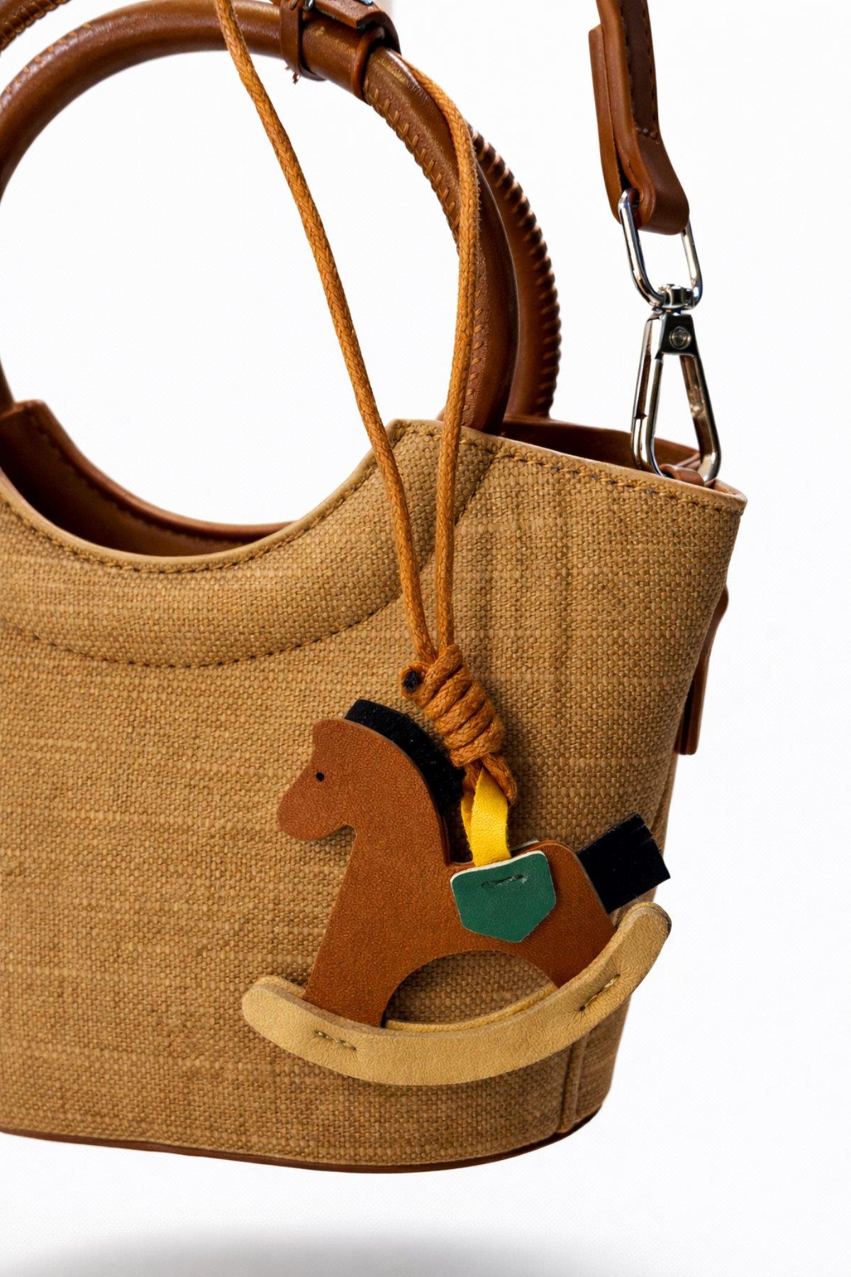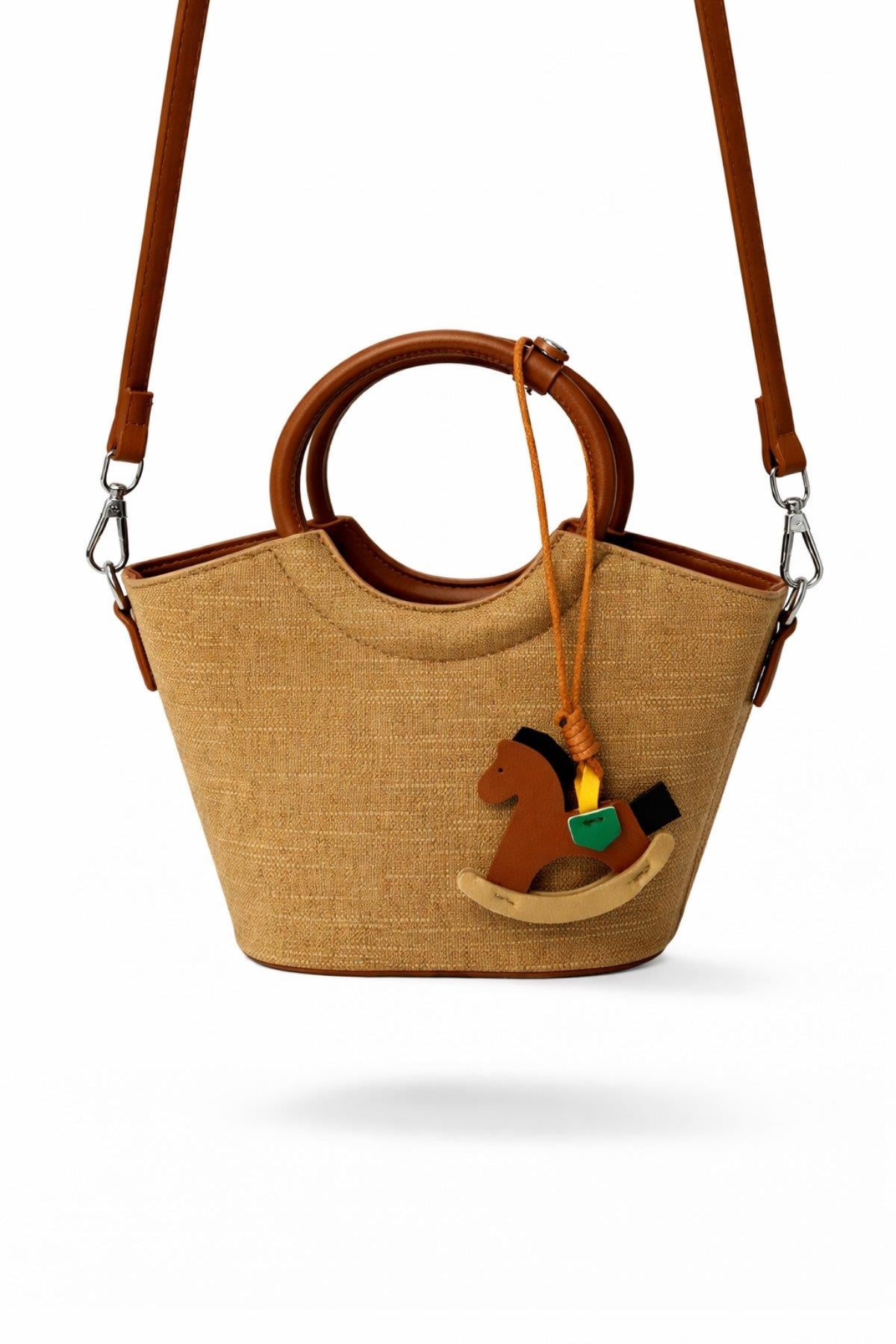2069 Hasır Touch Charm Aksesuarlı Mini Kadın Omuz Çantası Bej (Y26CNT2069-125)