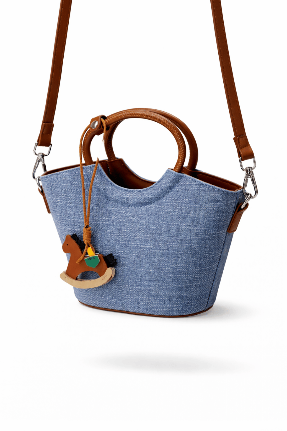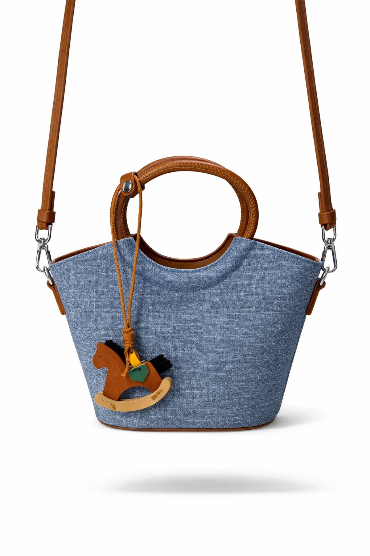 2069 Hasır Touch Charm Aksesuarlı Mini Kadın Omuz Çantası Mavi (Y26CNT2069-102)
