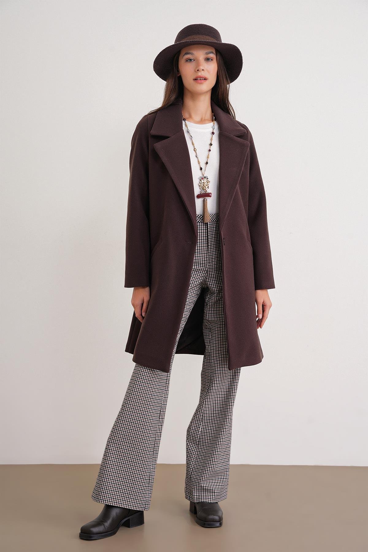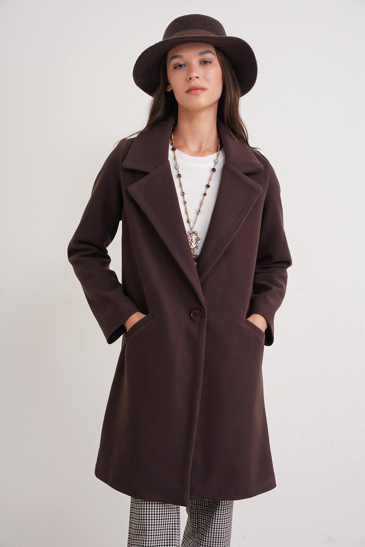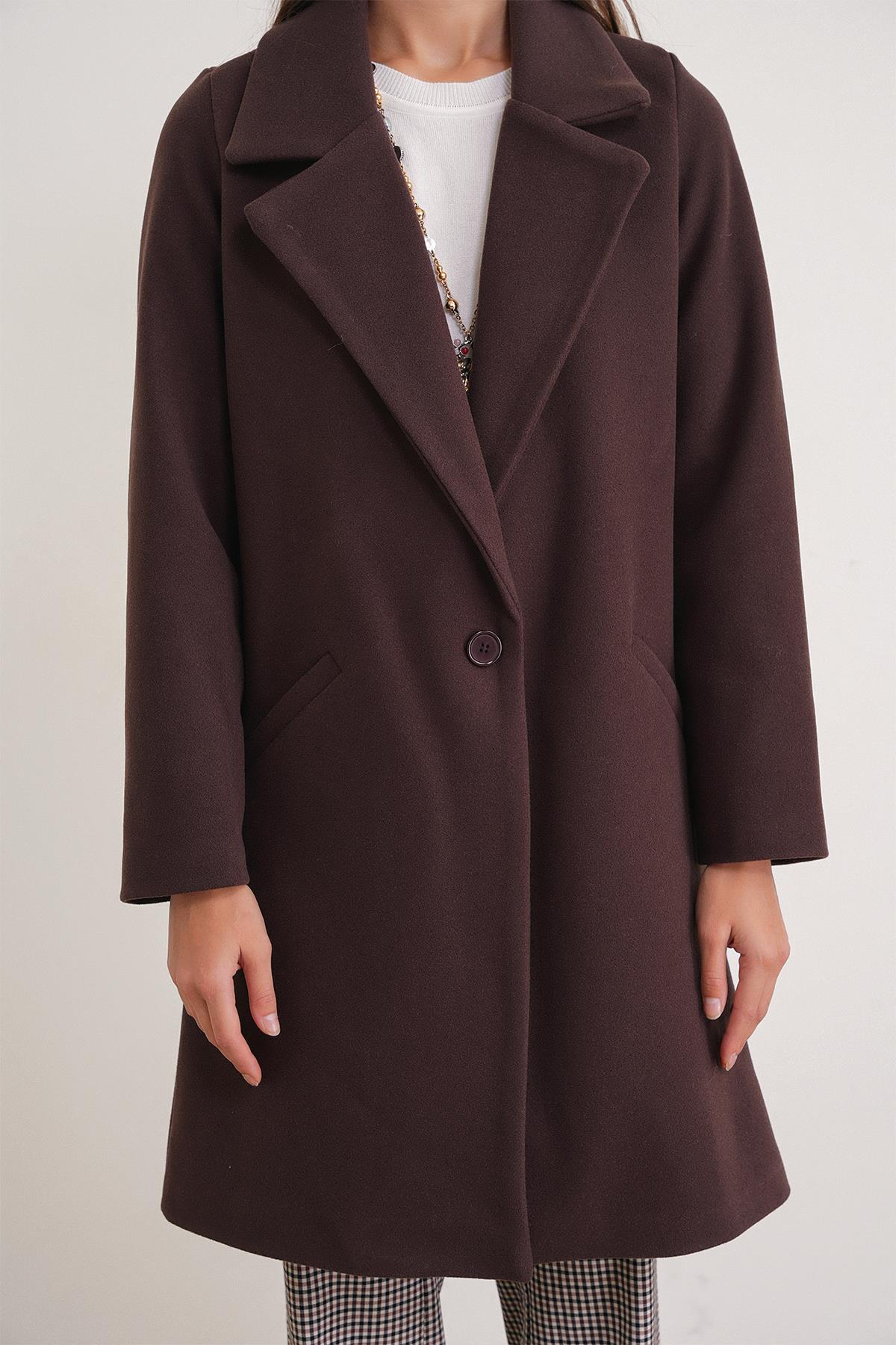 3802 Kadın Tek Düğmeli Kaşe Kaban Kahve (Y25KBN3802-120)