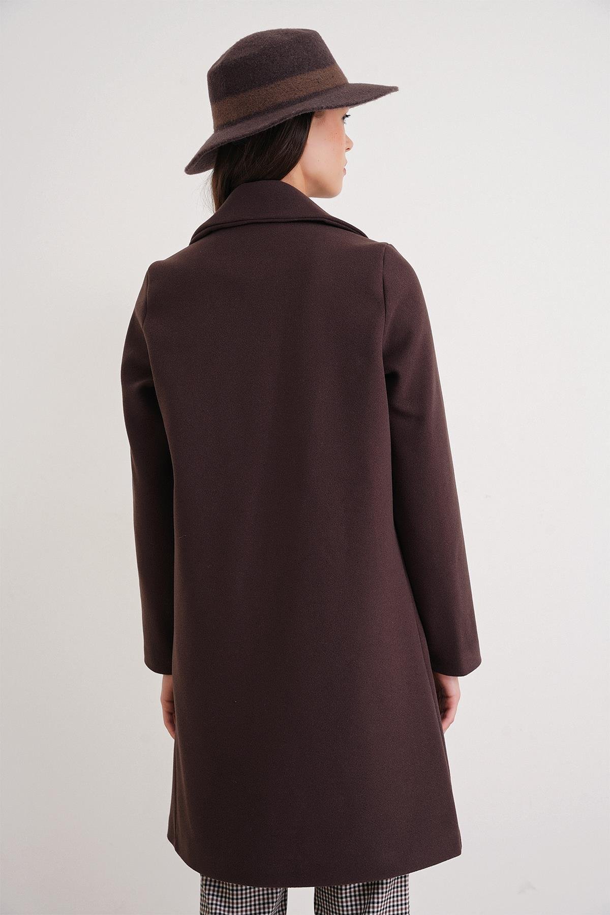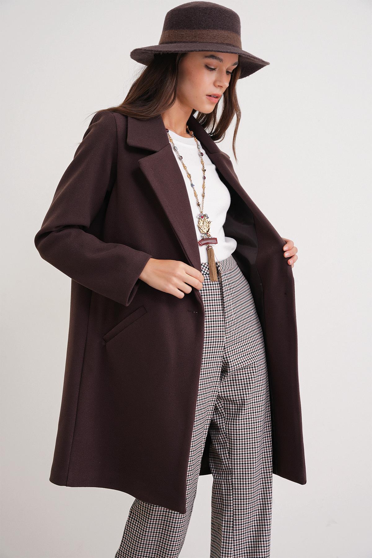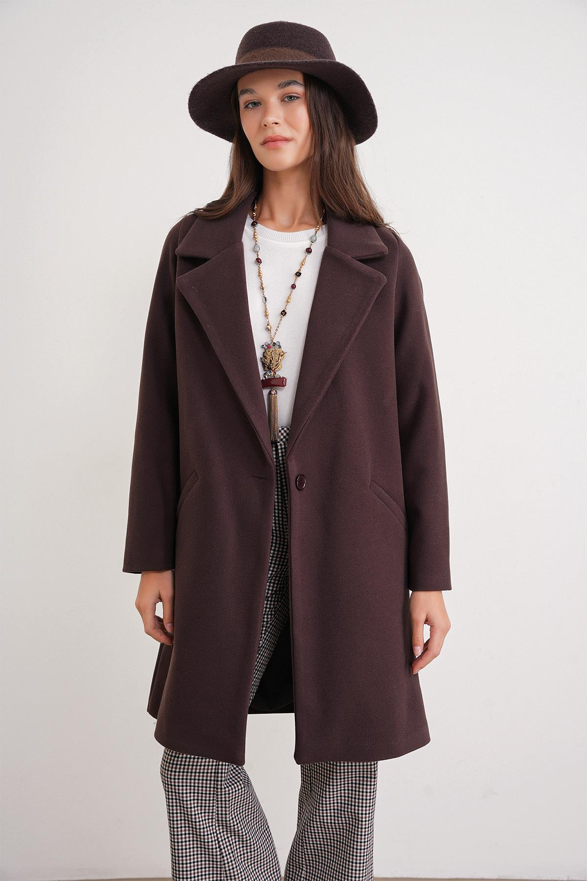 3802 Kadın Tek Düğmeli Kaşe Kaban Kahve (Y25KBN3802-120)