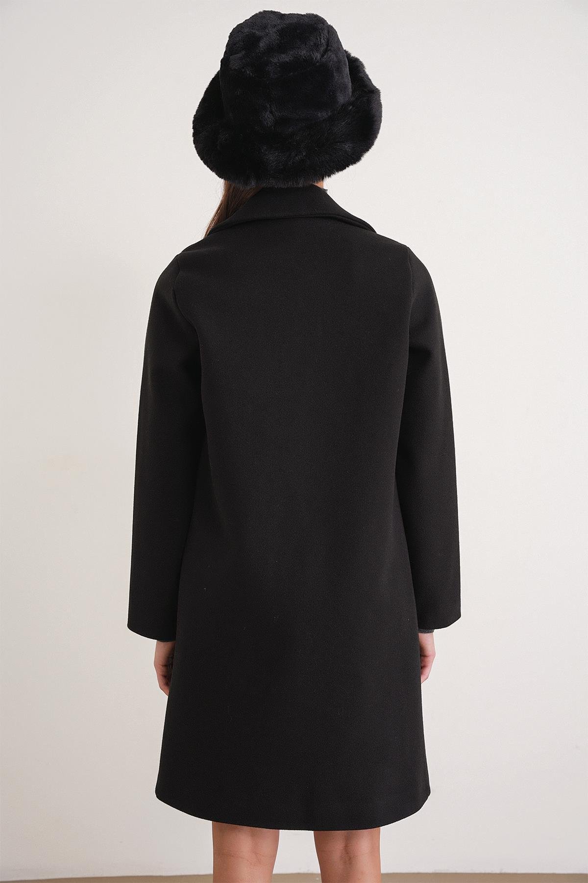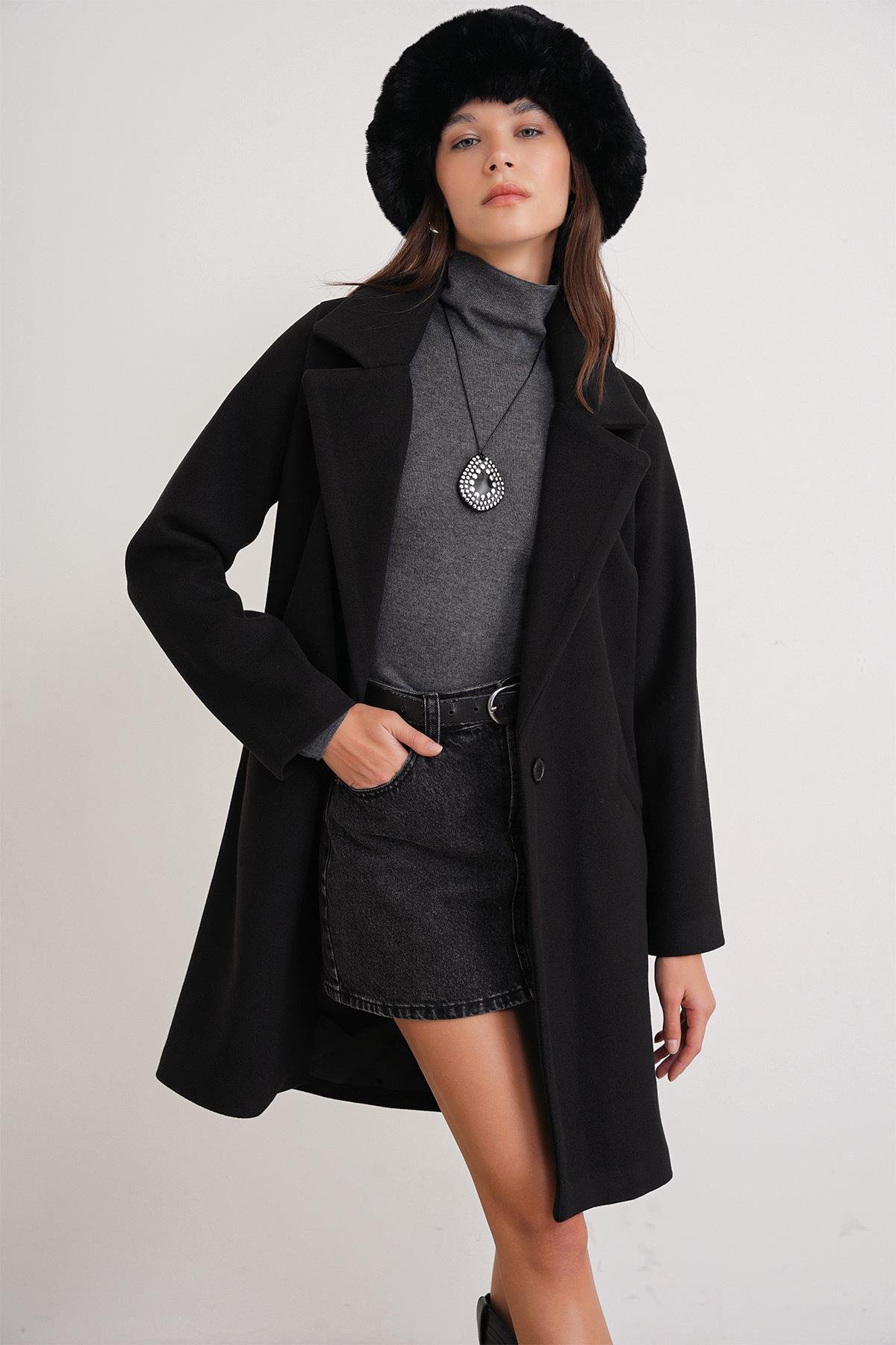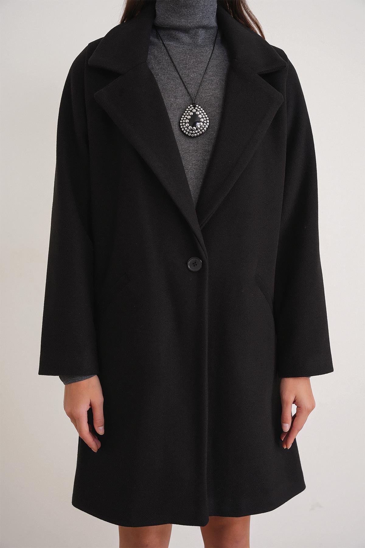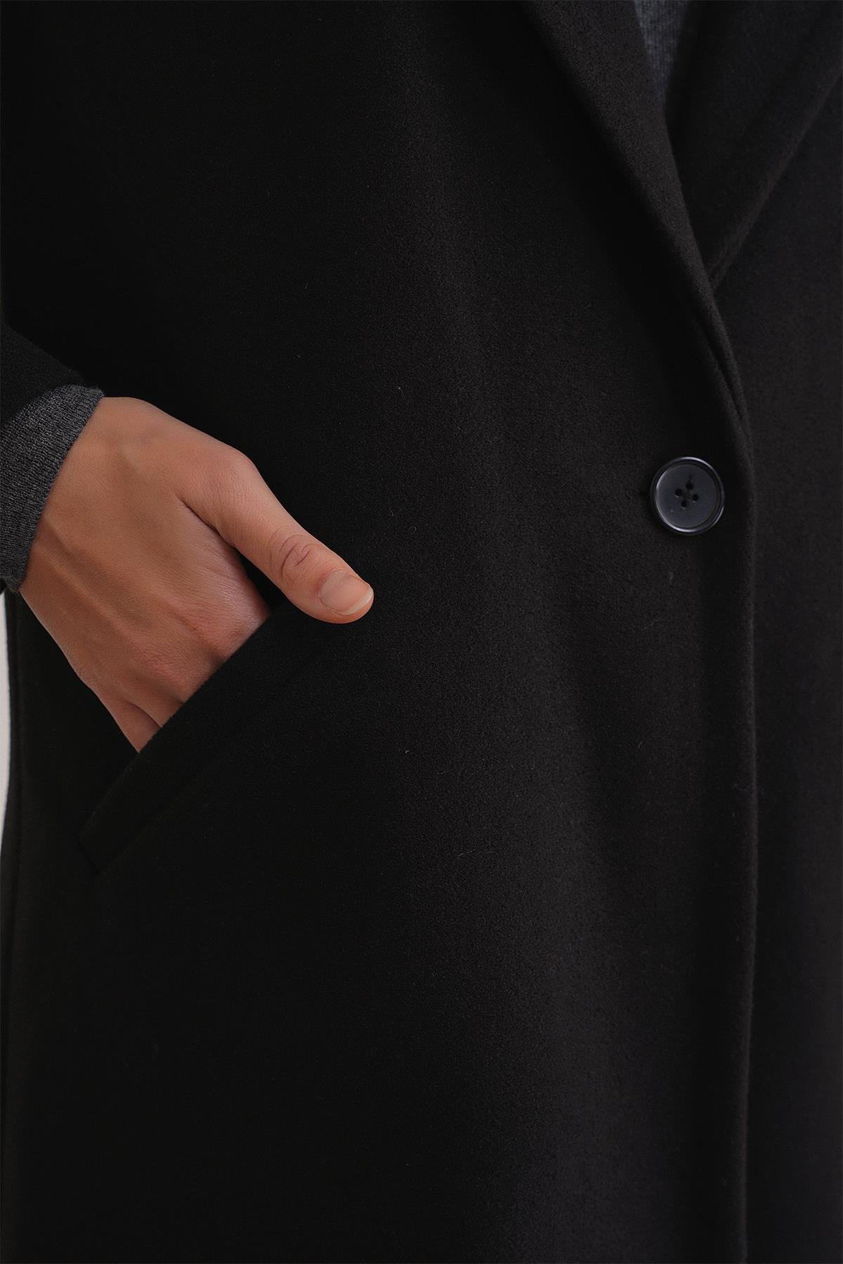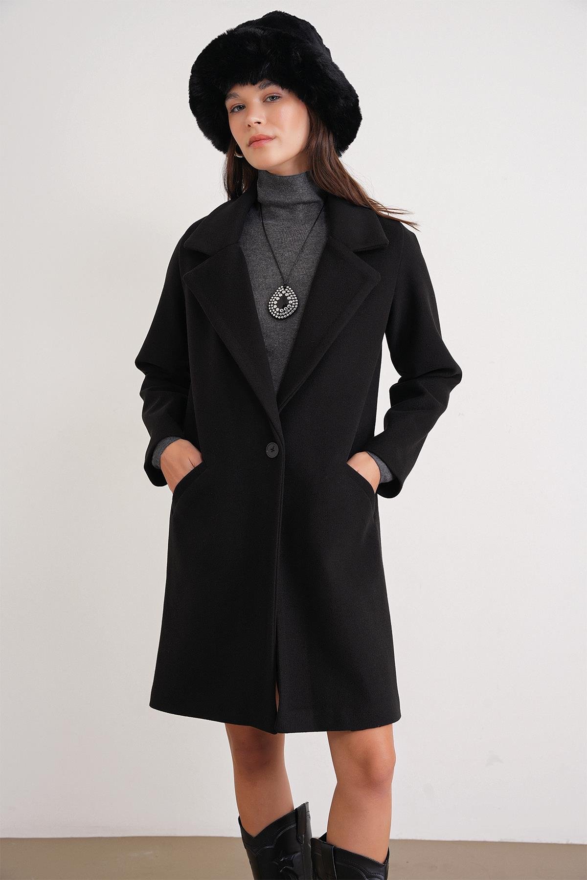 3802 Kadın Tek Düğmeli Kaşe Kaban Siyah (Y25KBN3802-001)