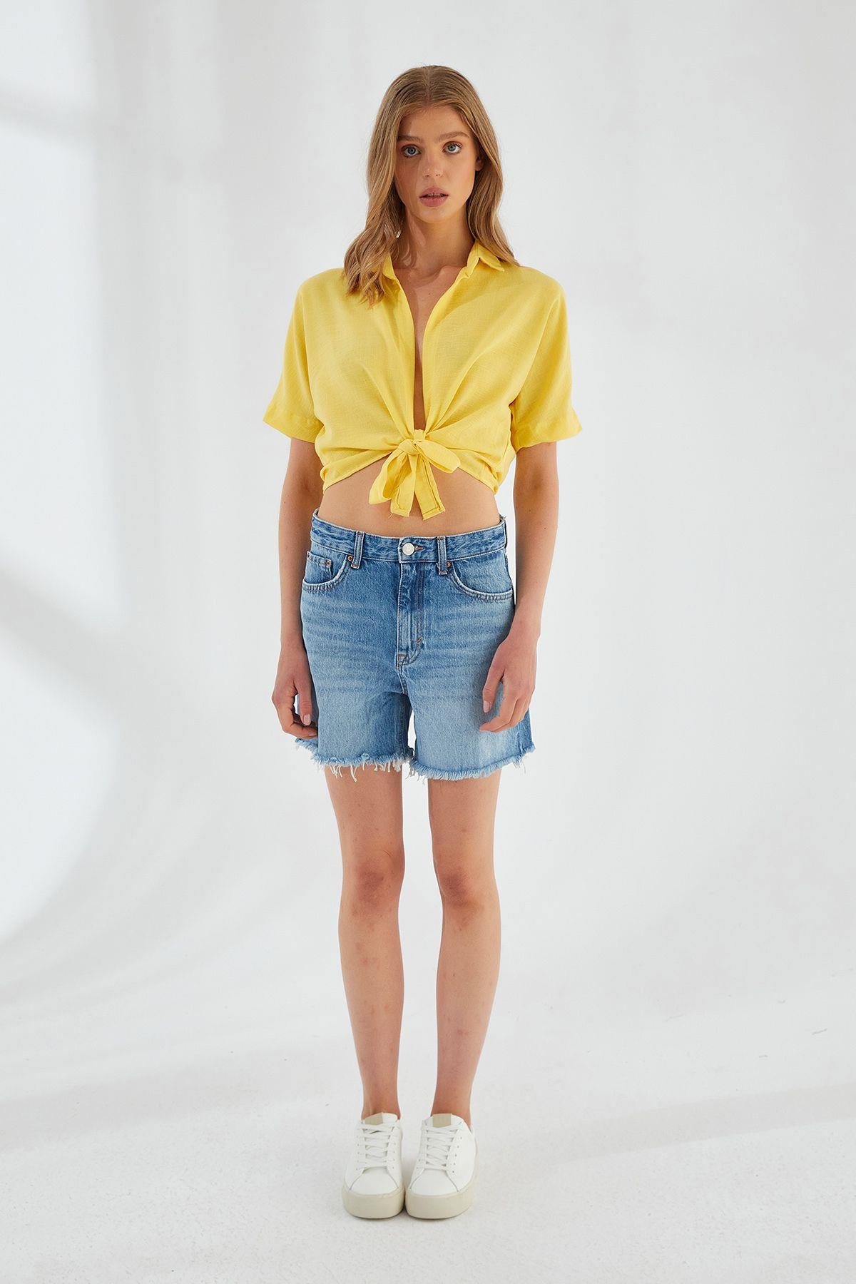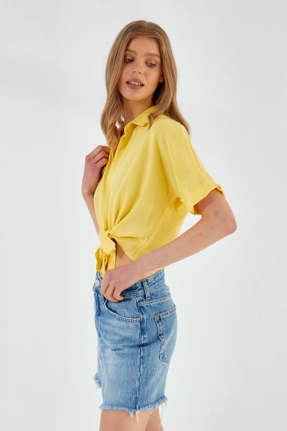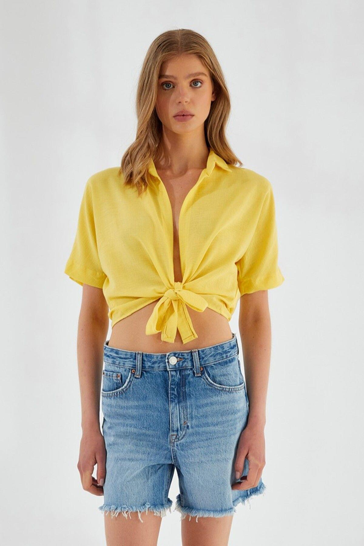 4230 Kadın Bağlamalı Yazlık Keten Gömlek