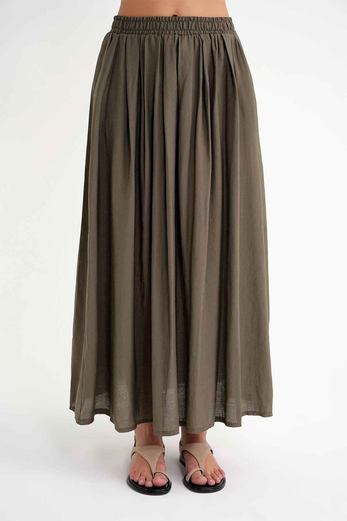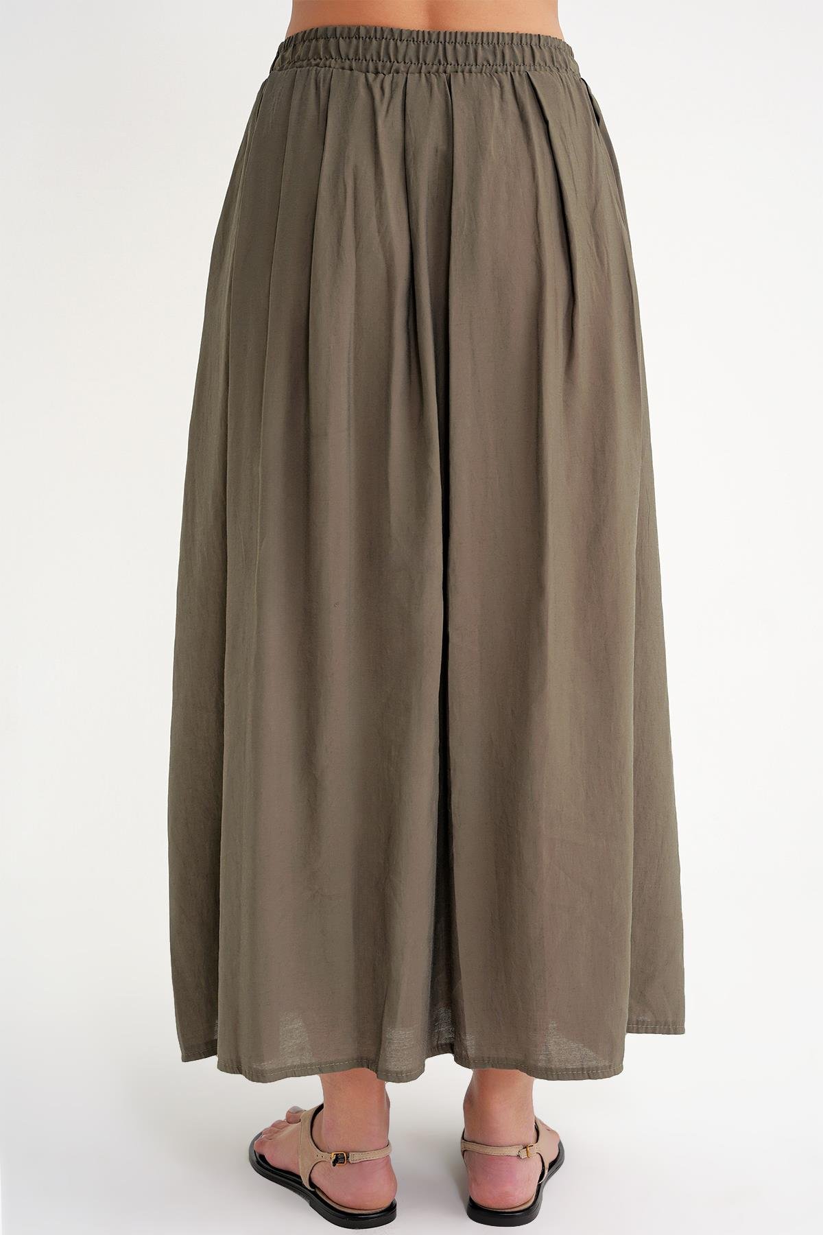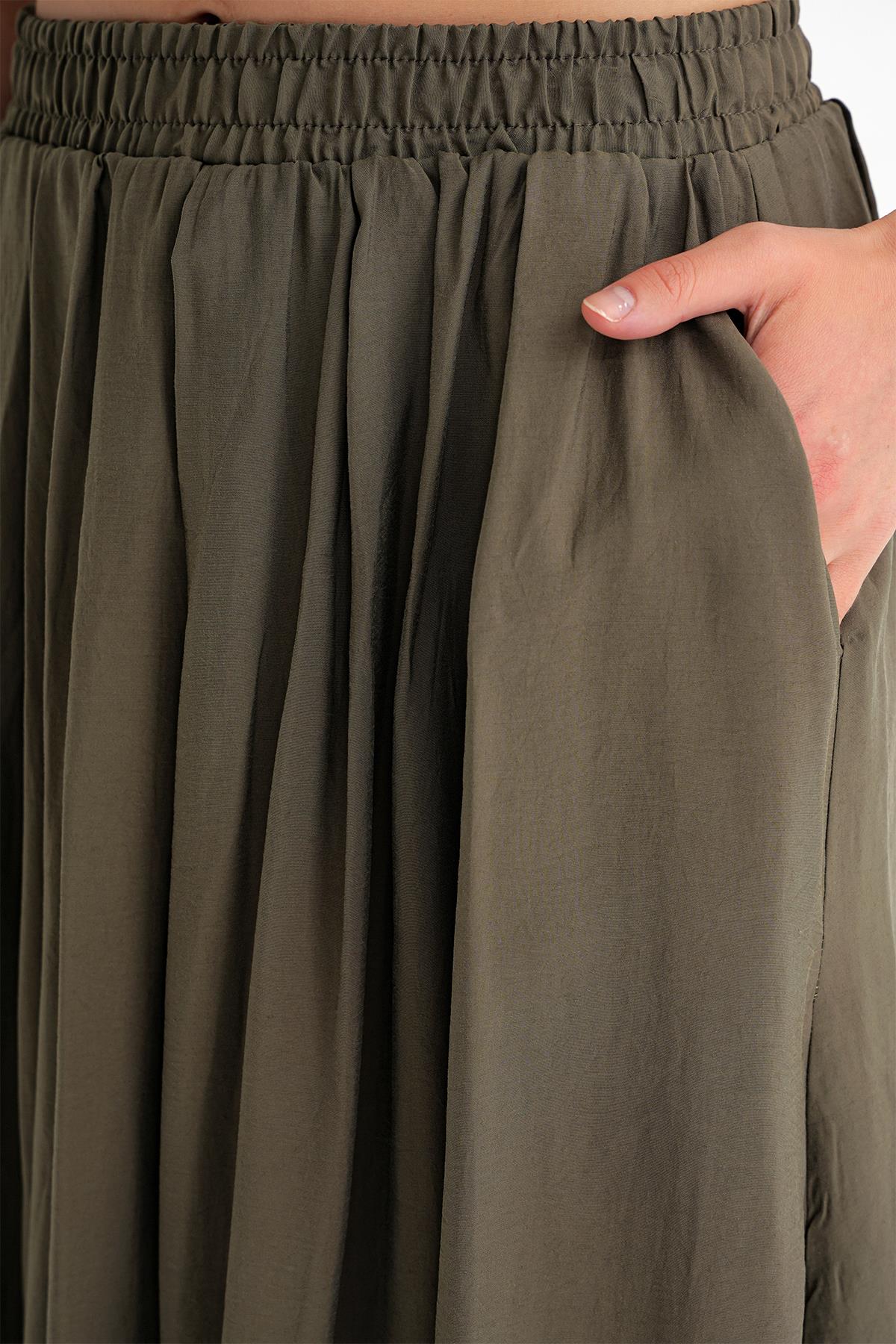 4612 Kadın Yandan Cepli Pileli Bol Etek Haki (Y25ETK4612-104)