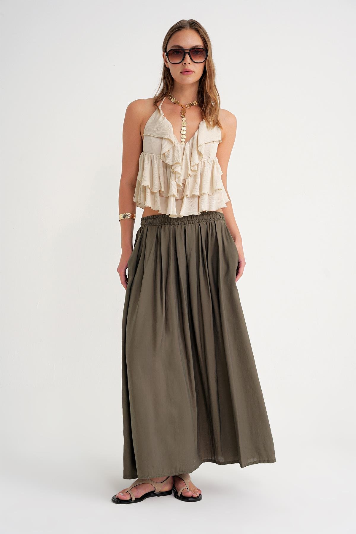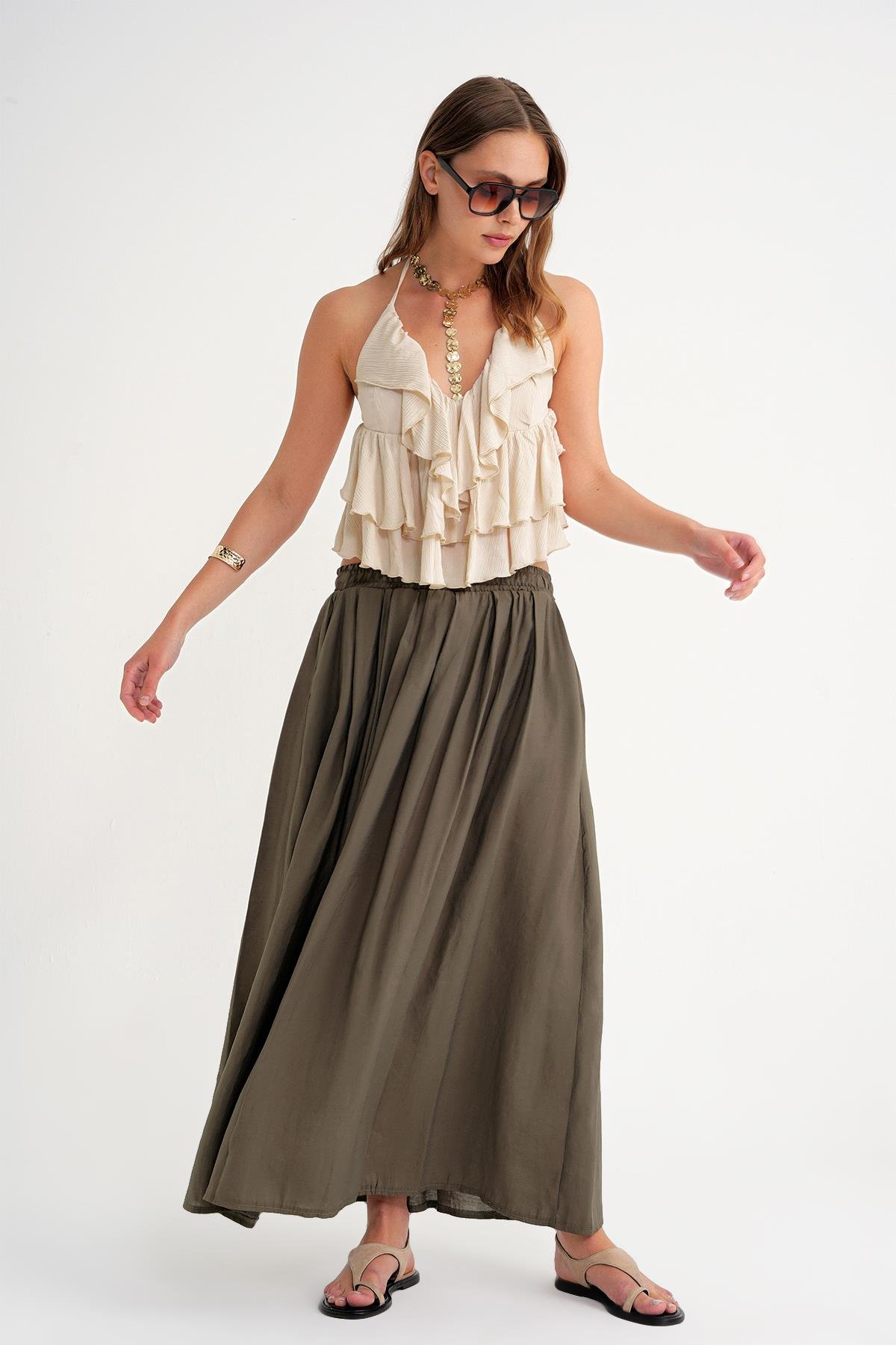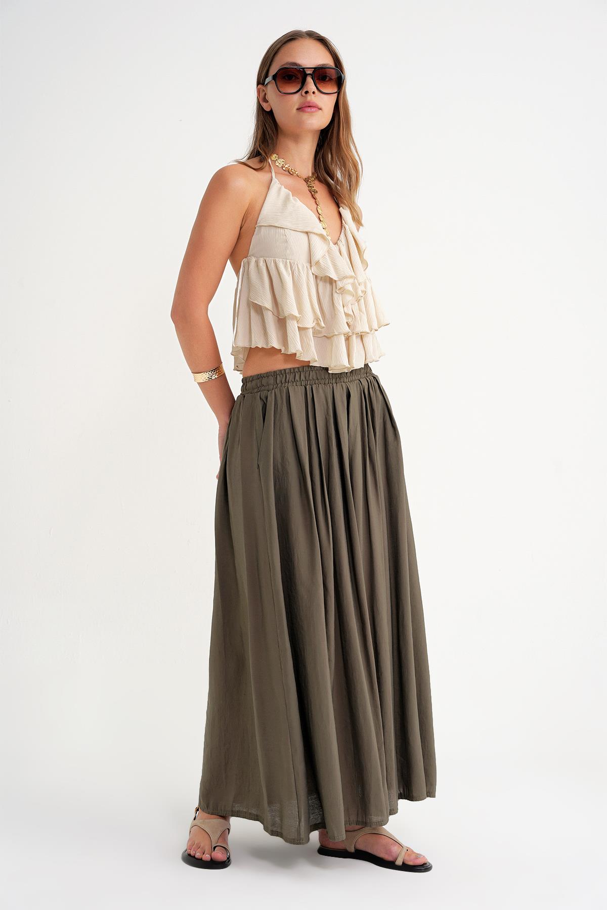 4612 Kadın Yandan Cepli Pileli Bol Etek Haki (Y25ETK4612-104)