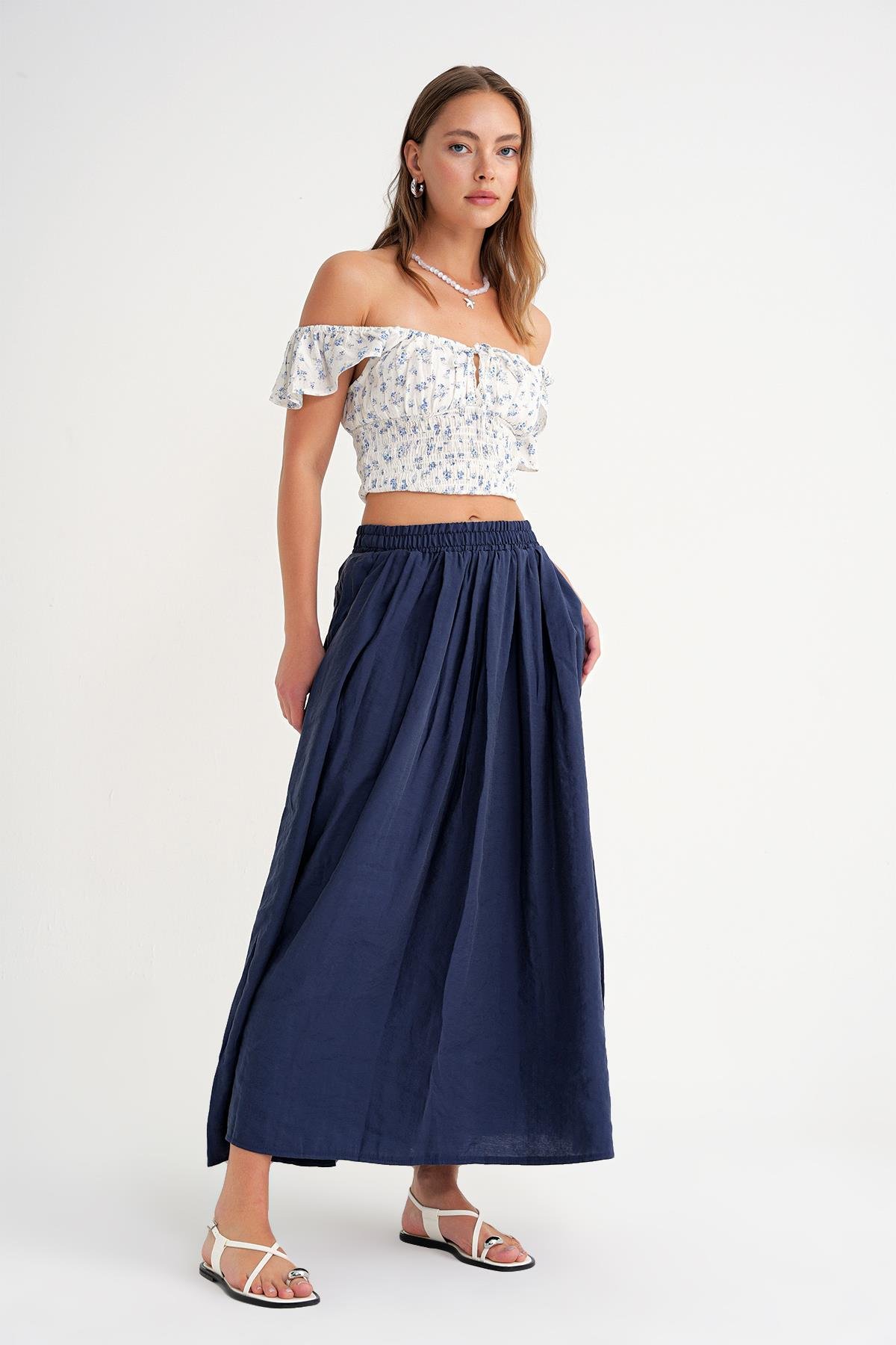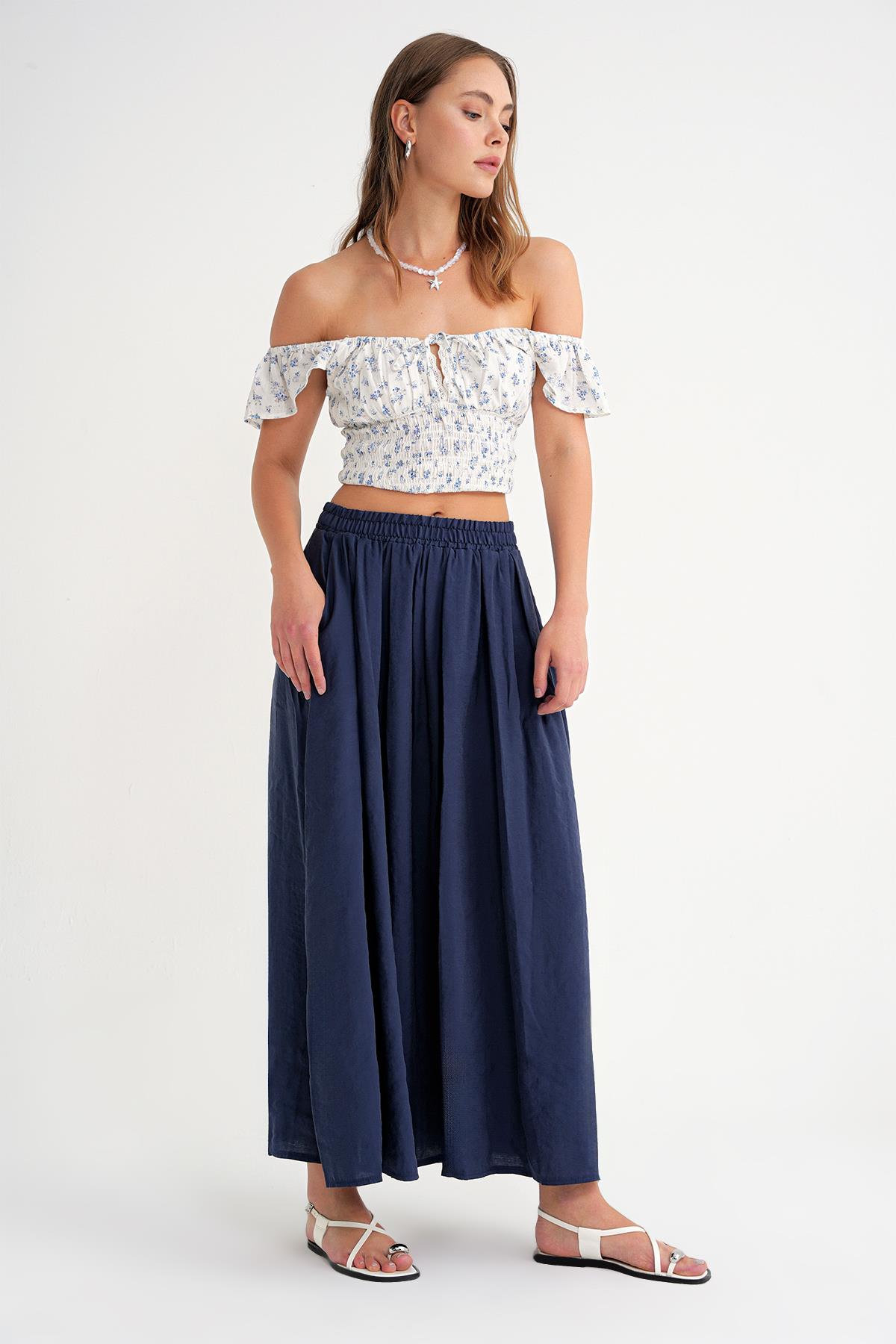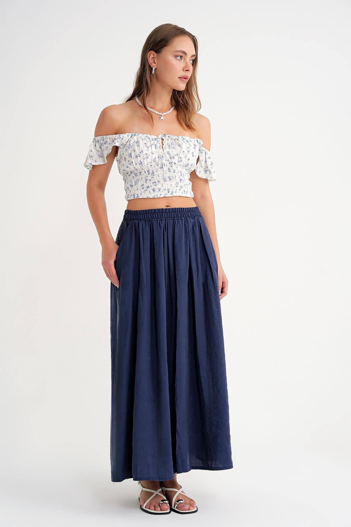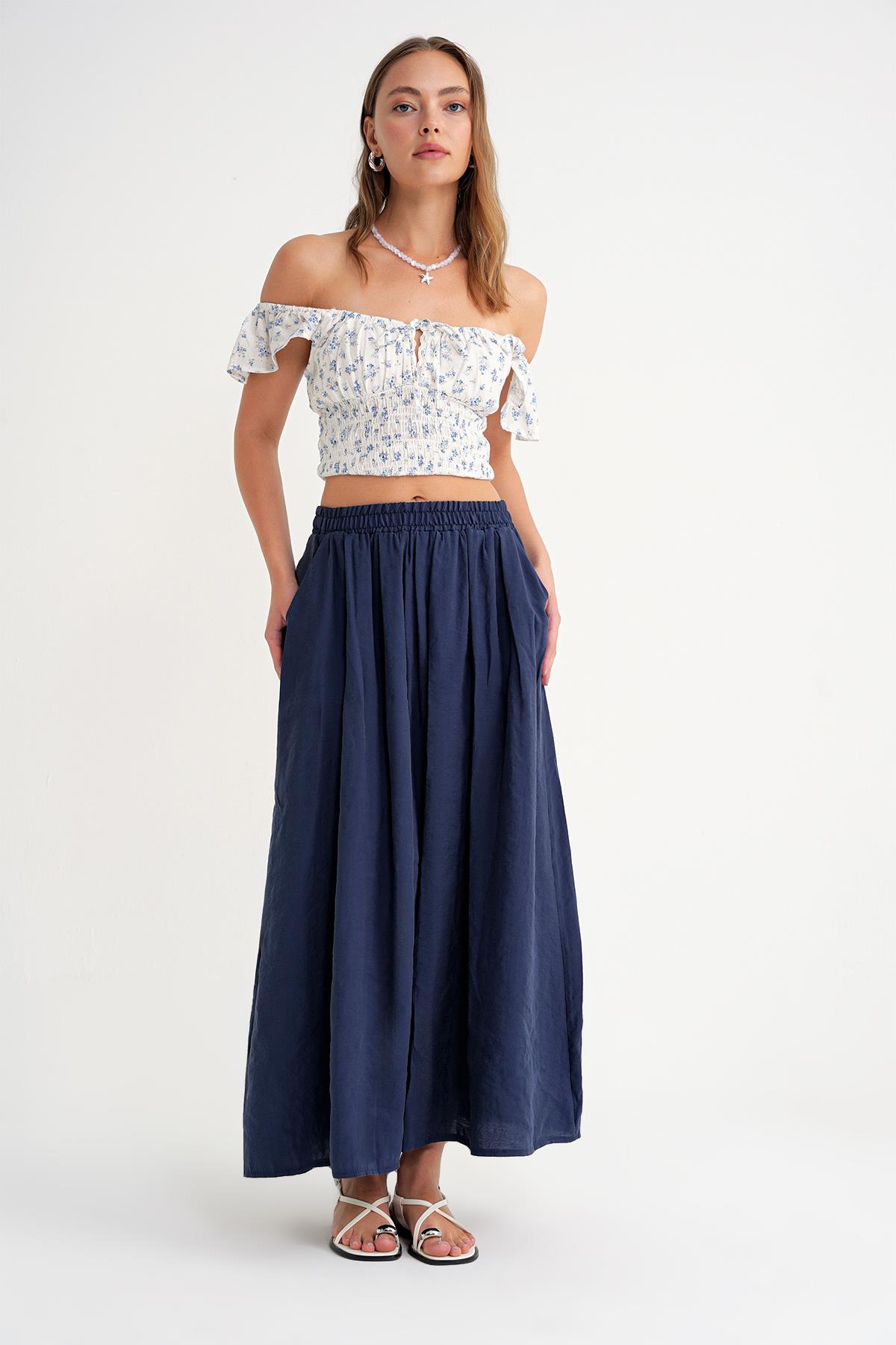4612 Kadın Yandan Cepli Pileli Bol Etek