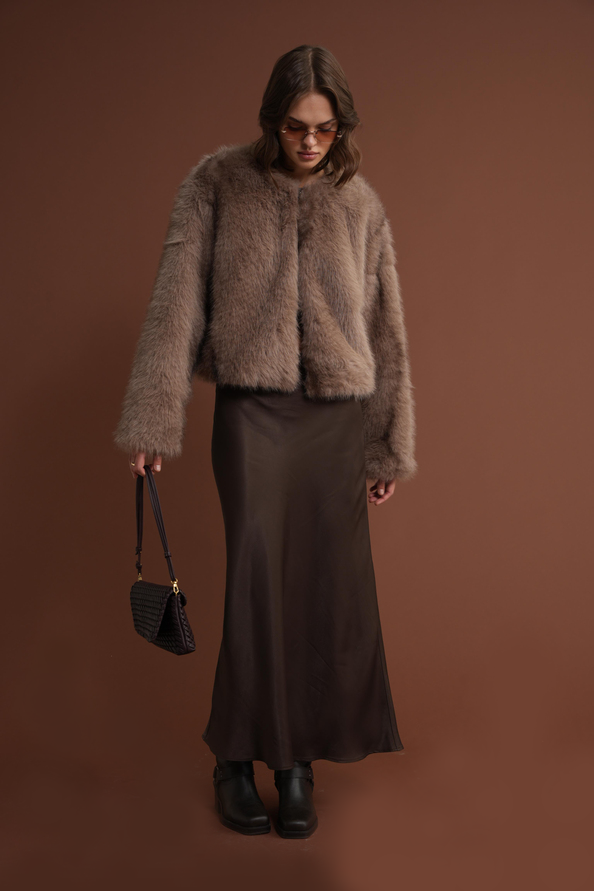4749 Kadın Astarlı Bisiklet Yaka Premium Kürk Mont