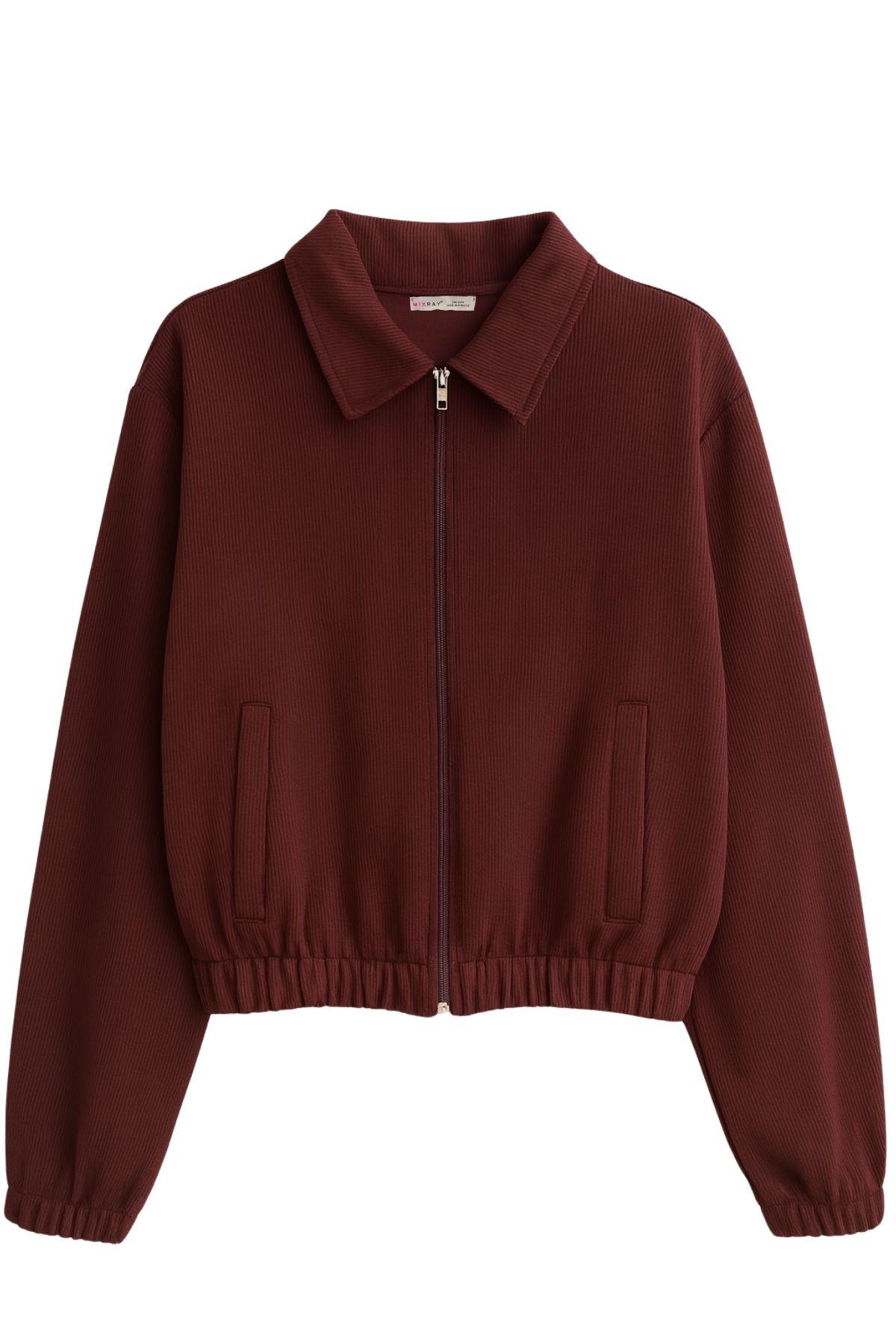 4764 Kadın Basic Fermuarlı Fitilli Örme Selanik Ceket Mürdüm (K25HRK4764-209)