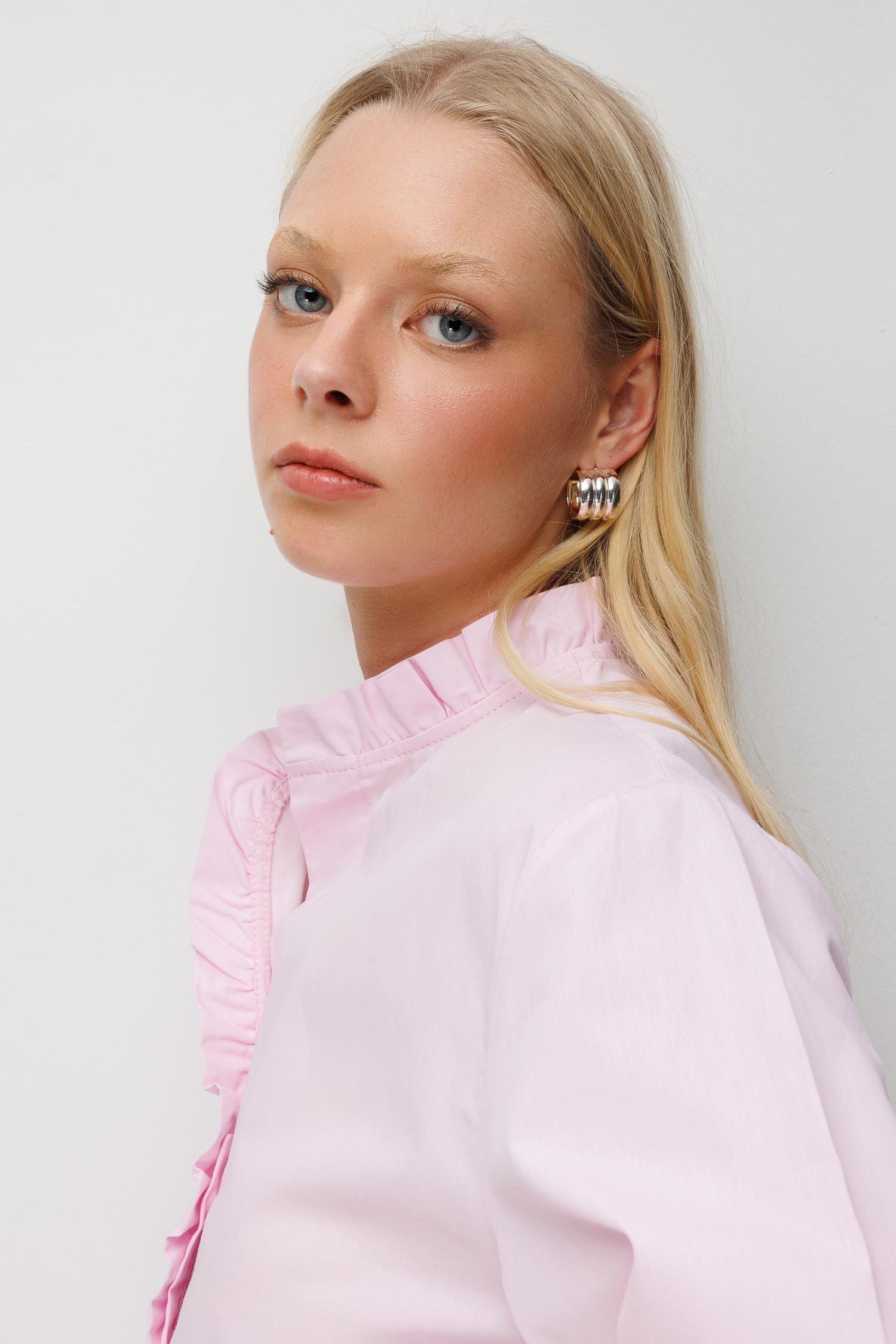 4821 Kadın Fırfırlı Balon Kol Gömlek Pembe (K26GML4821-113)