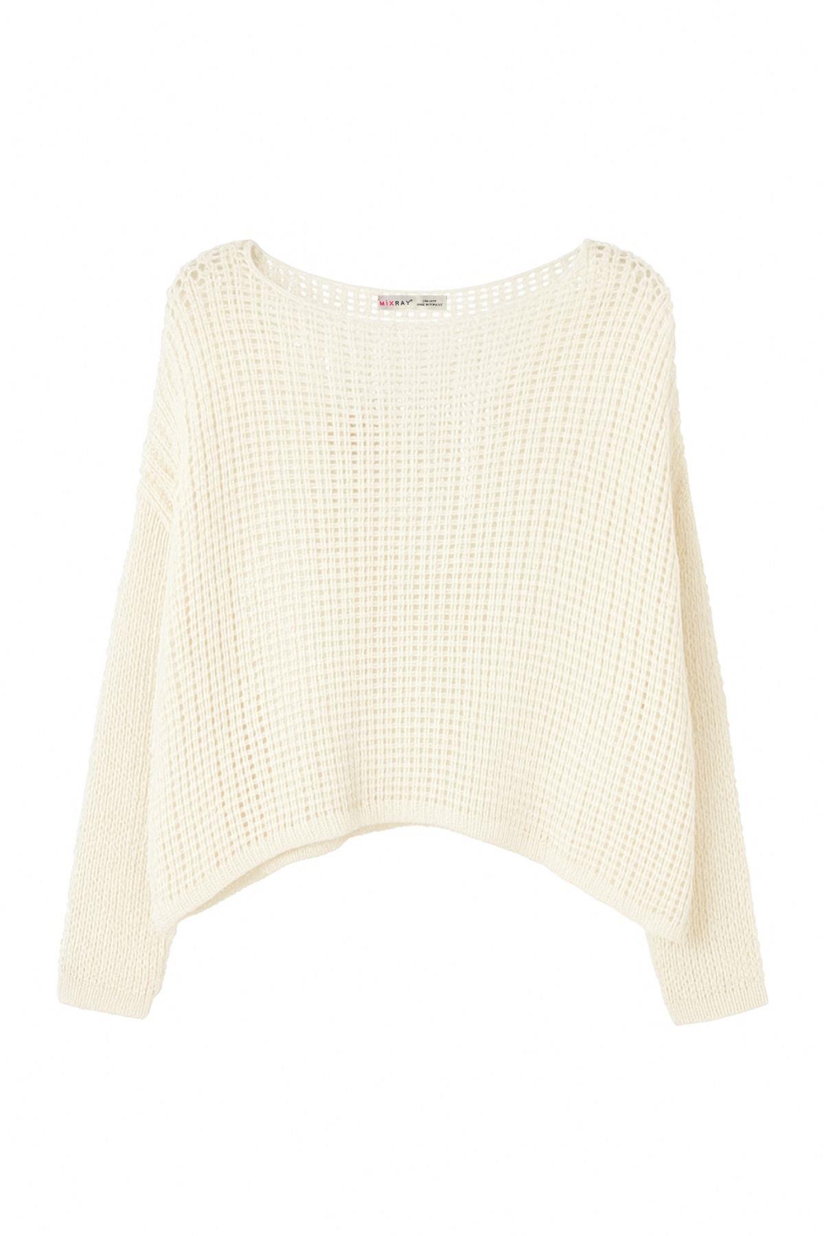 6864 Kadın Ajurlu File Mevsimlik Triko Kazak Beyaz (Y25GML6864-101)