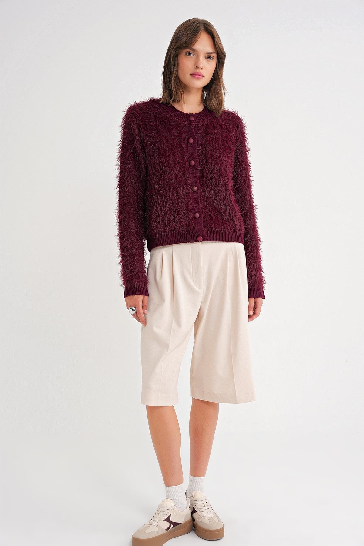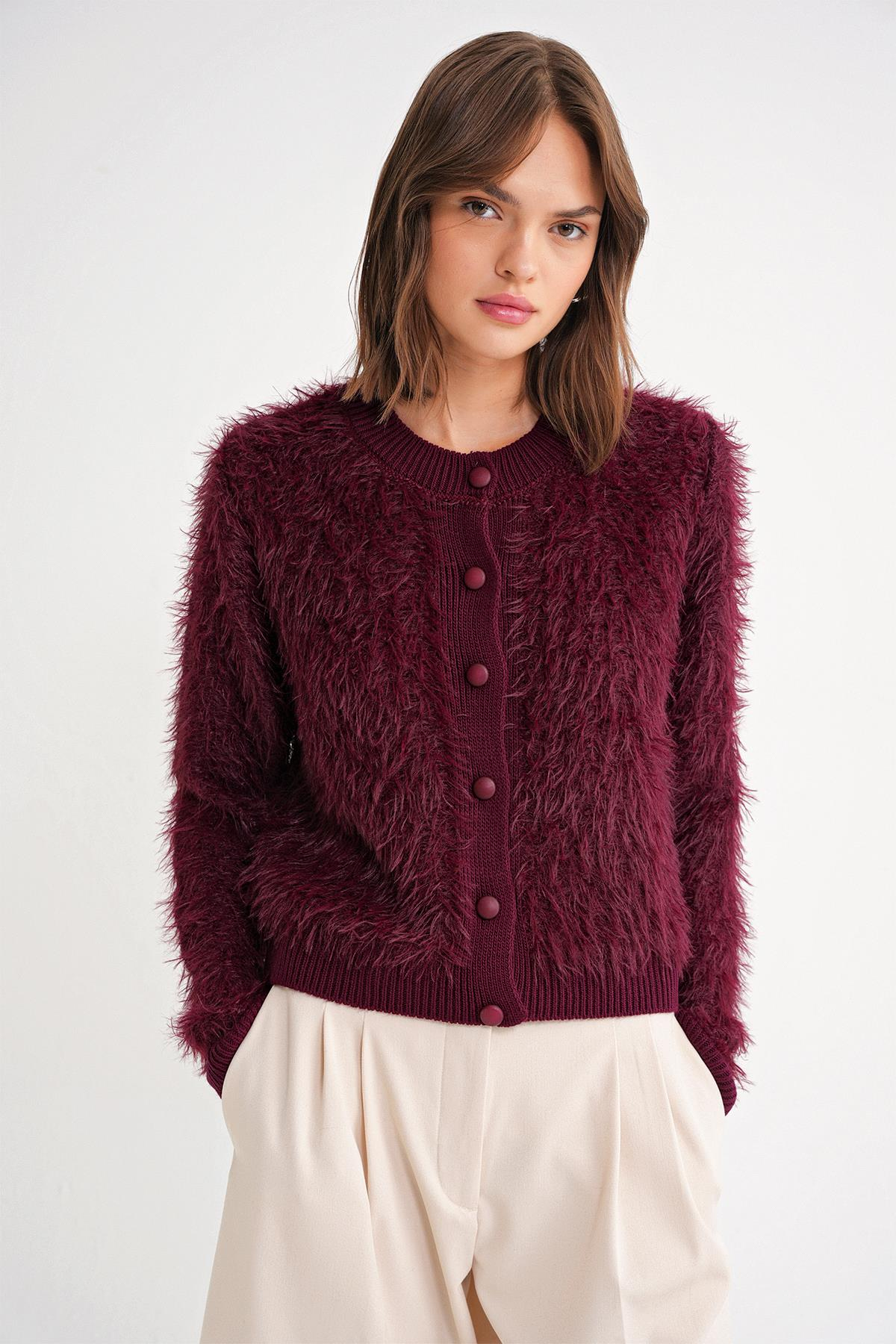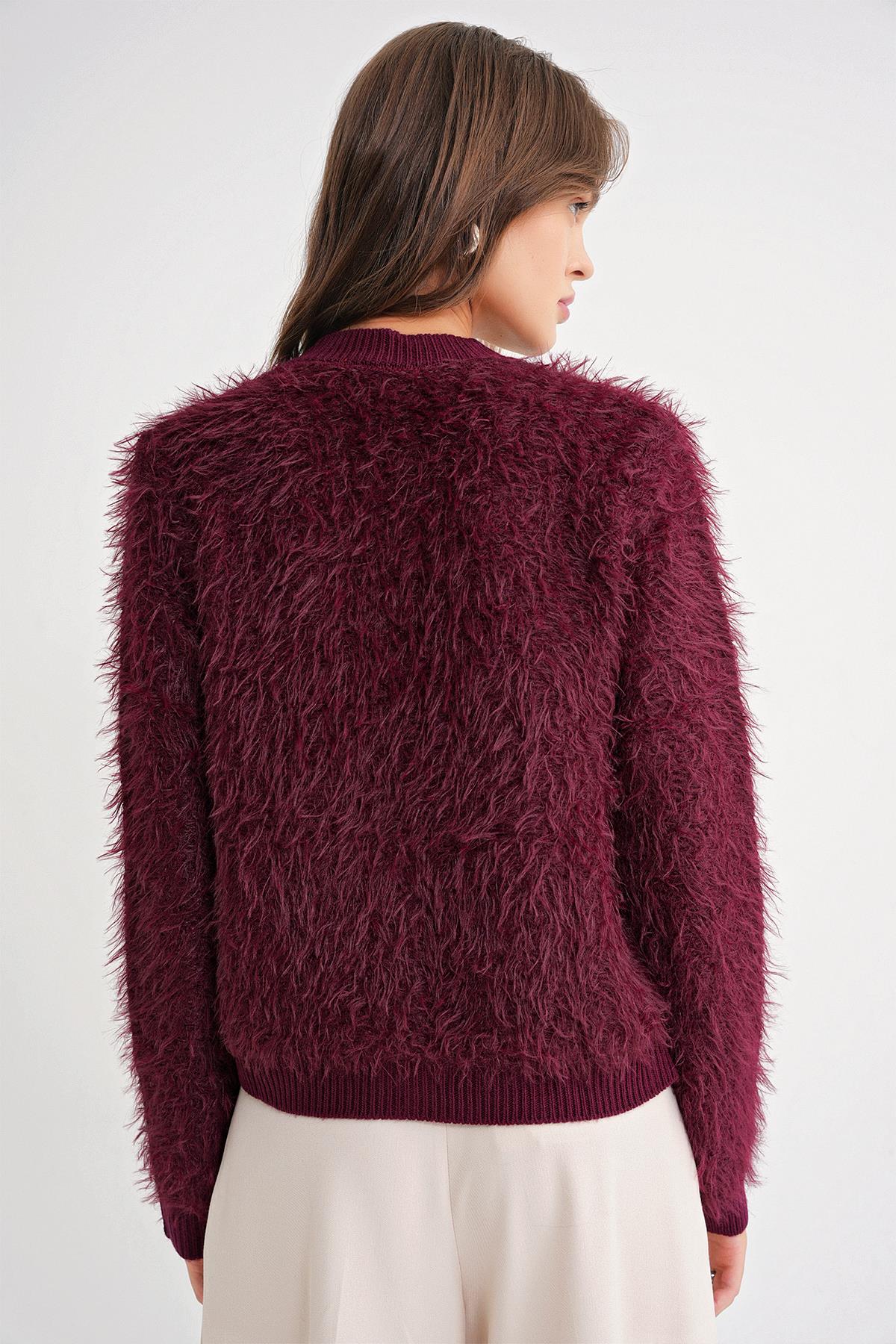 6897 Kadın Uzun Sakallı Bant Detaylı Triko Hırka