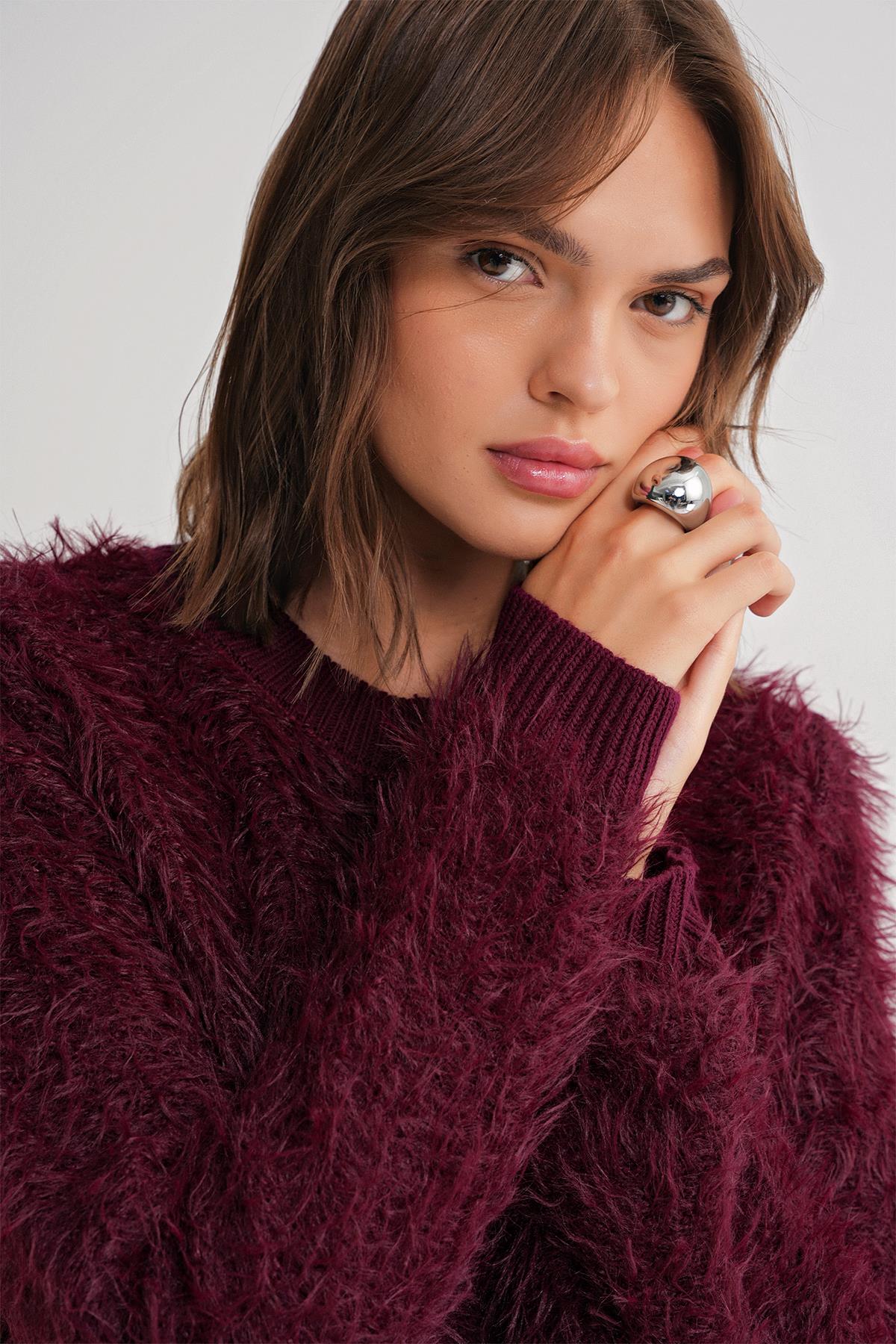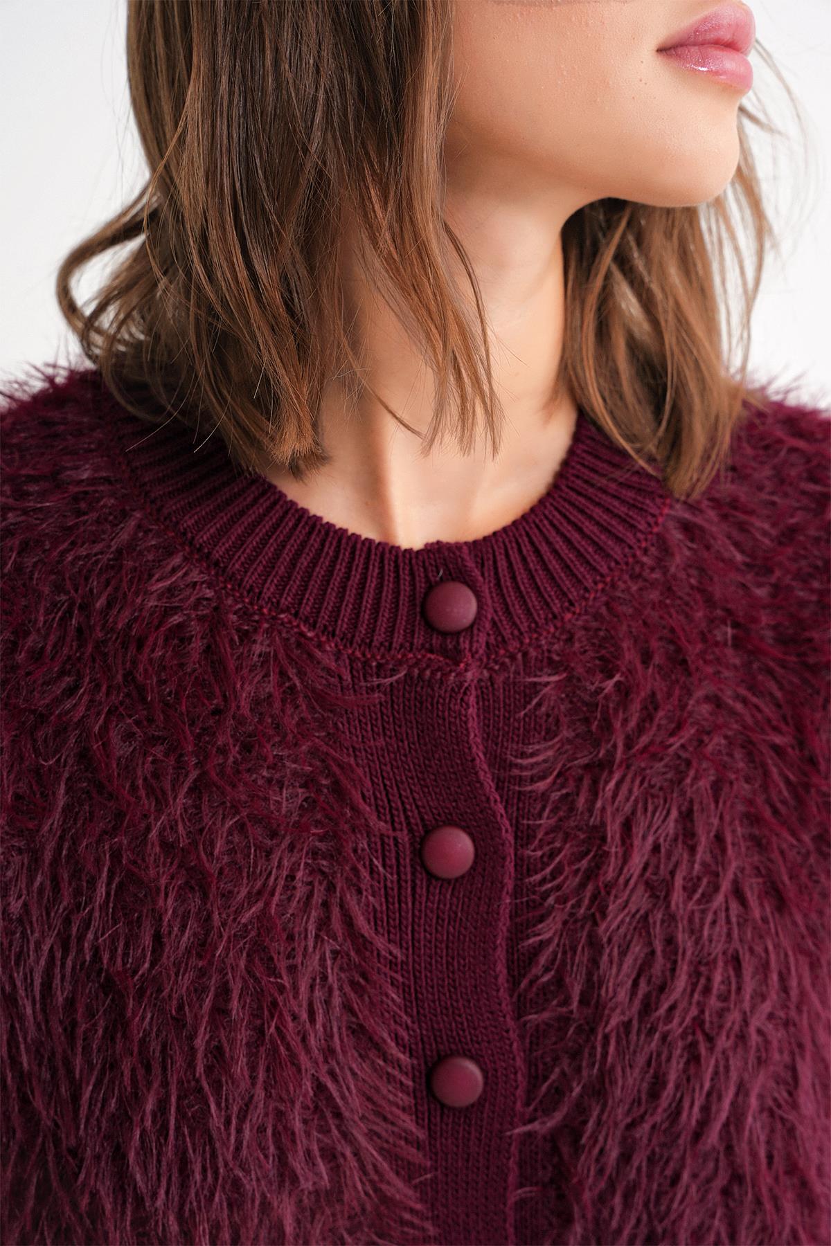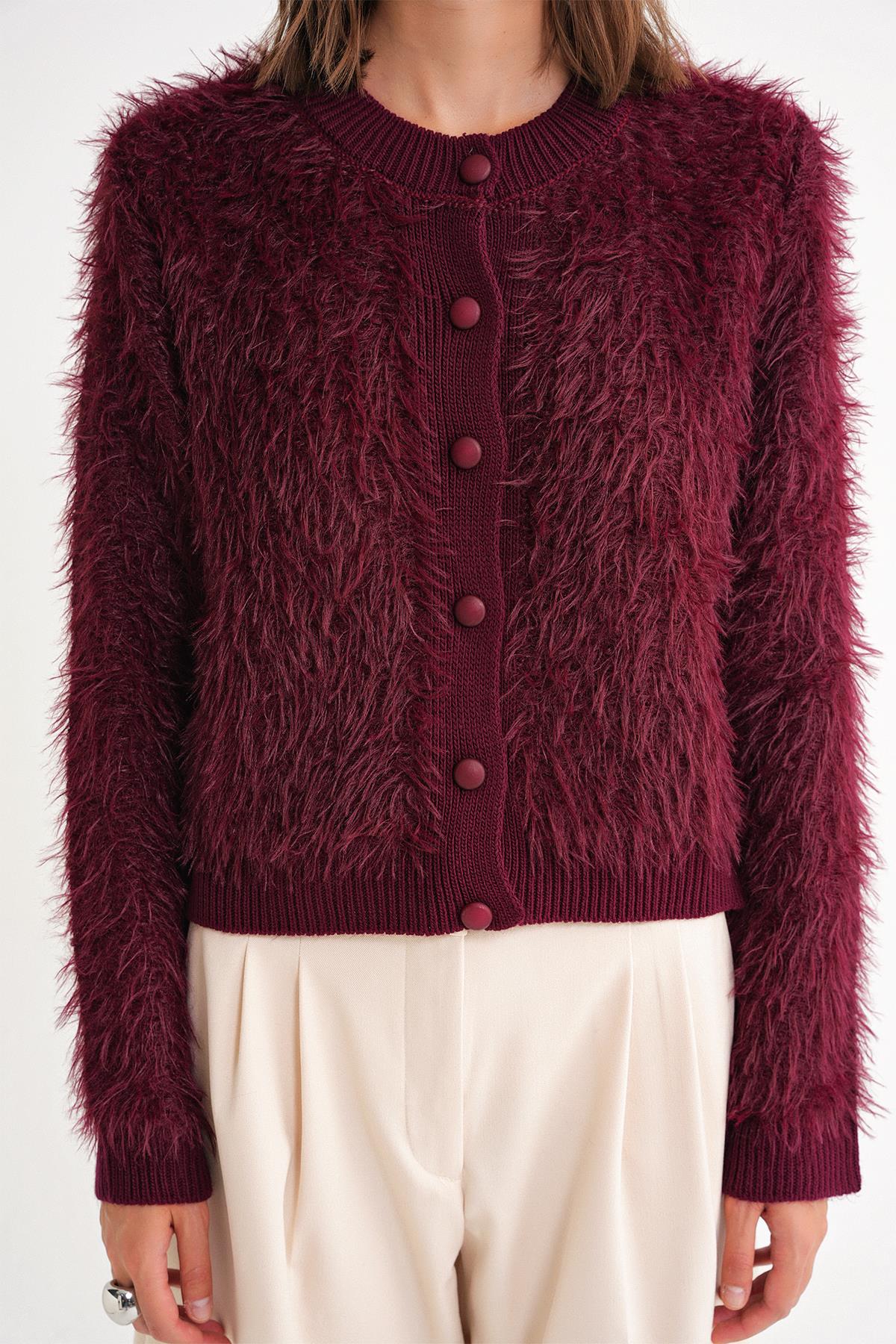 6897 Kadın Uzun Sakallı Bant Detaylı Triko Hırka