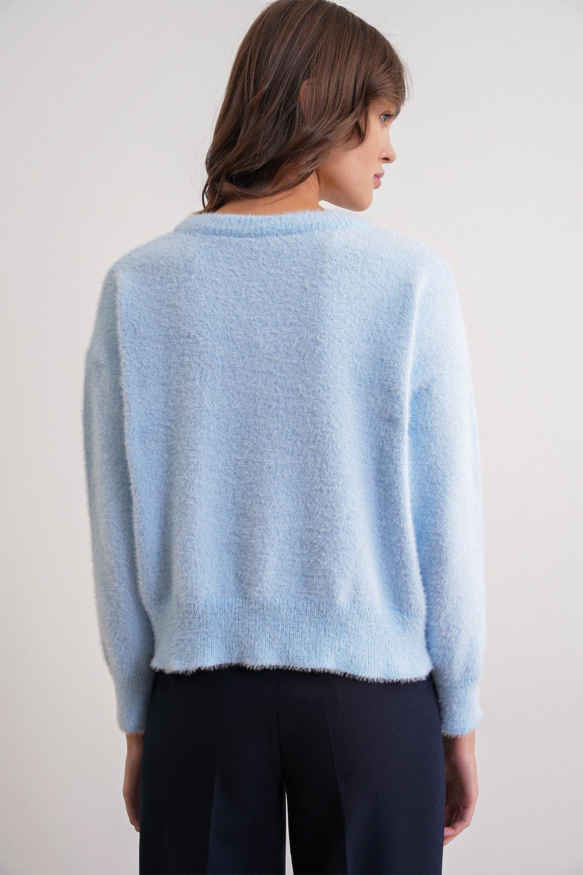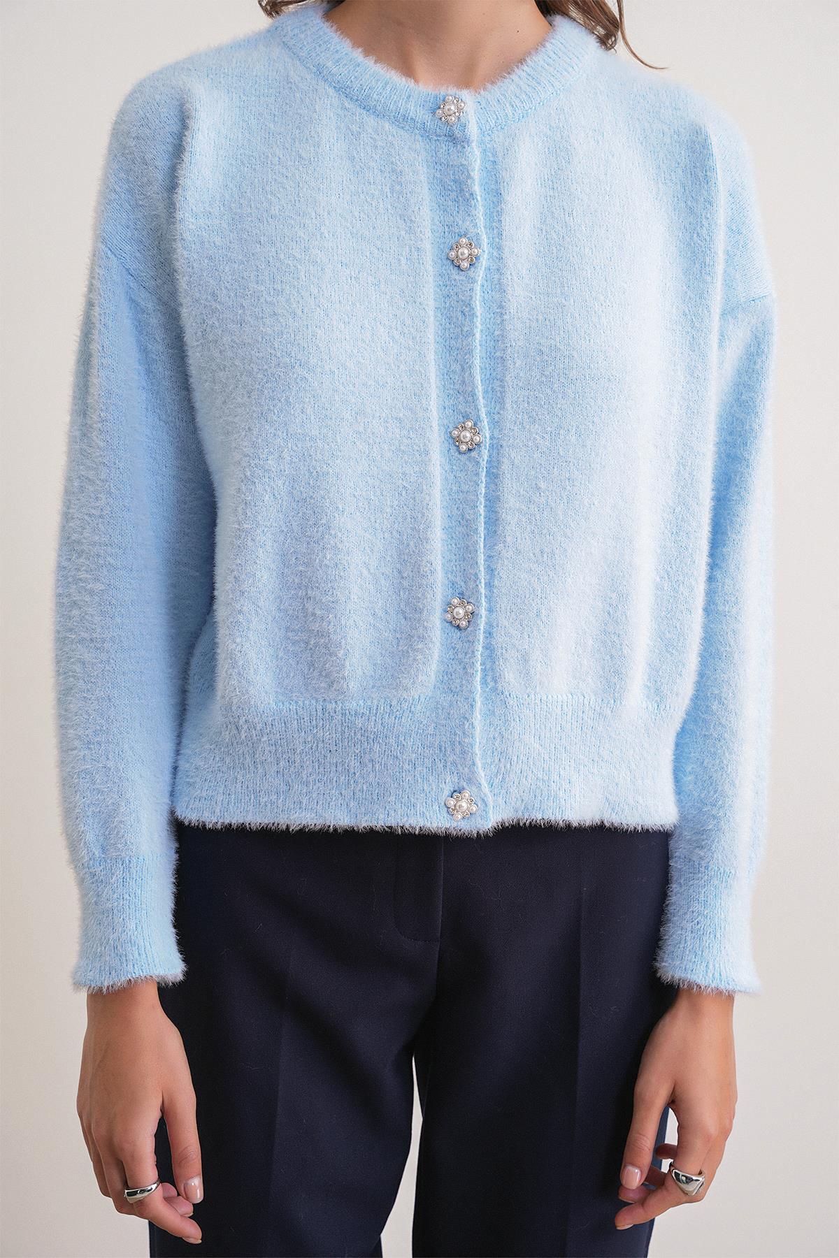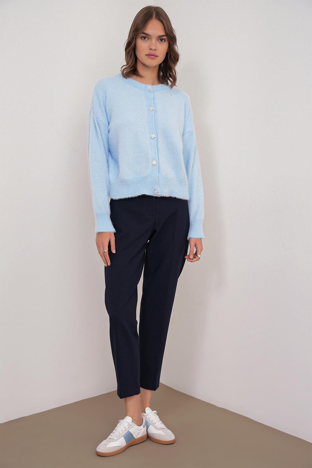 6902 Kadın Sakallı Basic Yumuşak Dokulu Triko Hırka Bebe Mavi (K25HRK6902-107)