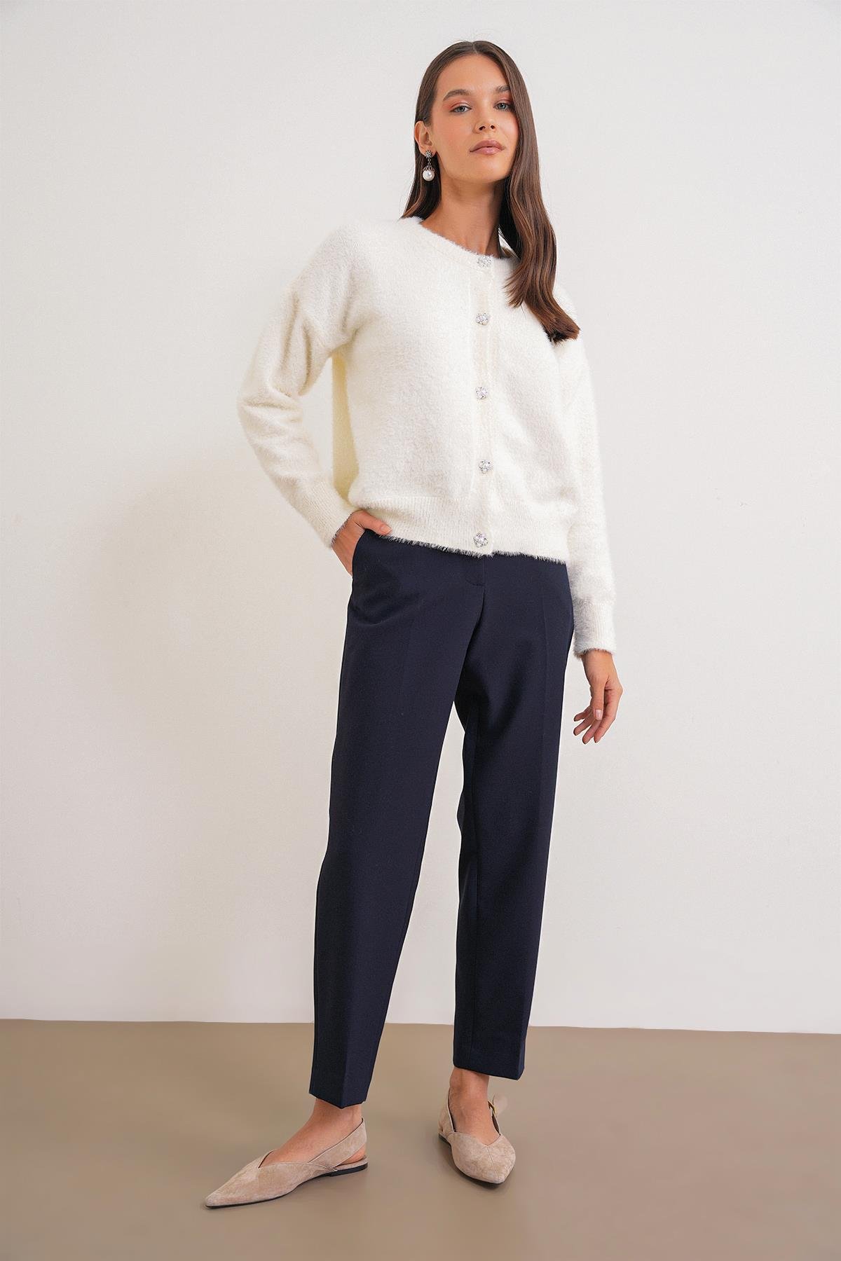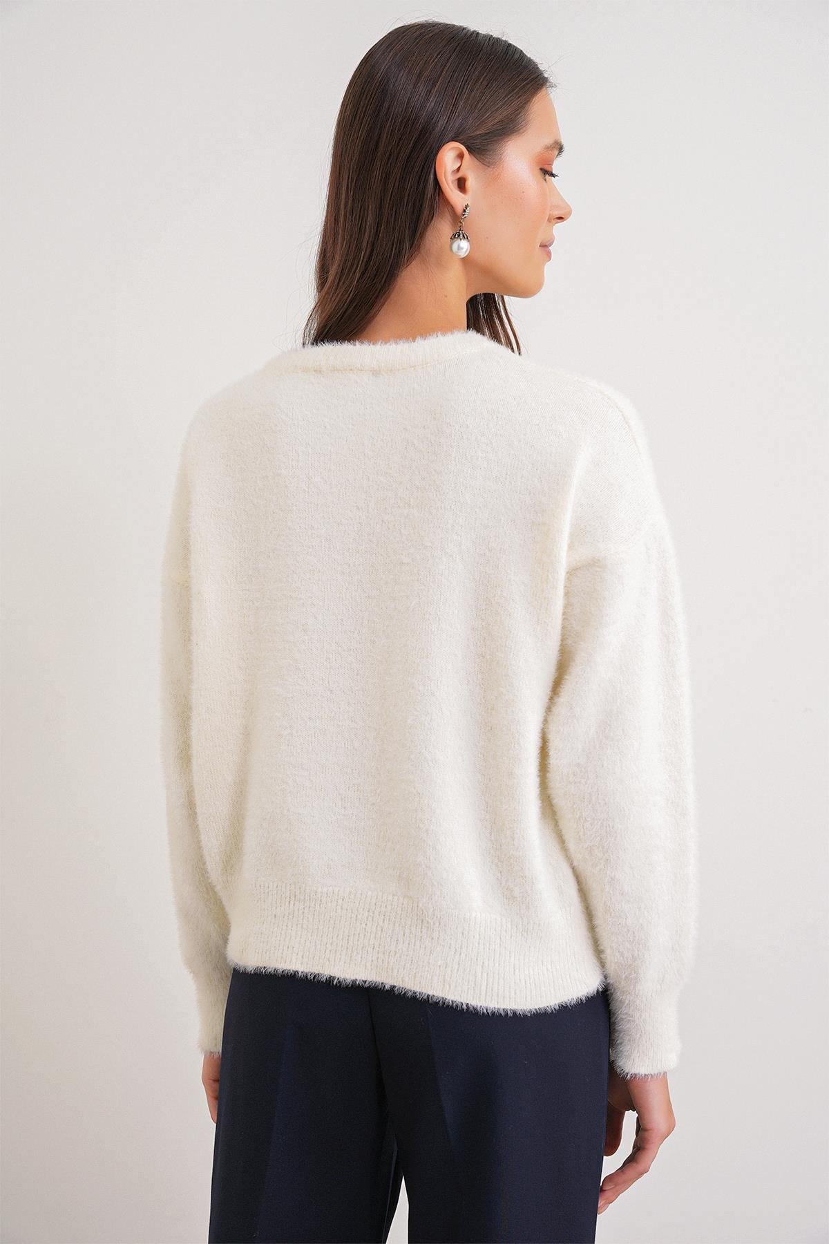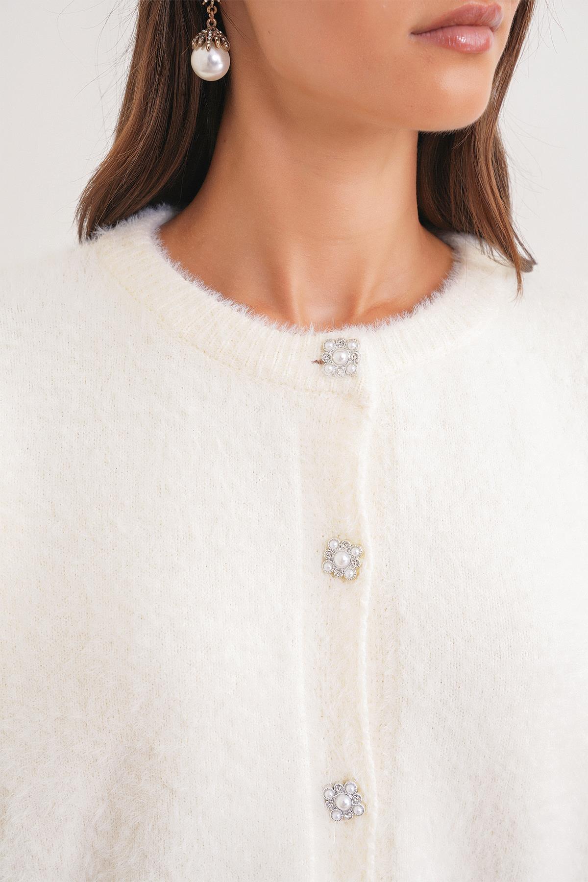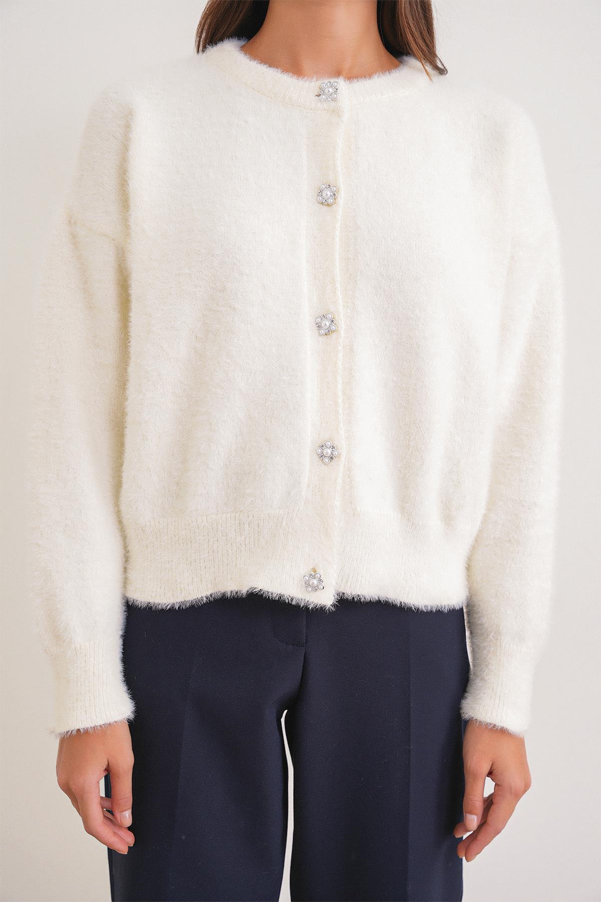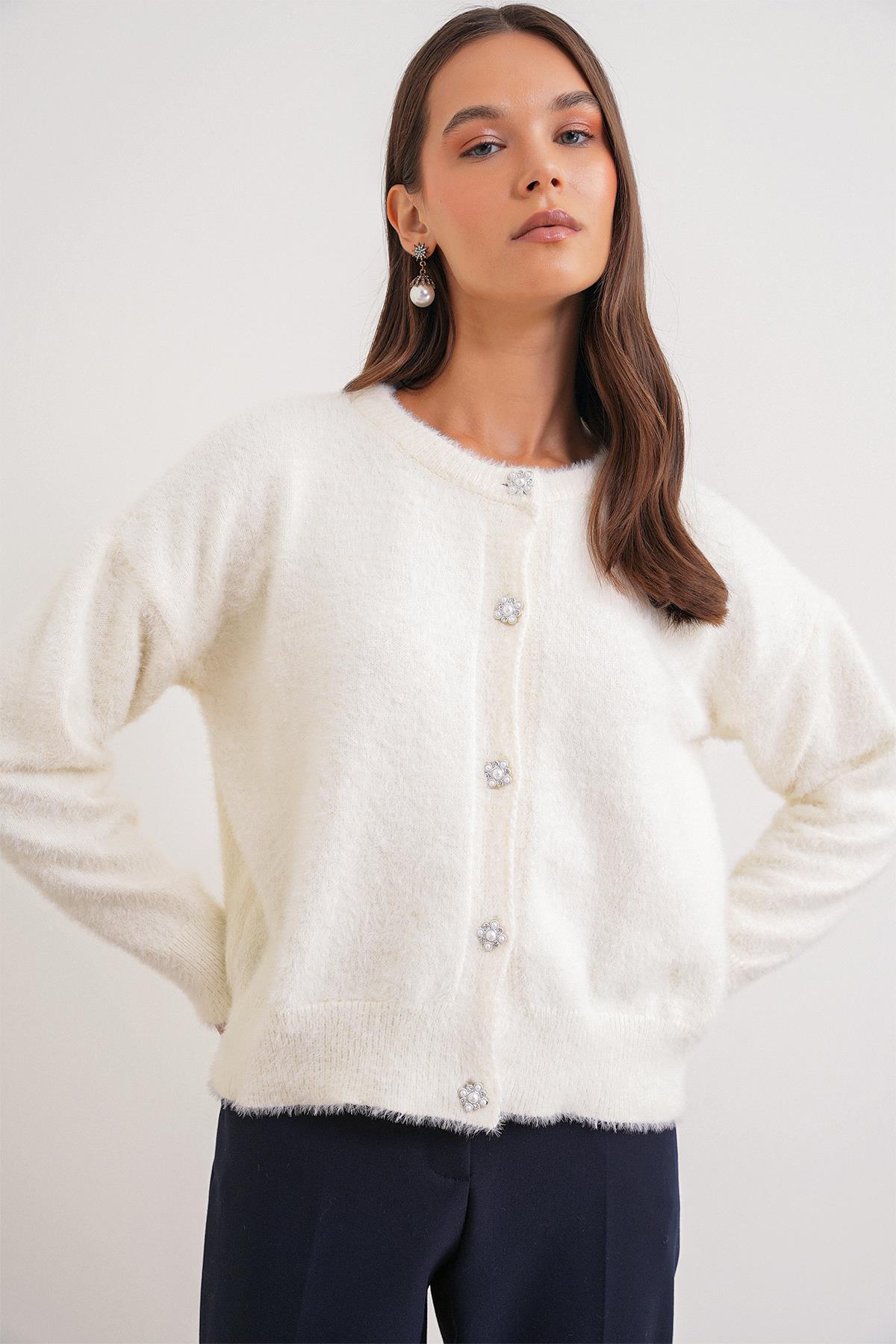 6902 Kadın Sakallı Basic Yumuşak Dokulu Triko Hırka