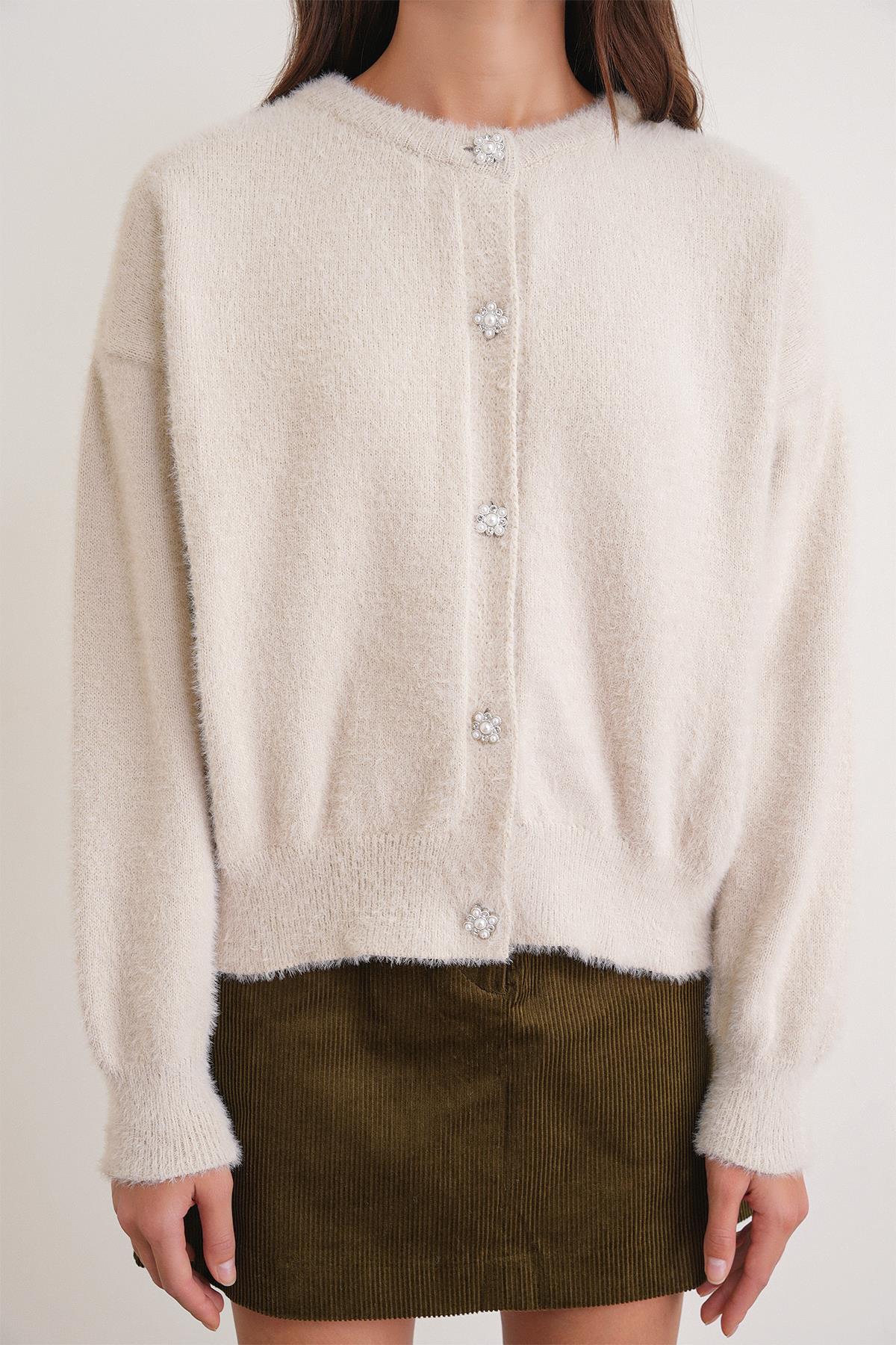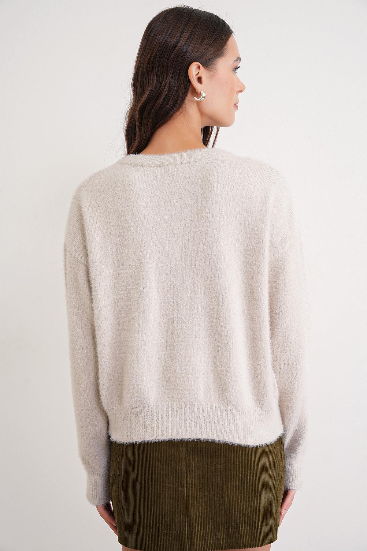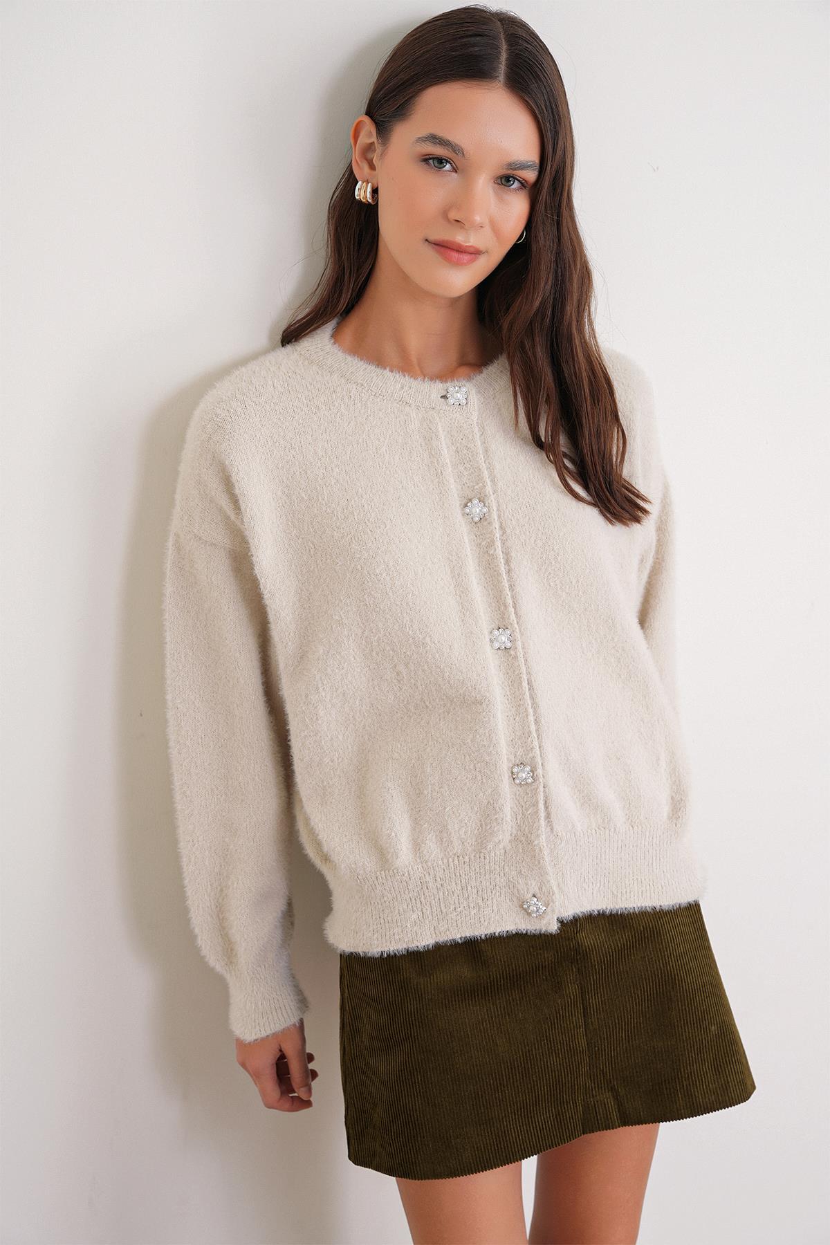 6902 Kadın Sakallı Basic Yumuşak Dokulu Triko Hırka Naturel (K25HRK6902-123)