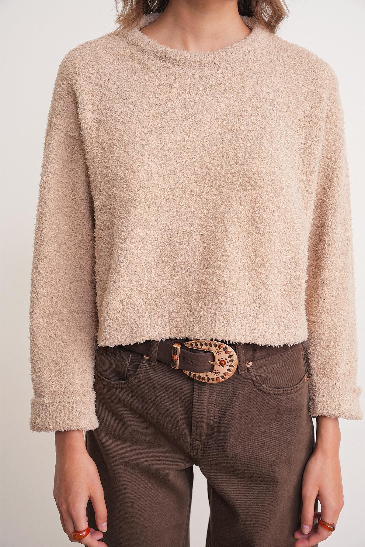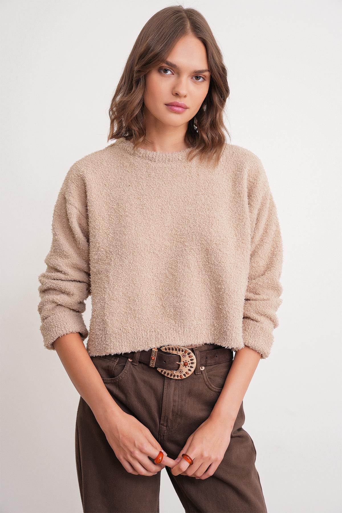 6917 Kadın Buklet Basic Triko Kazak Bej (K24KZK6917-125)