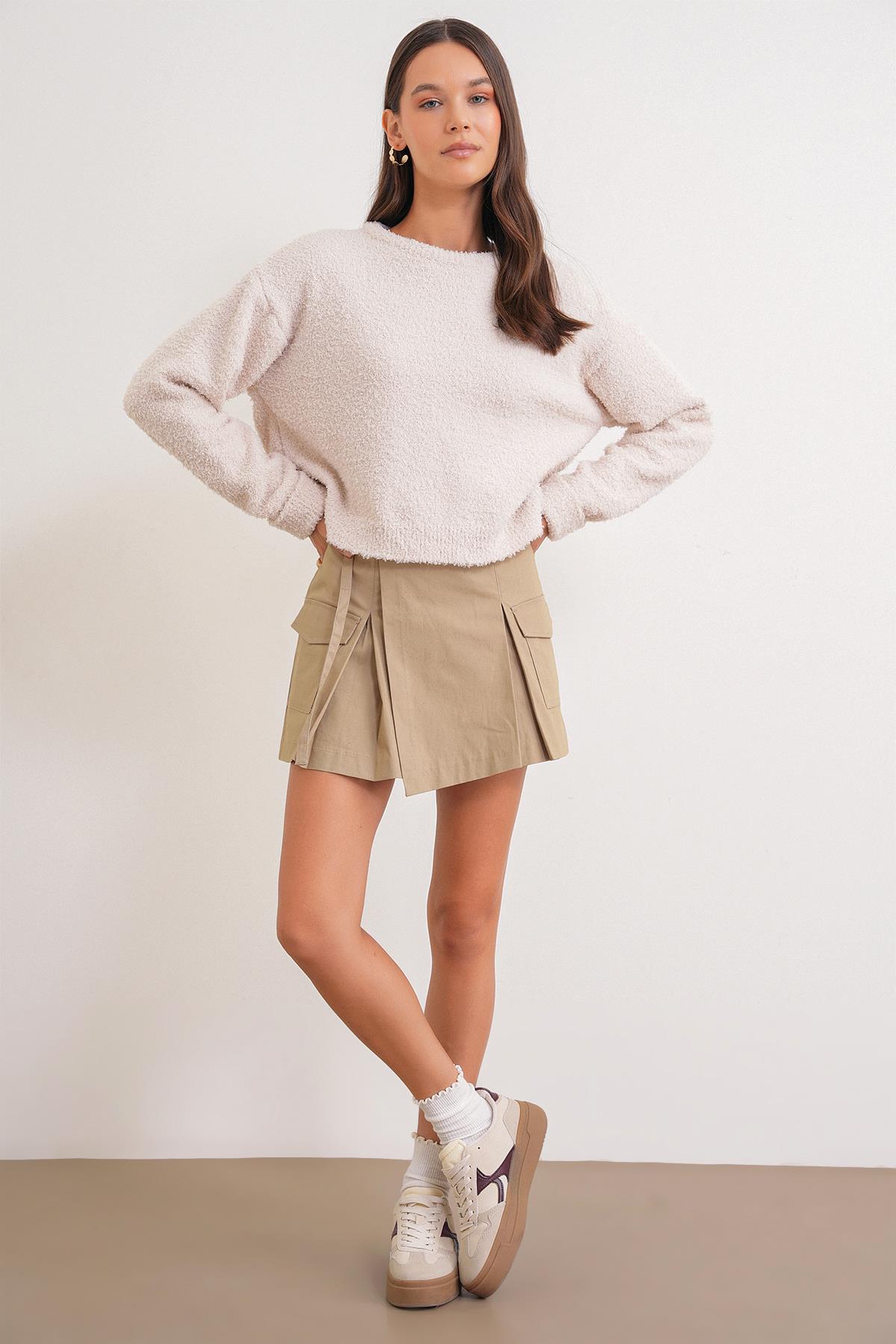 6917 Kadın Buklet Basic Triko Kazak Naturel (K24KZK6917-123)