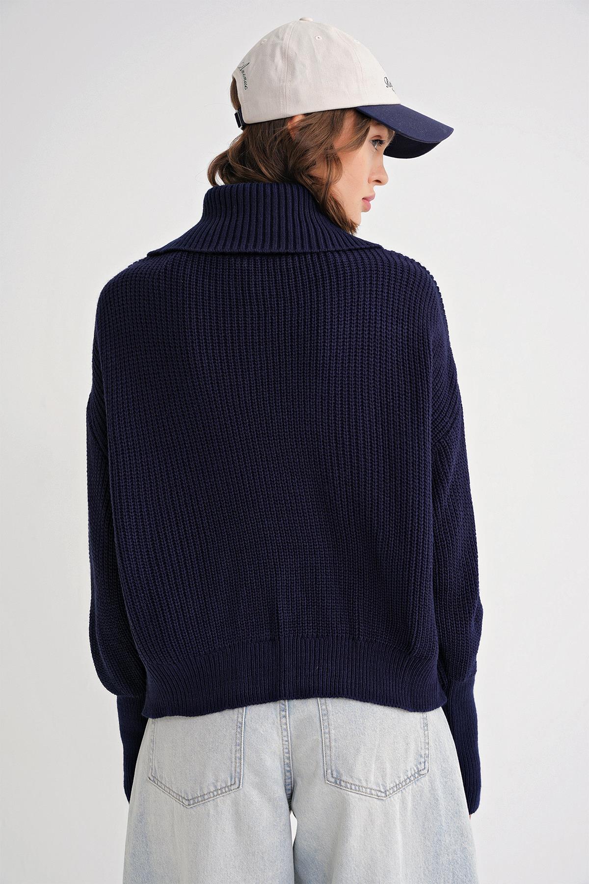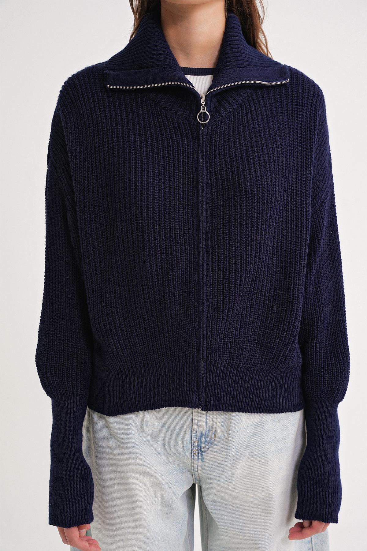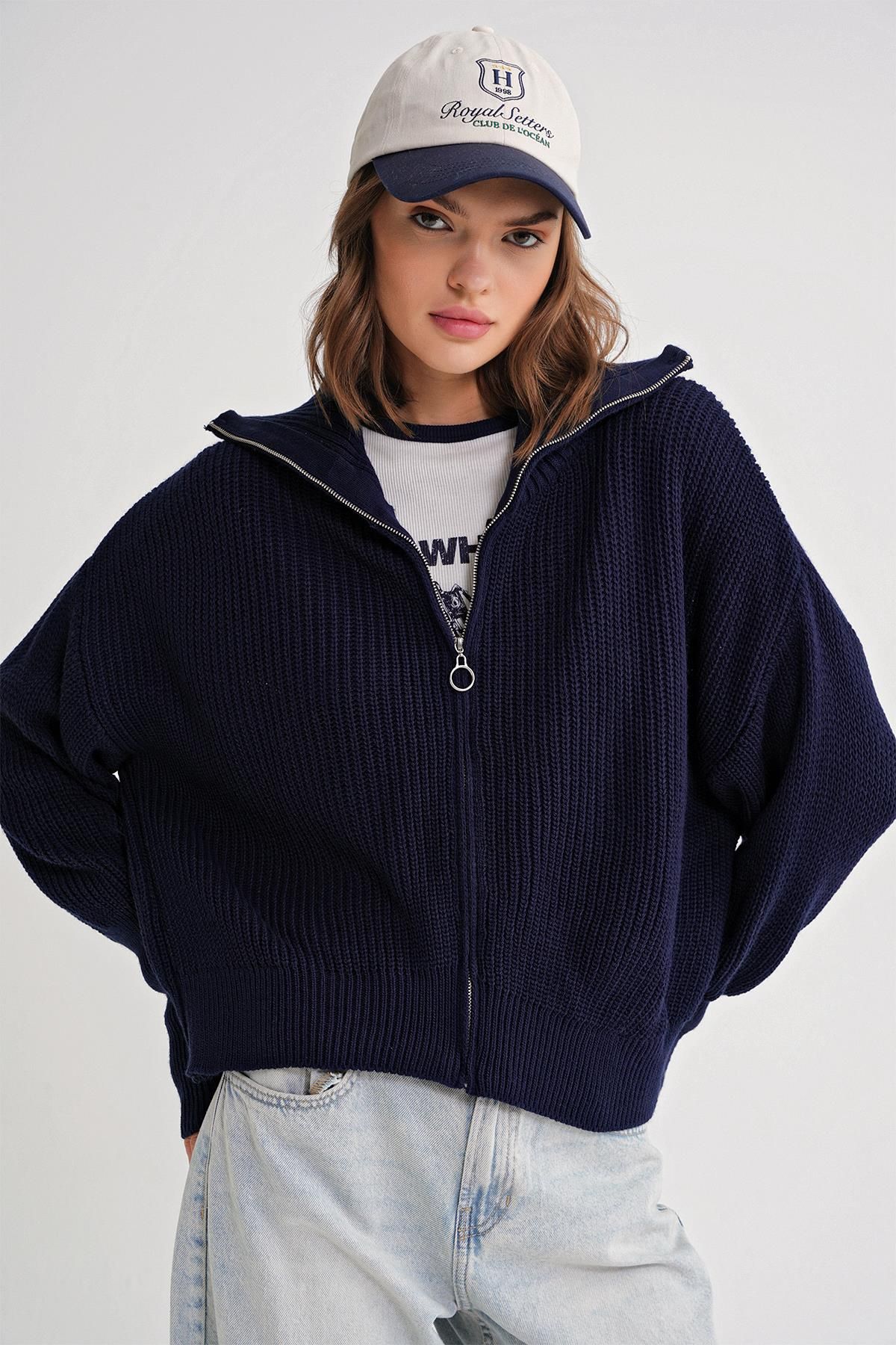 6919 Kadın Fermuarlı Balıkçı Yaka Triko Hırka Lacivert (K24HRK6919-122)