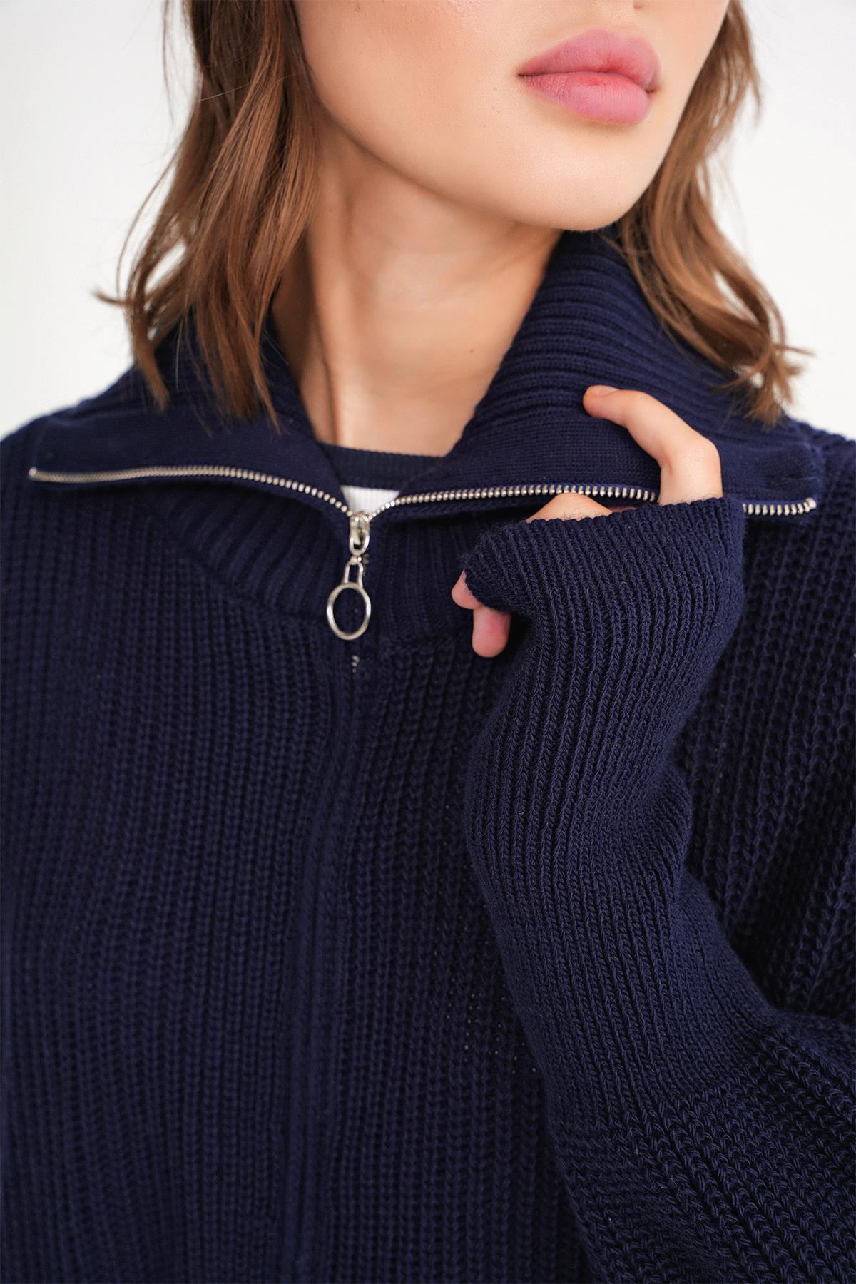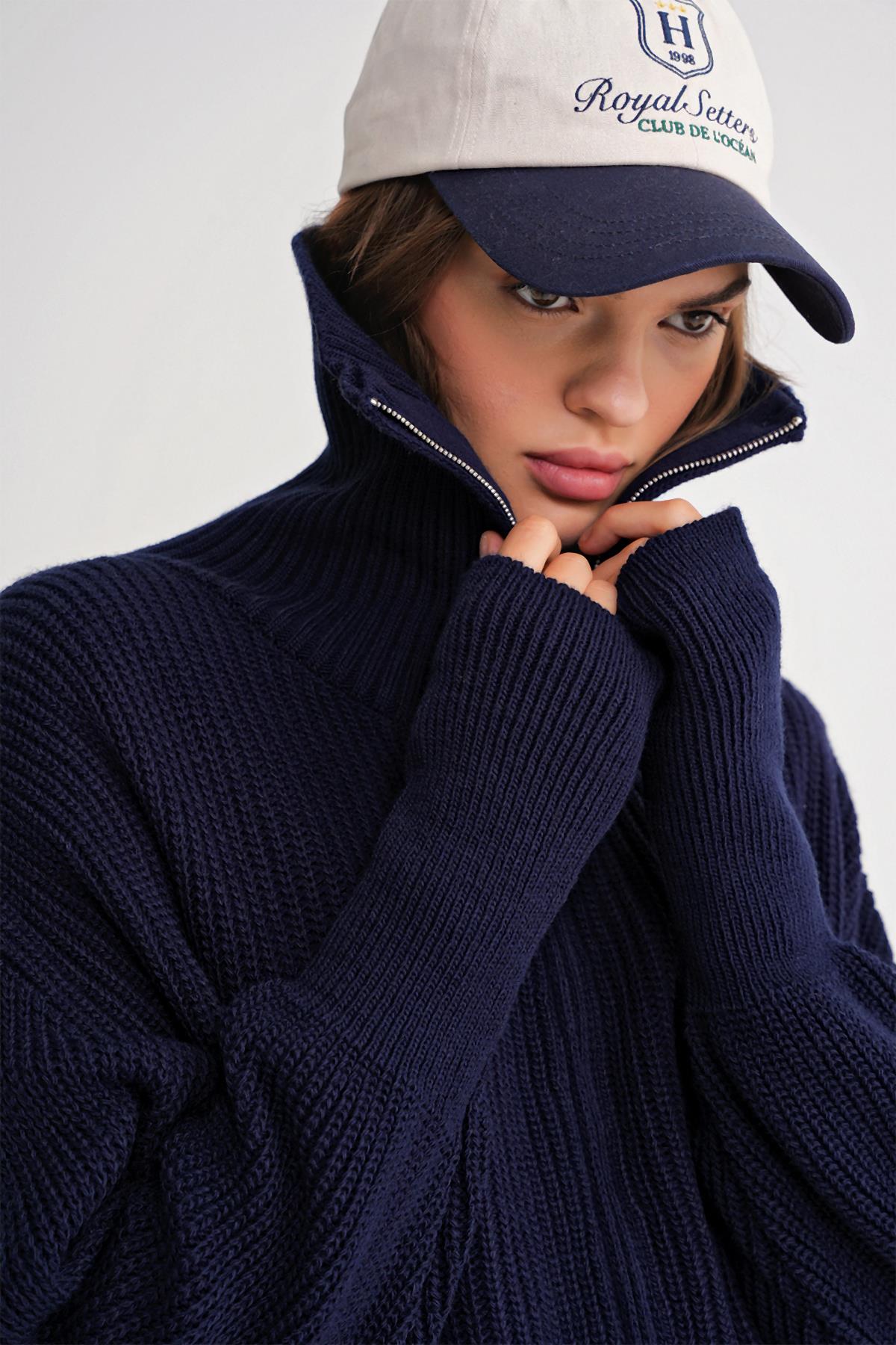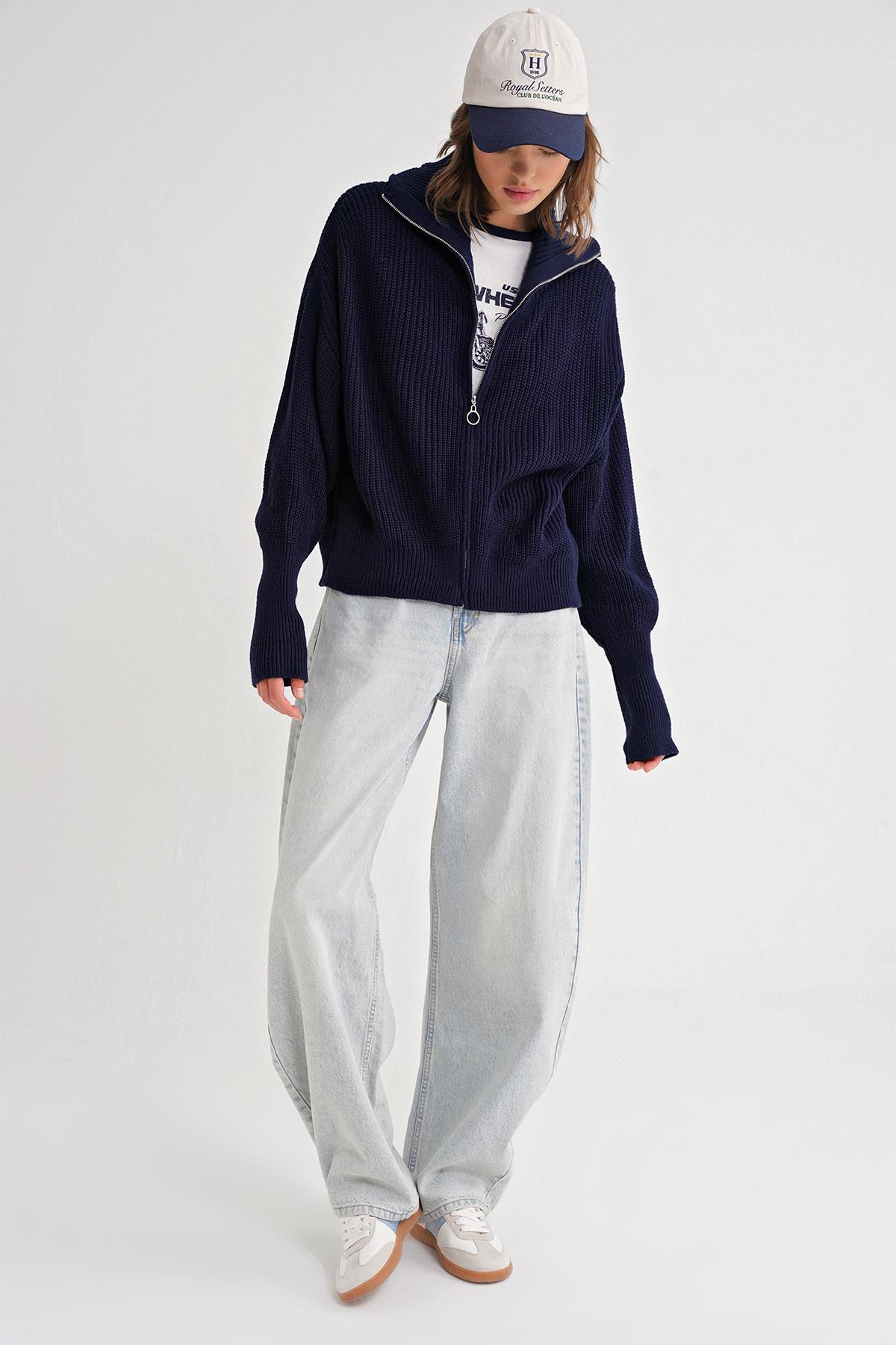 6919 Kadın Fermuarlı Balıkçı Yaka Triko Hırka Lacivert (K24HRK6919-122)