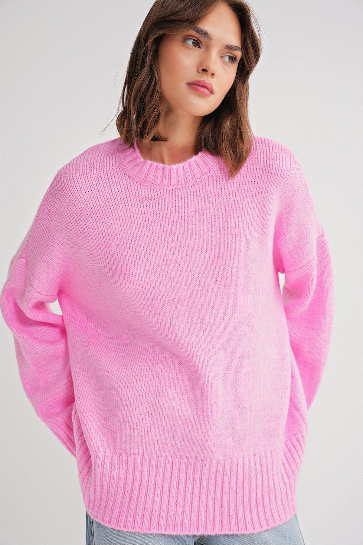 6925 Kadın Geniş Kollu Yumoş Dokulu Triko Kazak