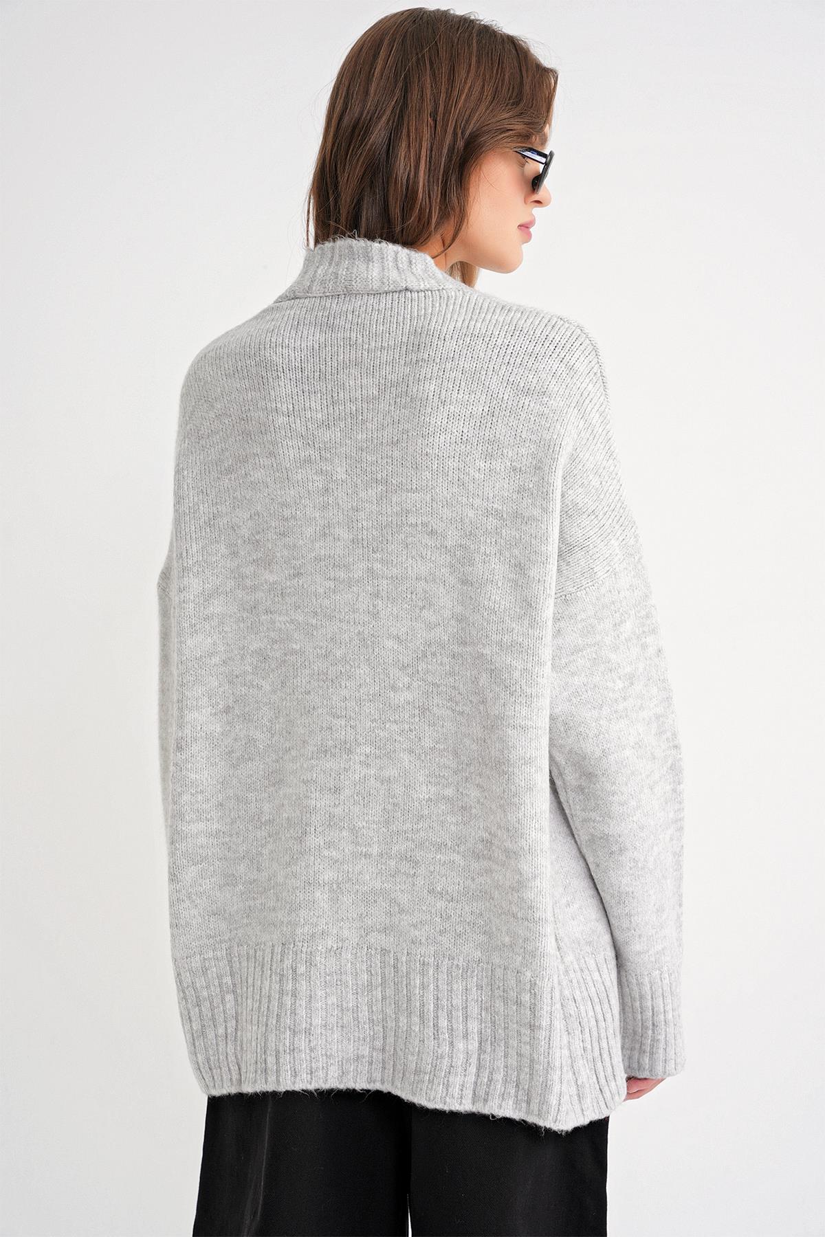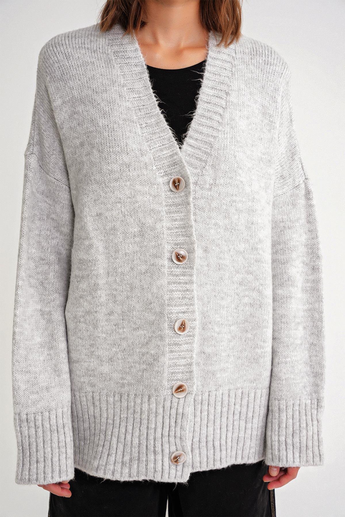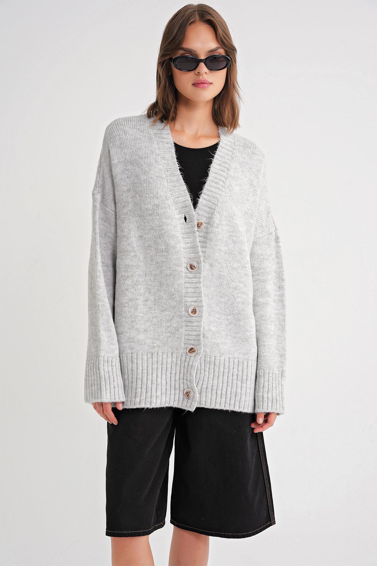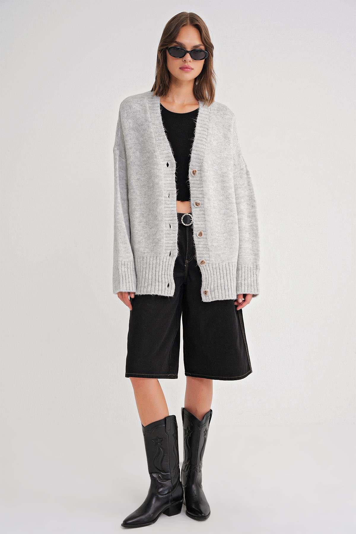 6927 Kadın Yumuşak Dokulu Salaş Basic Triko Hırka Gri (K24HRK6927-117)