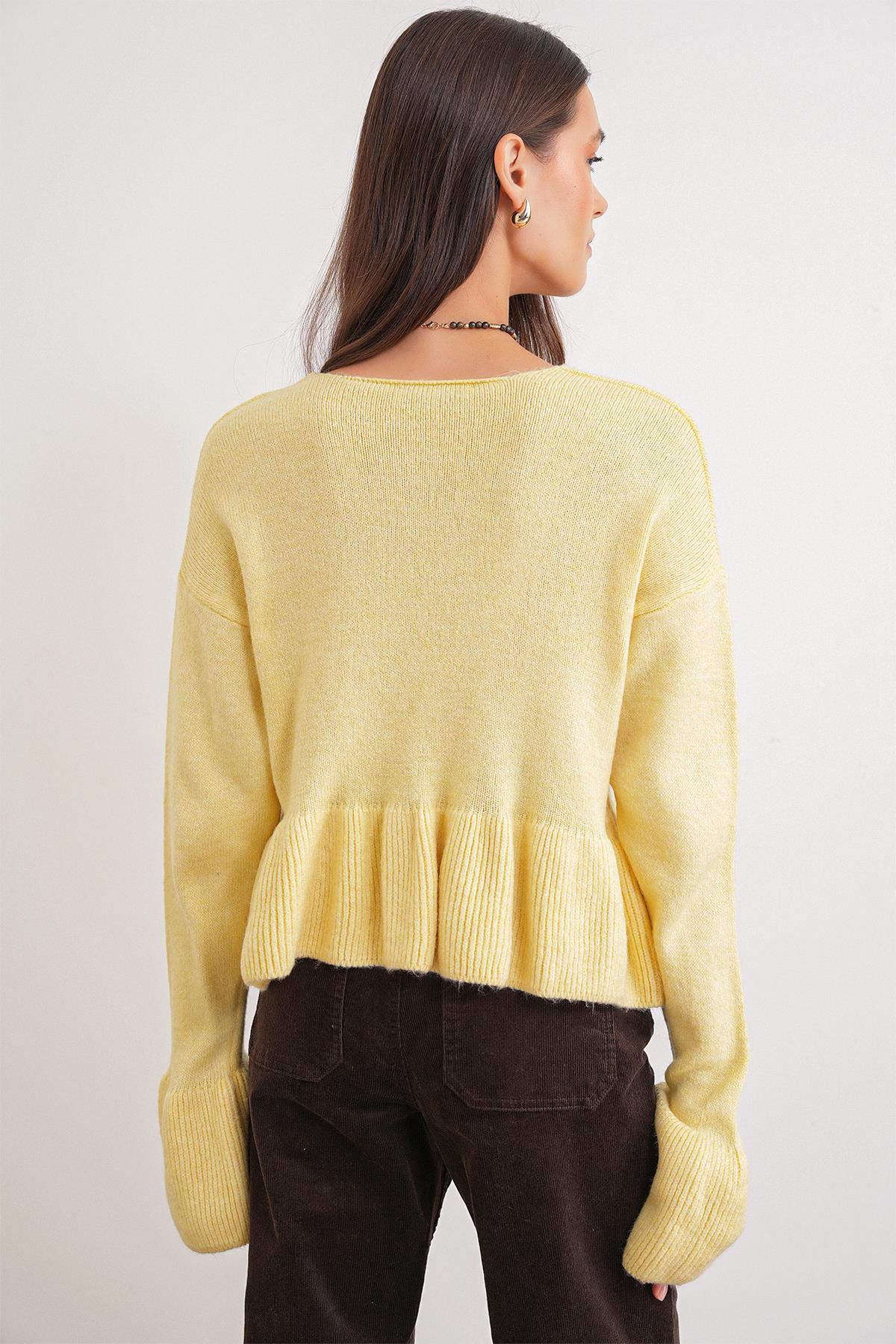 6955 Kadın Fırfırlı Triko Kazak Sarı (K25KZK6955-114)