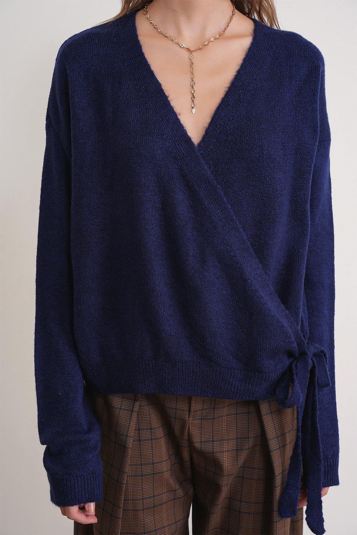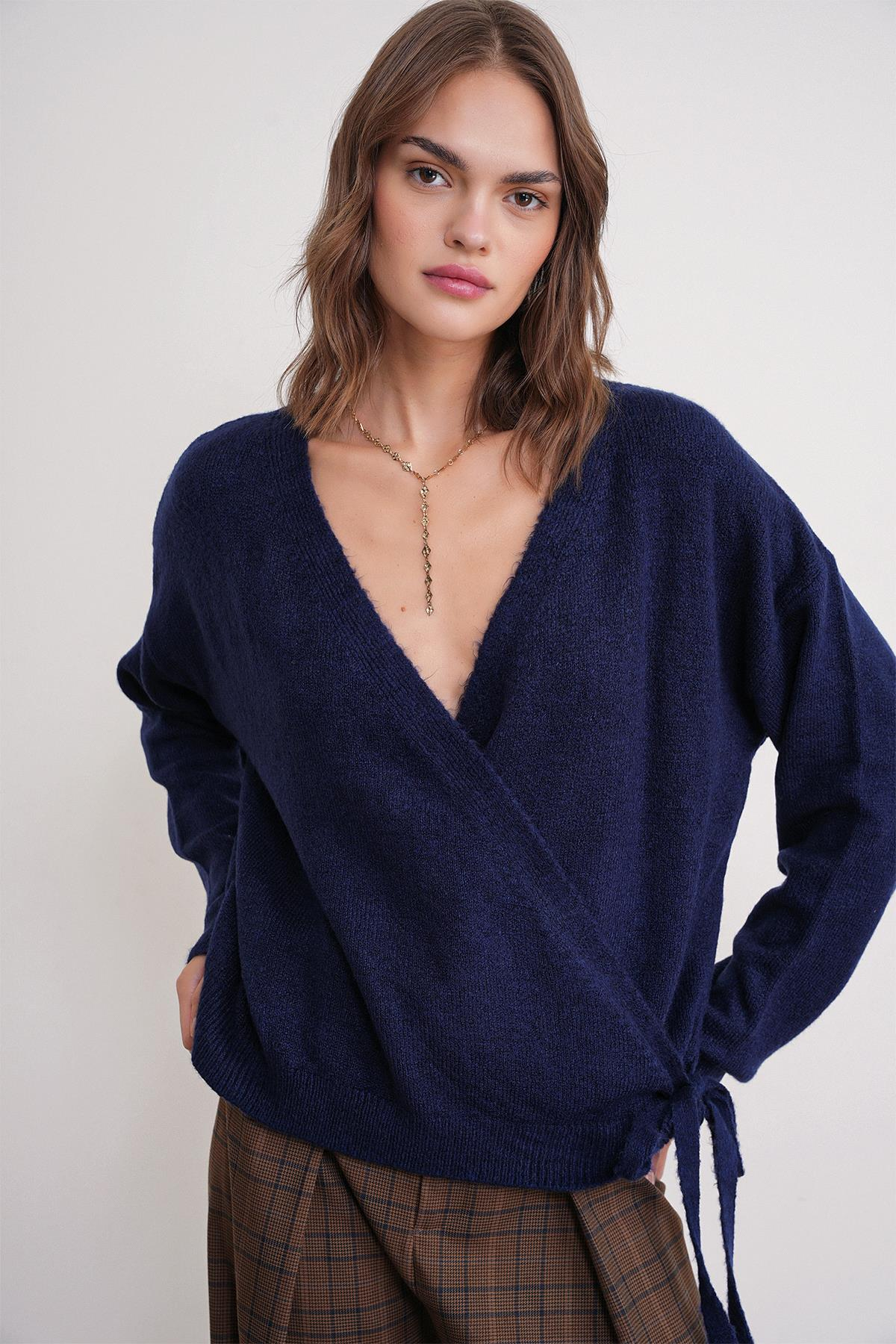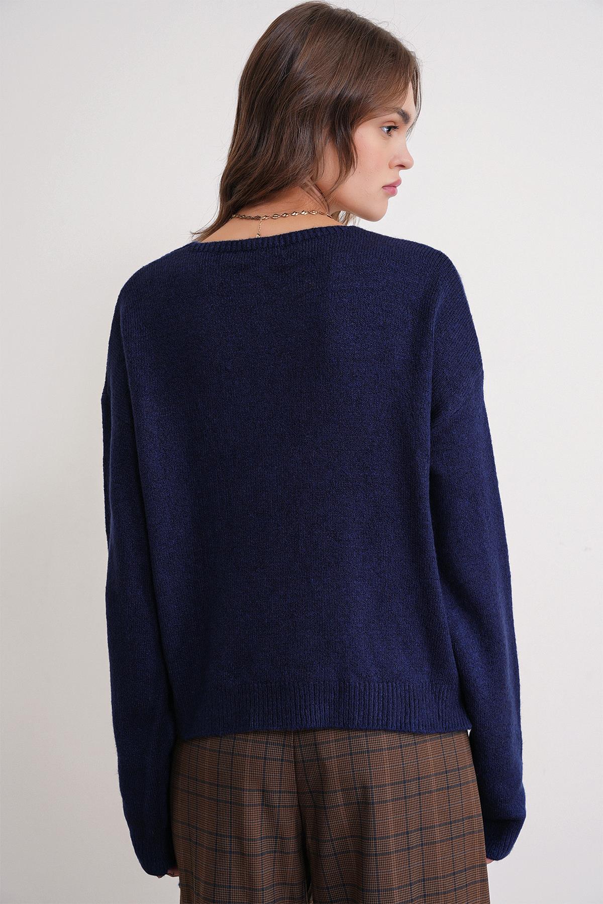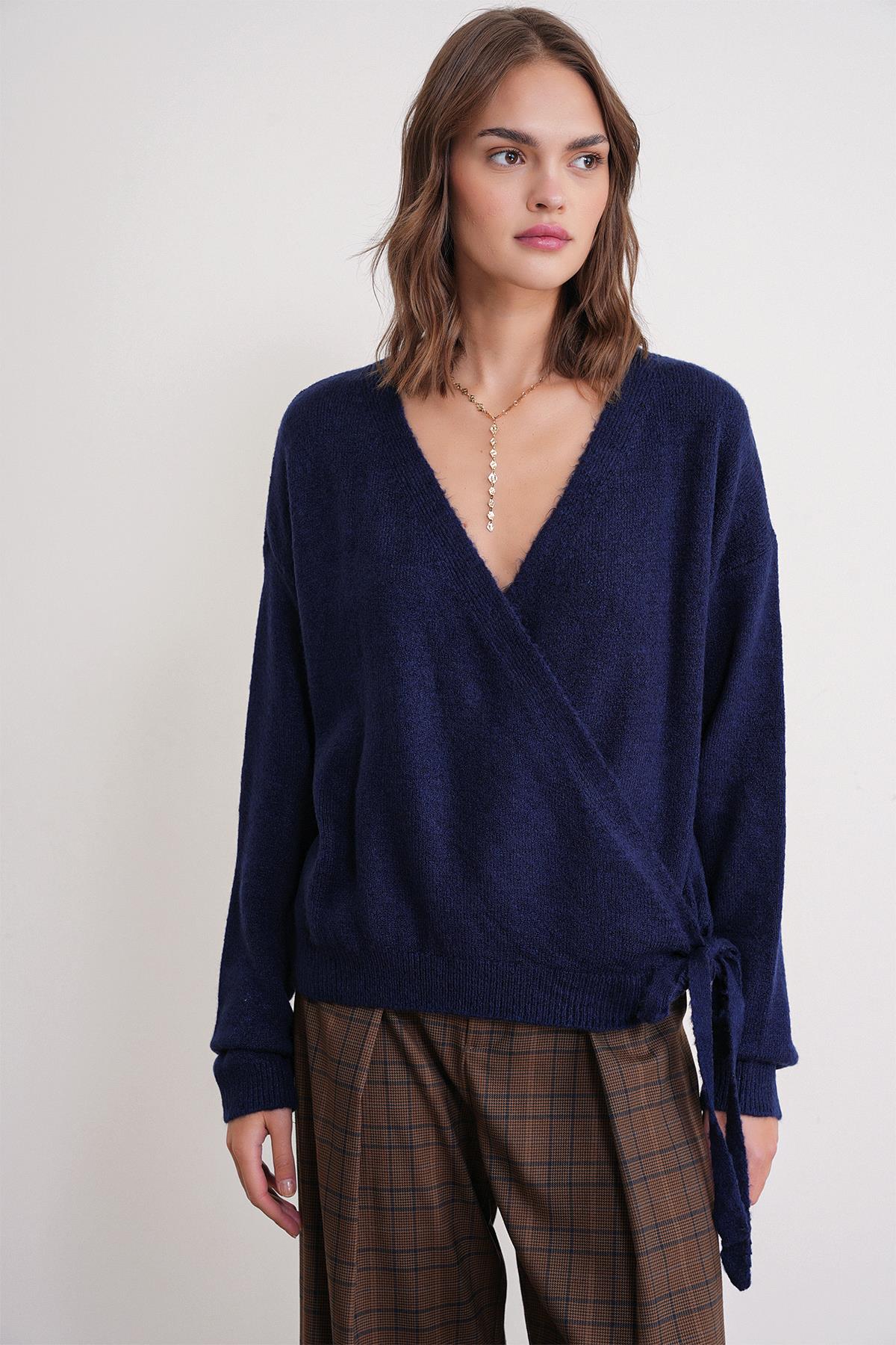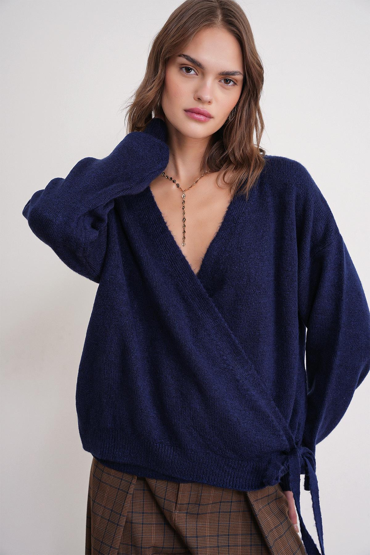6959 Kadın Fiyonklu Triko Hırka Lacivert (K25HRK6959-122)