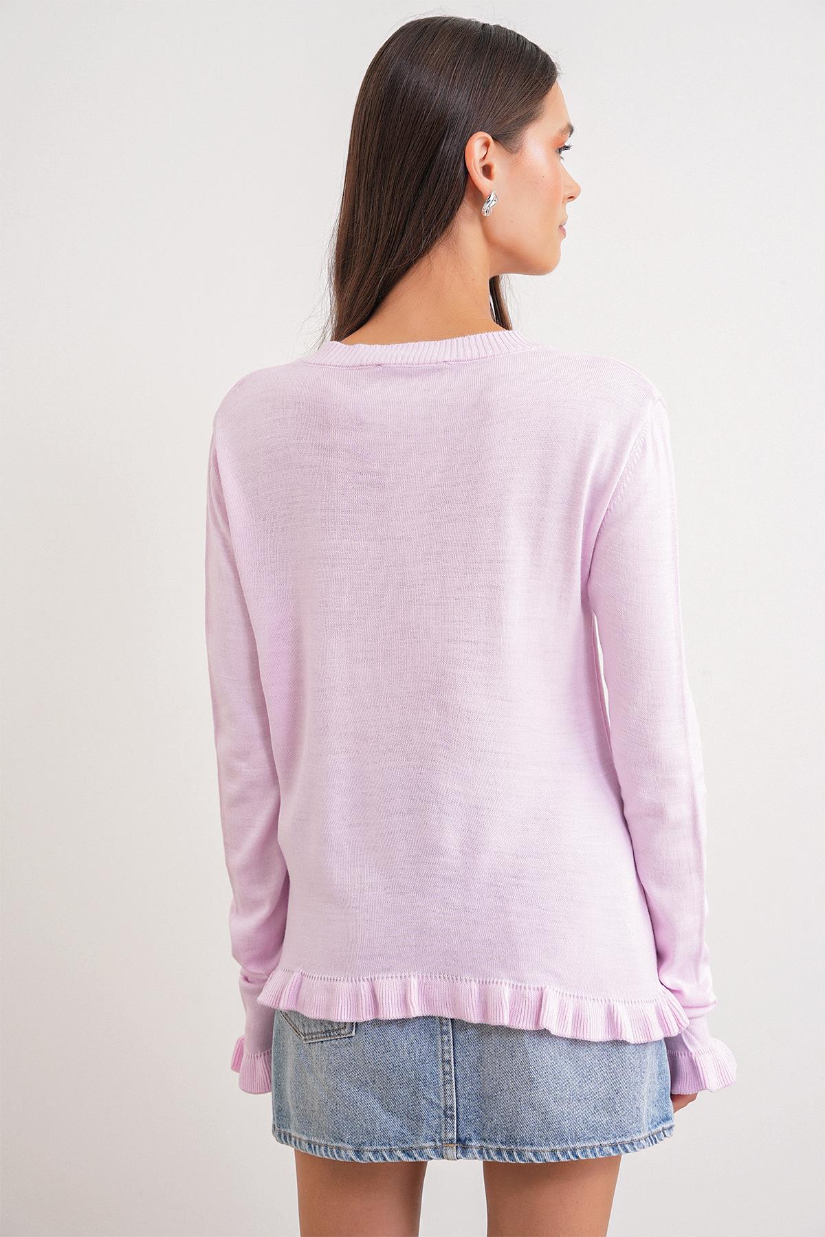 6964 Kadın Düz Fırfırlı Düğmeli Hırka Pembe (K25HRK6964-113)