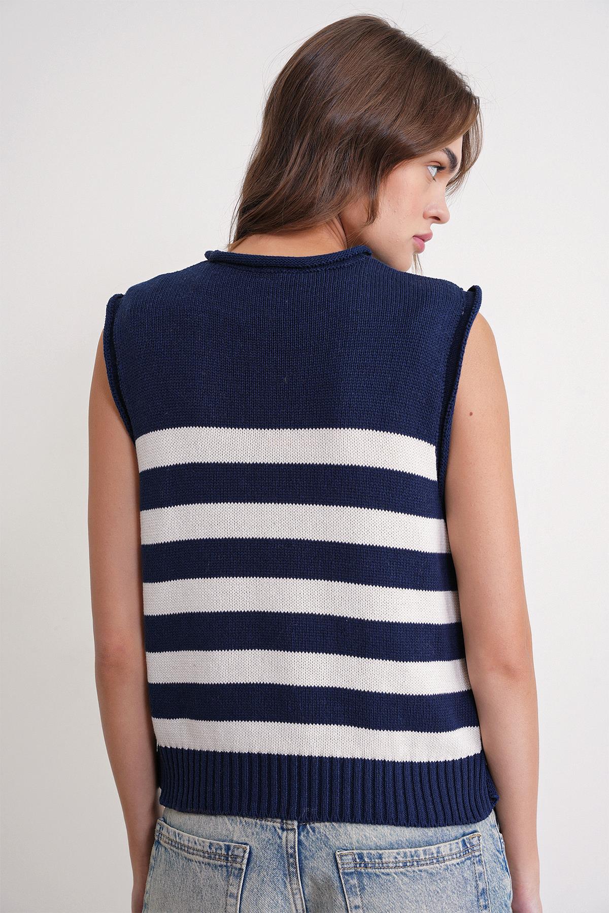 6969 Kadın Yan Düğmeli Triko Top Lacivert Naturel (K25KZK6969-195)