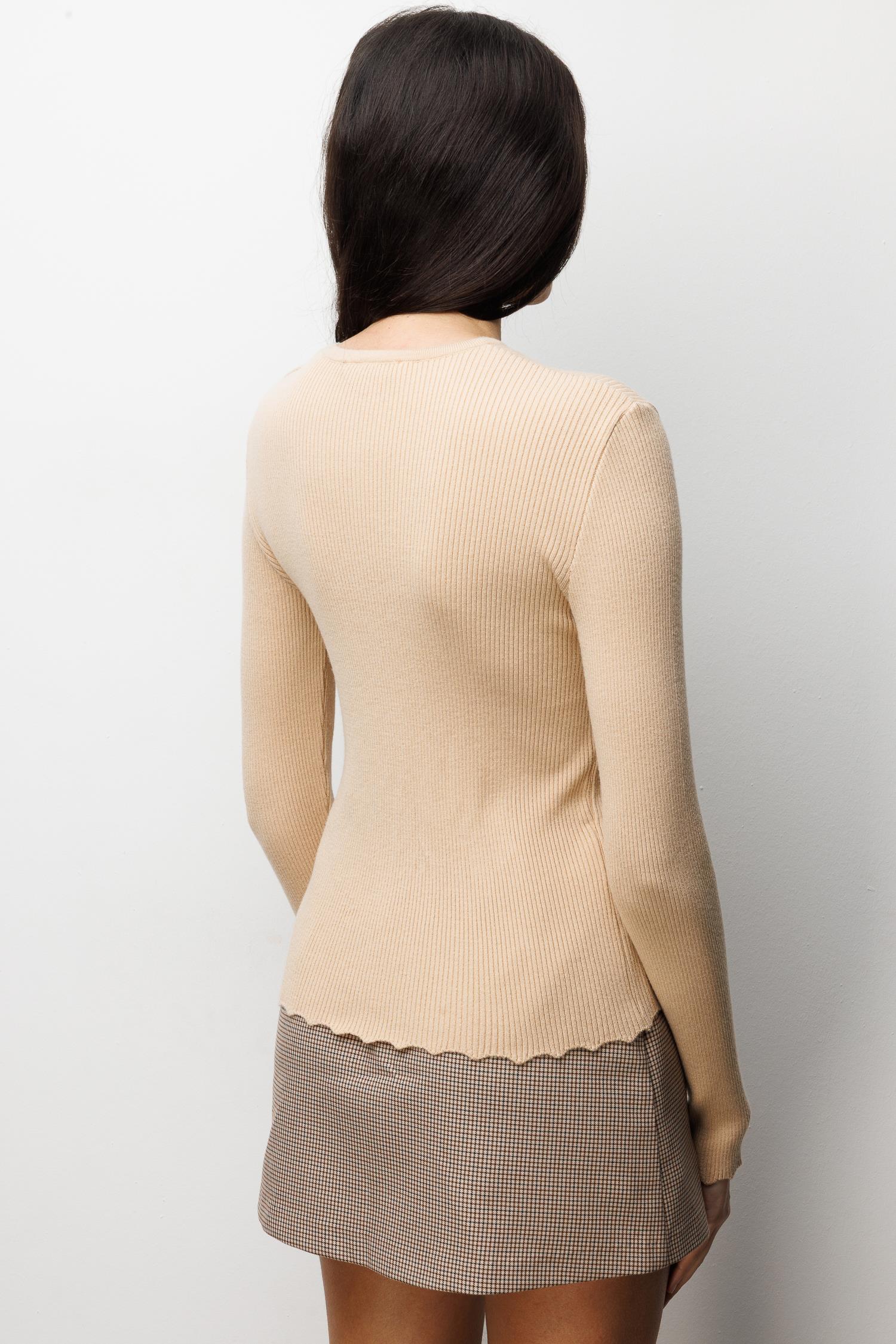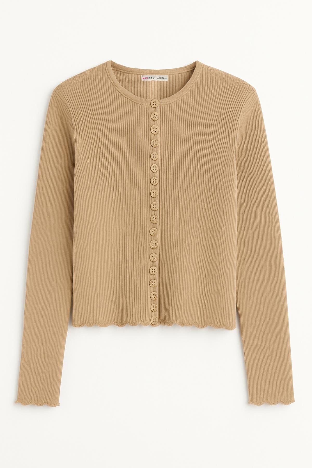 6972 Kadın Fitilli Basic Triko Hırka Camel (K25HRK6972-121)
