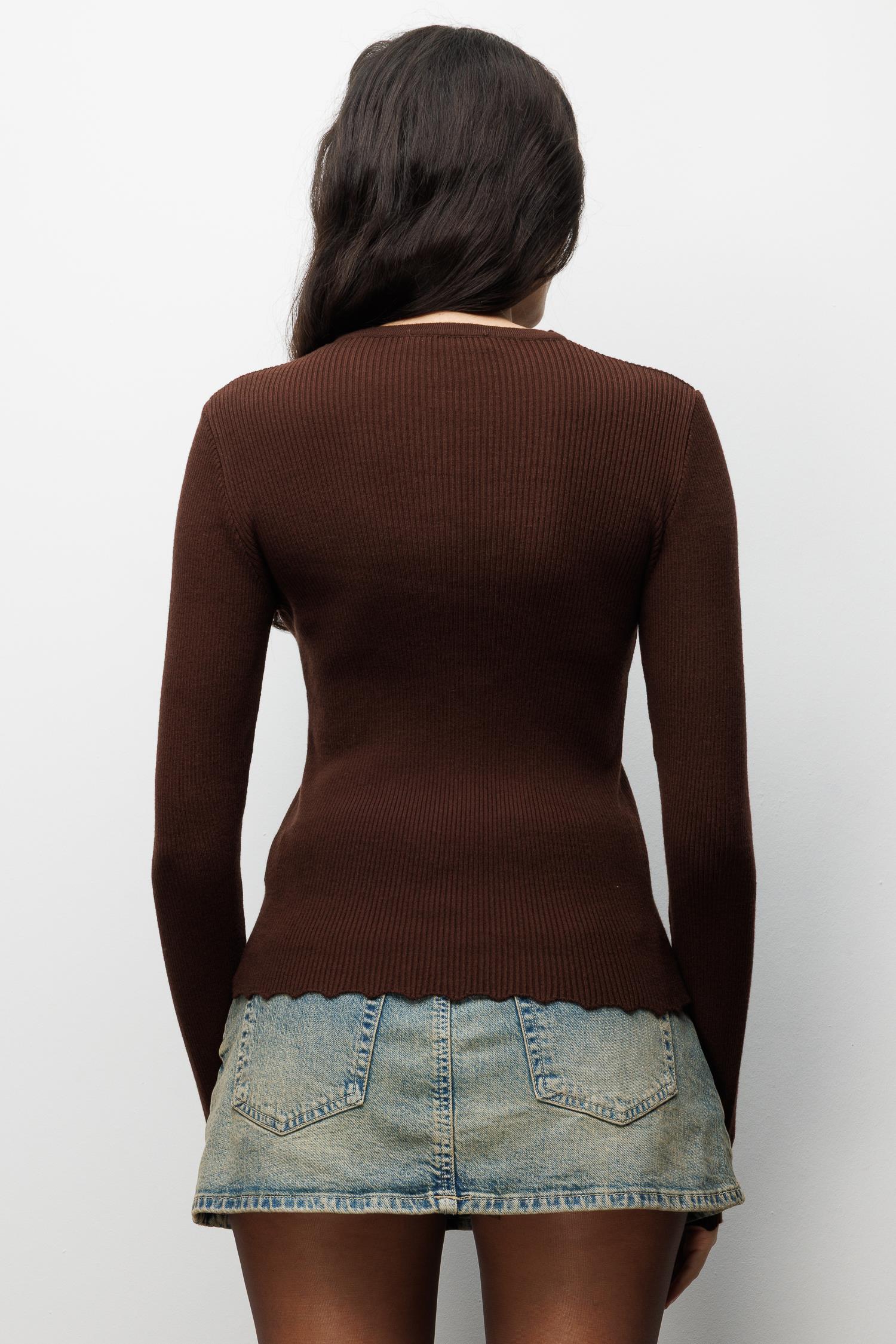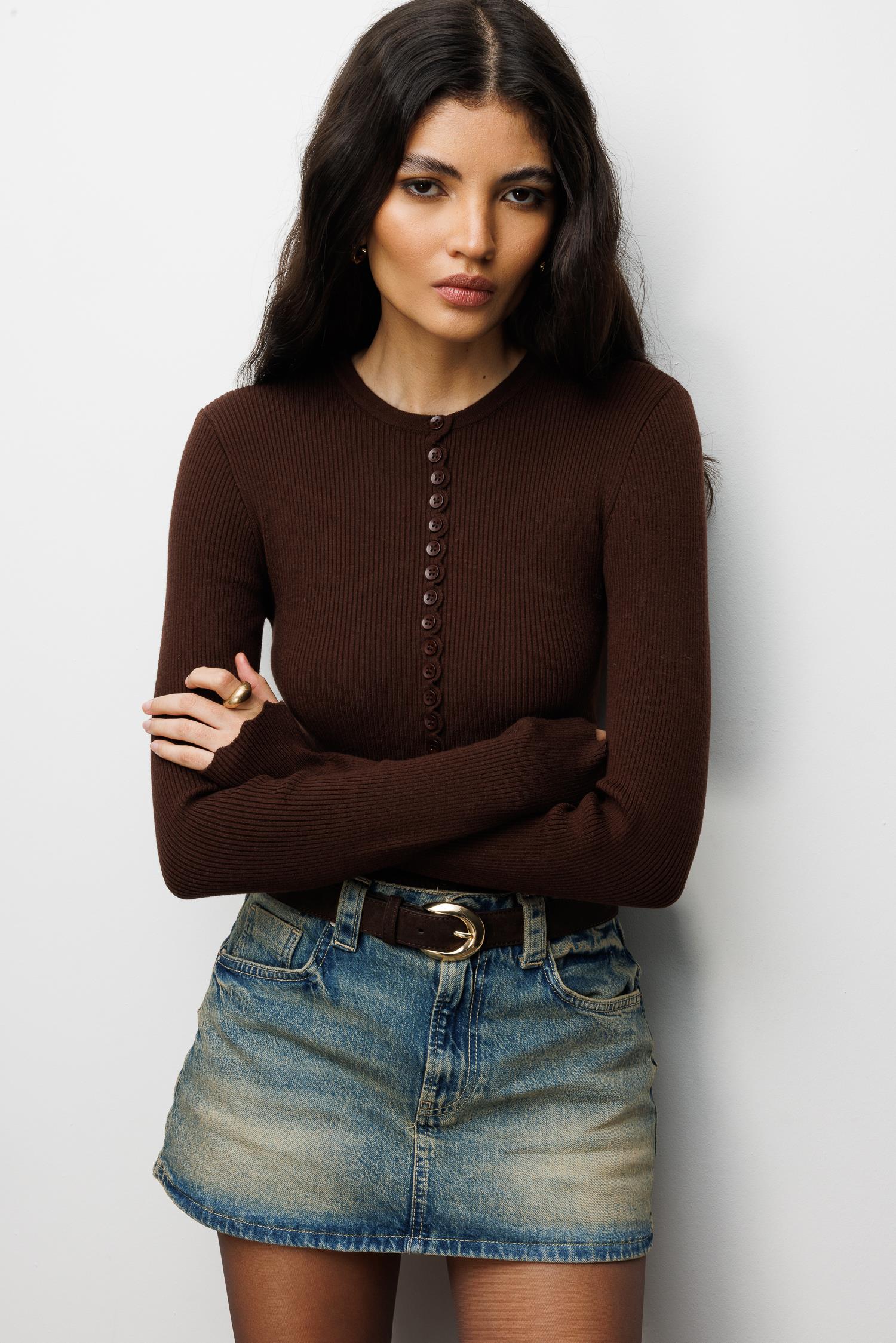 6972 Kadın Fitilli Basic Triko Hırka Kahve (K25HRK6972-120)