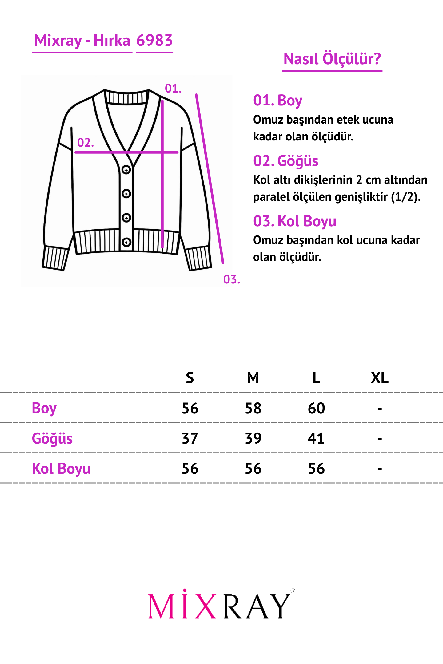 6983 Kadın Dik Yaka Fitilli Çıtçıtlı Triko Hırka