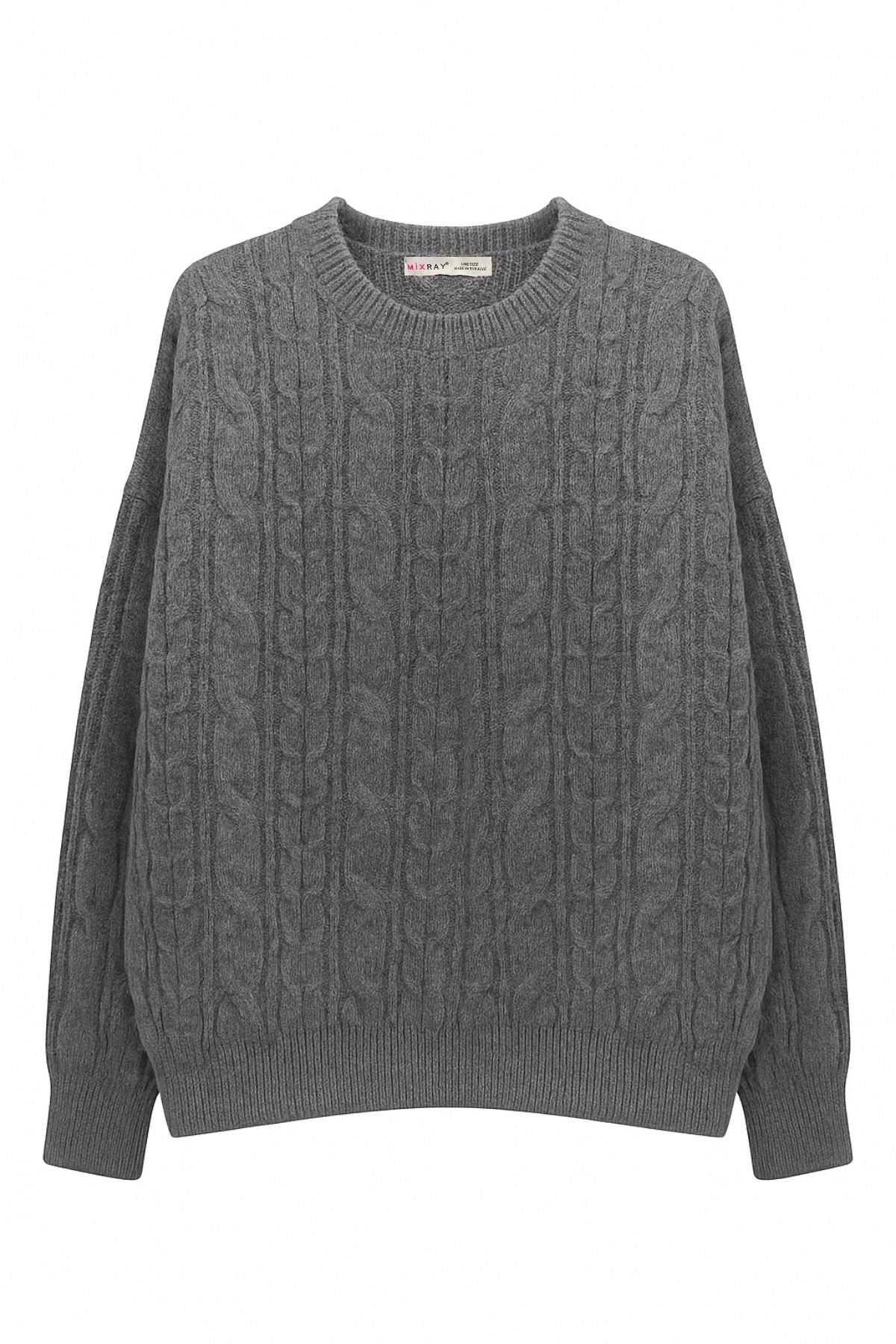 6986 Kadın Oversize Saç Örgü Yumuşak Dokulu Triko Kazak Antrasit (K25KZK6986-108)