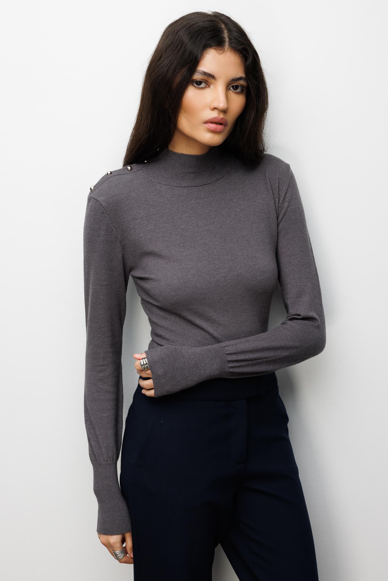 7002 Kadın Omuzu Düğmeli Triko Kazak Antrasit (K25KZK7002-108)