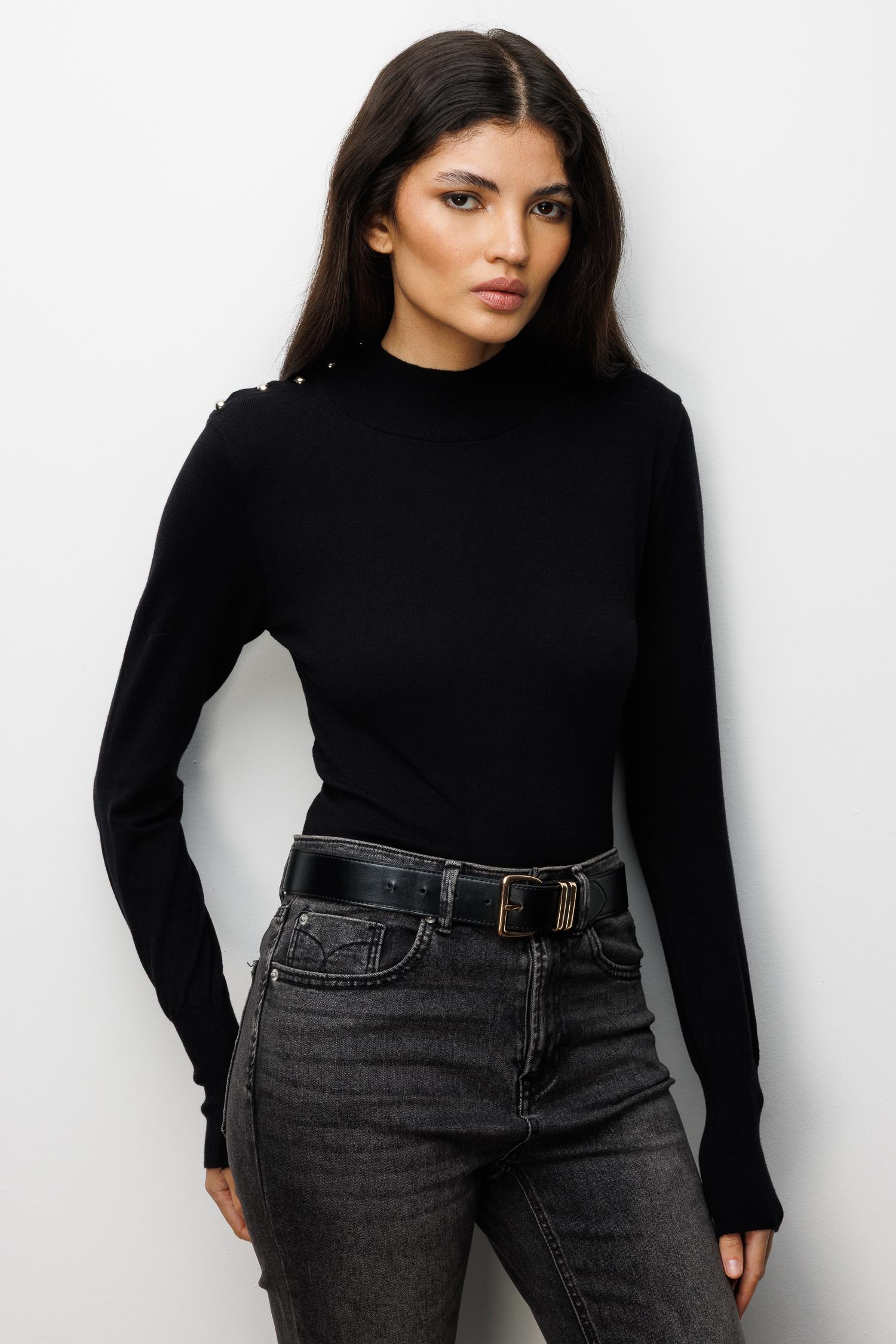 7002 Kadın Omuzu Düğmeli Triko Kazak Siyah (K25KZK7002-001)