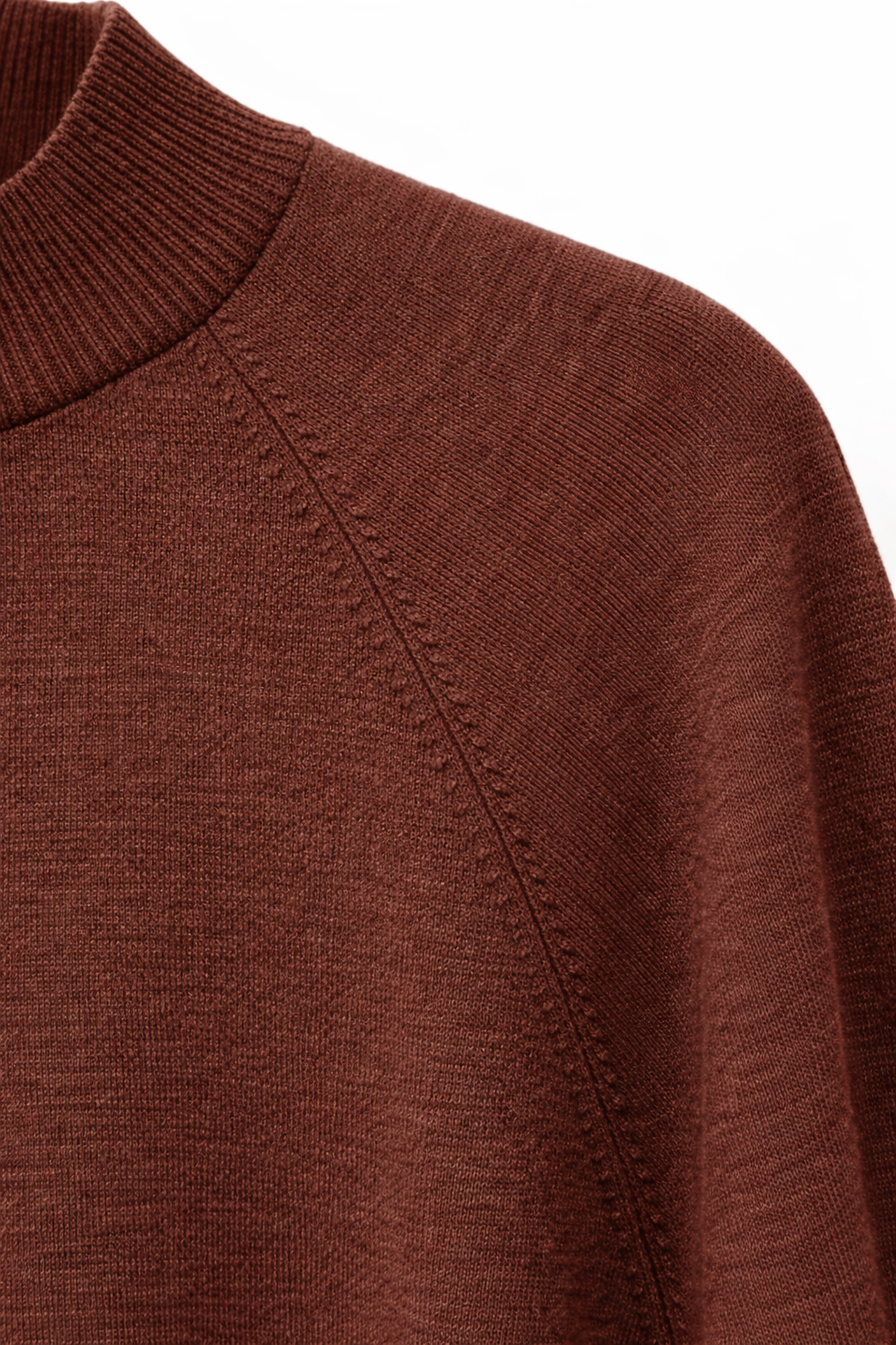 7003 Kadın Oversize Dik Yaka Basic Triko Kazak Kahve (K25KZK7003-120)