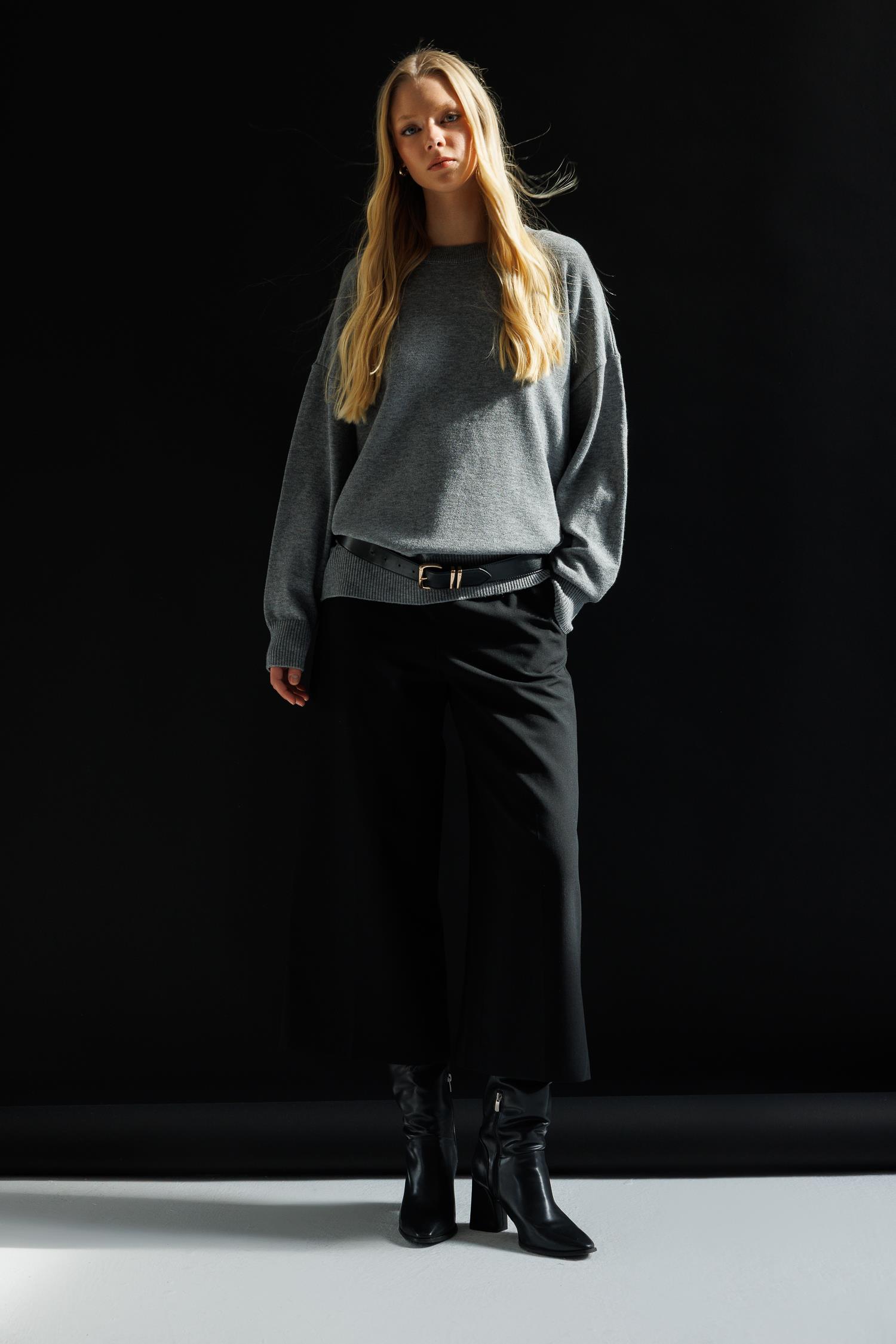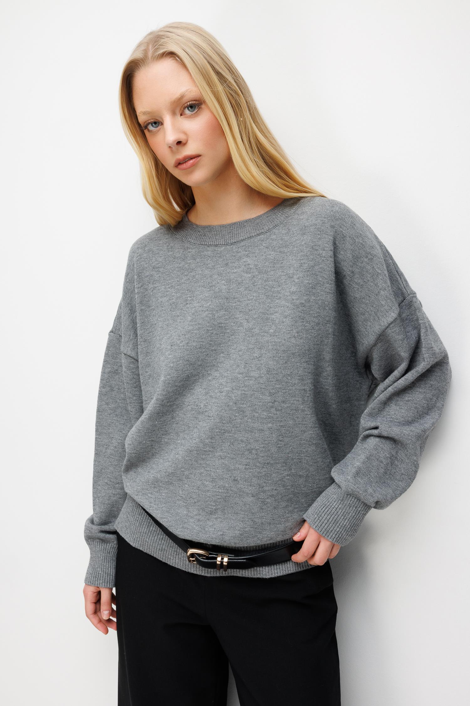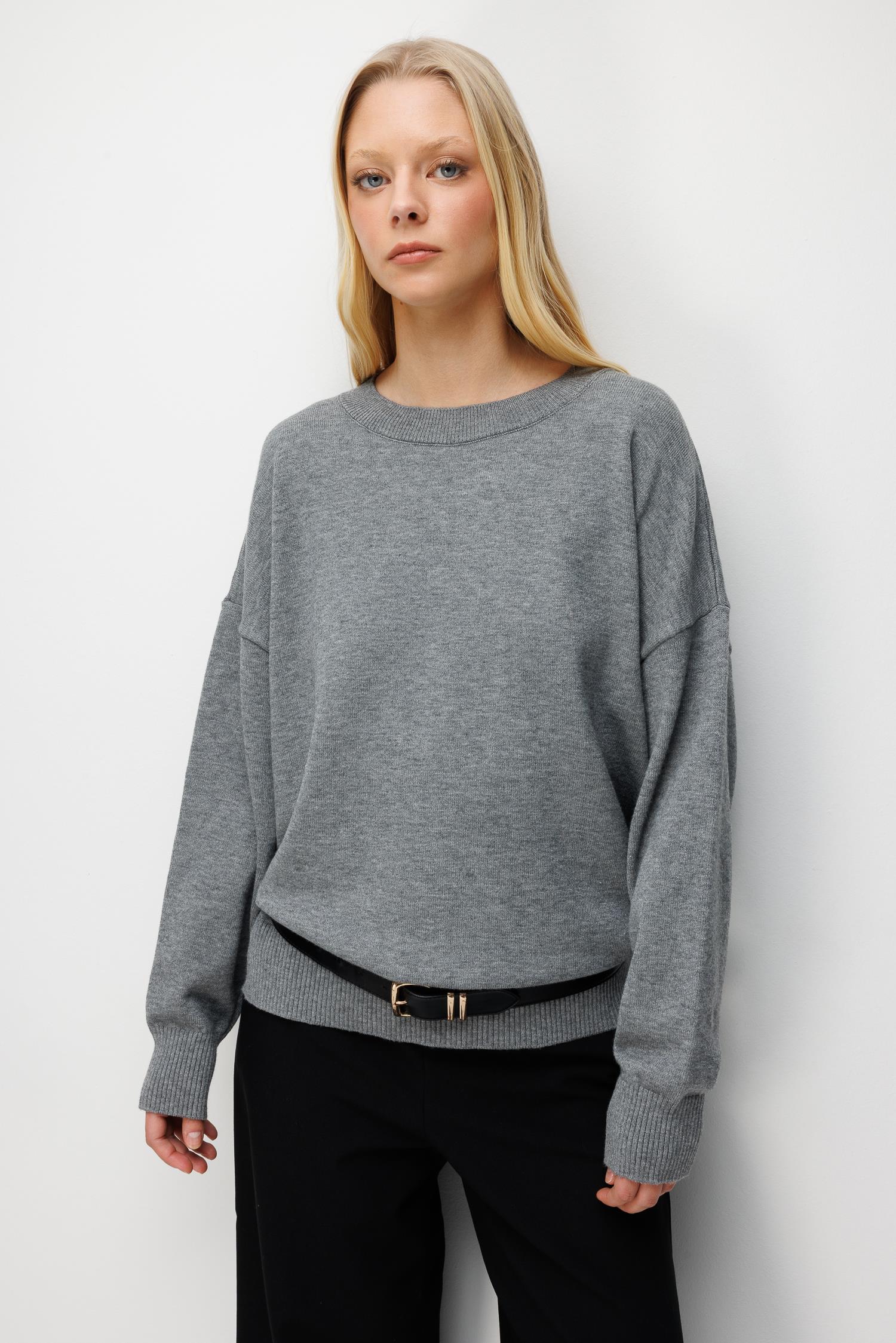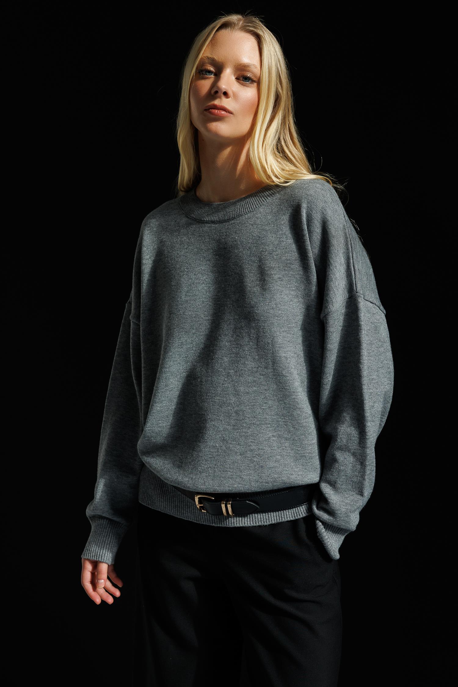 7021 Kadın Bisiklet Yaka Oversize Basic Premium Triko Kazak Antrasit (K26KZK7021-108)