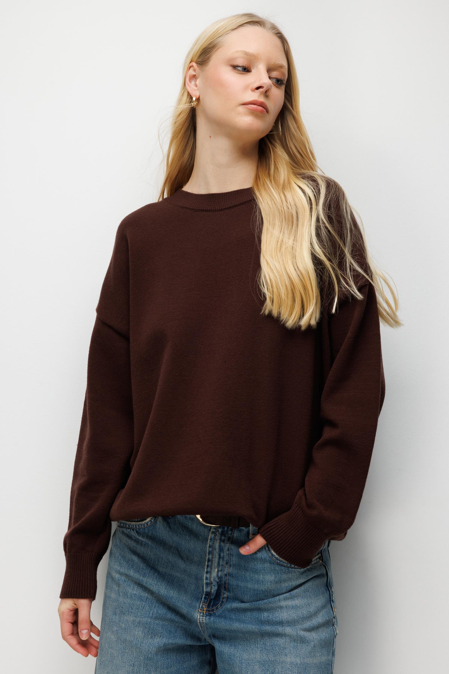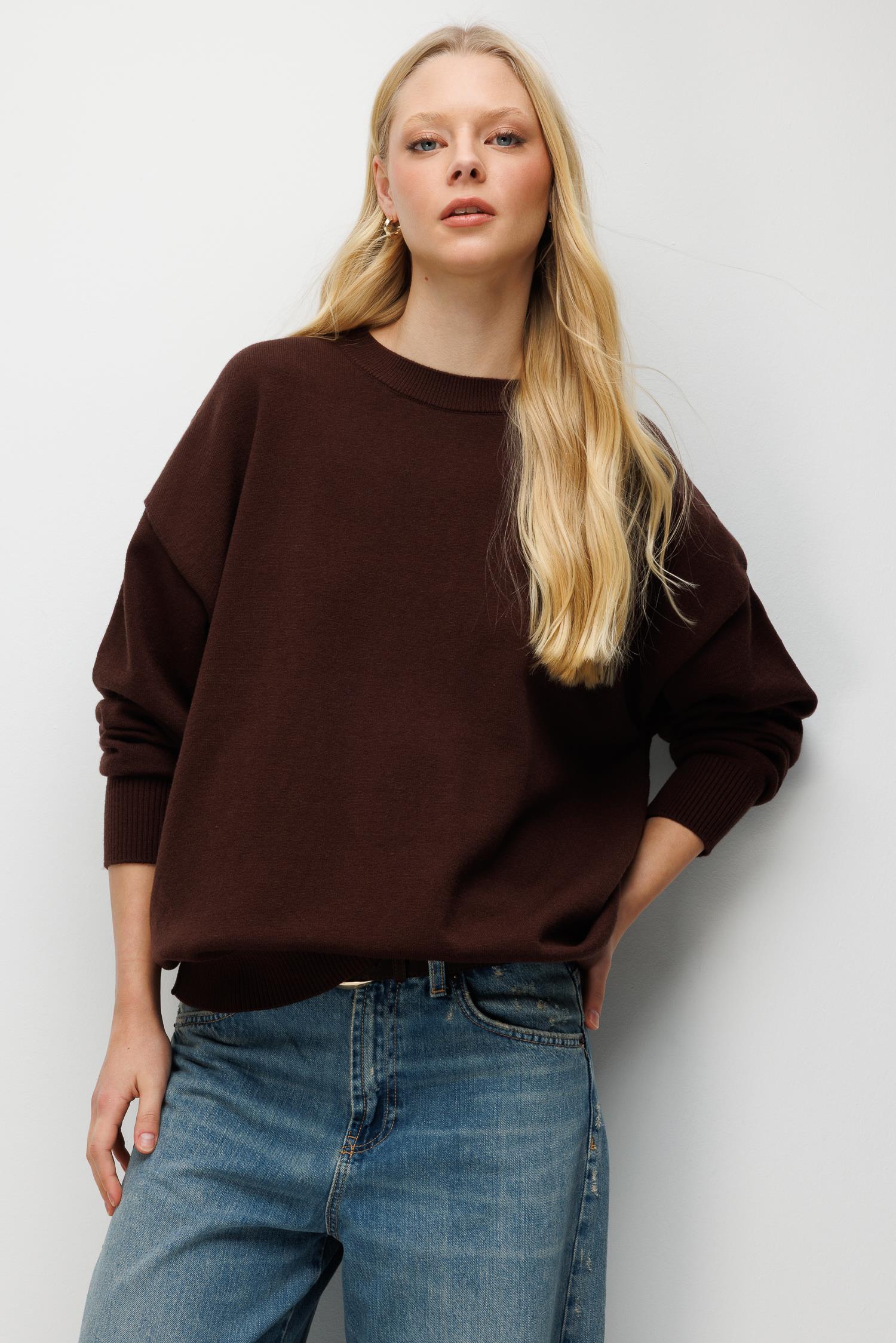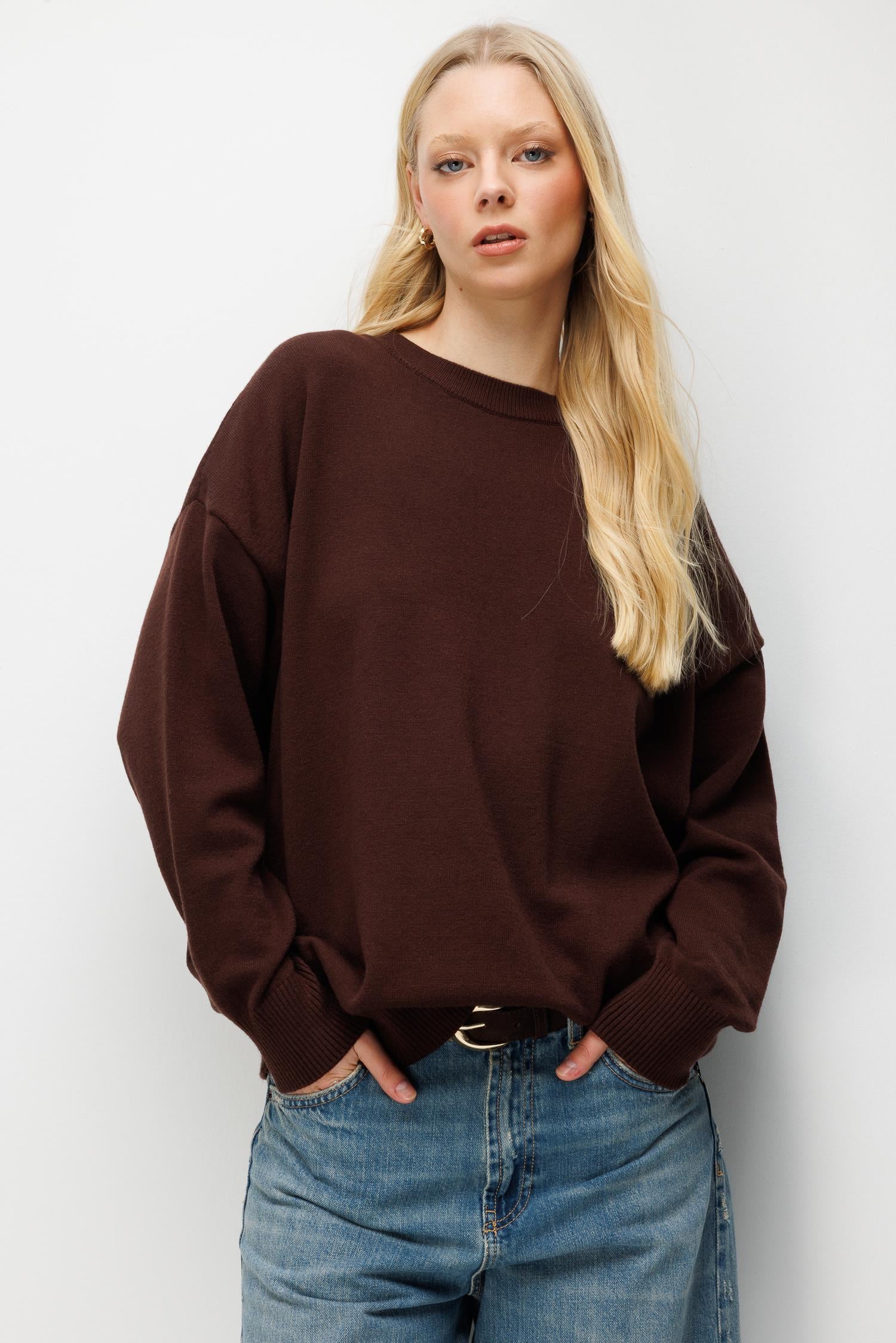 7021 Kadın Bisiklet Yaka Oversize Basic Premium Triko Kazak Kahve (K26KZK7021-120)