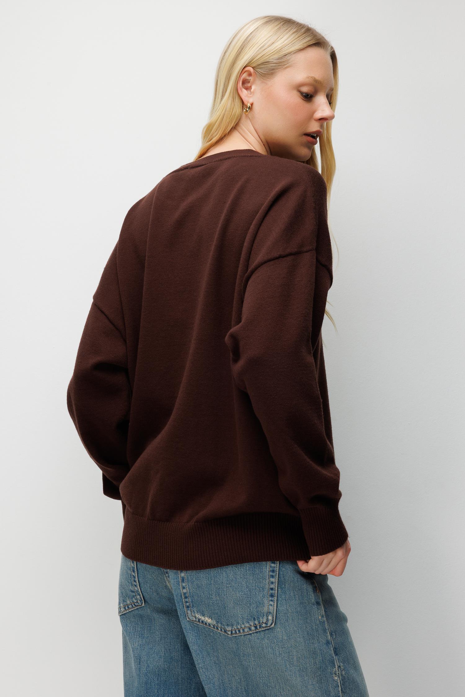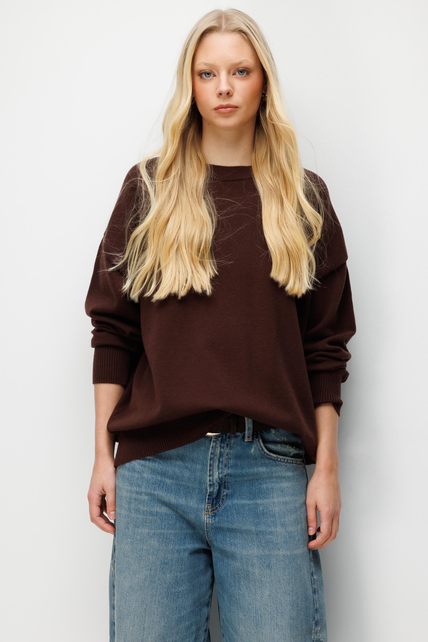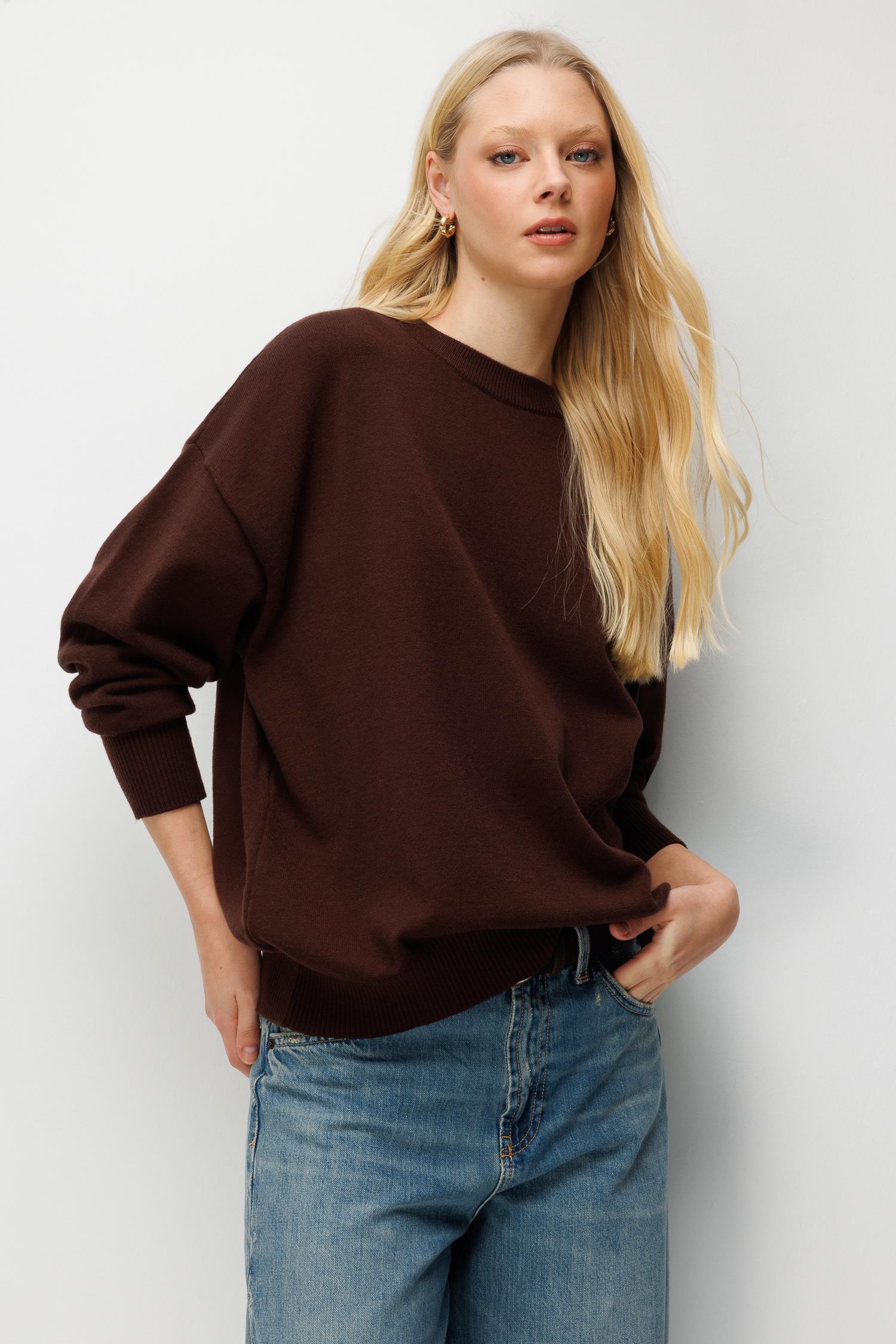 7021 Kadın Bisiklet Yaka Oversize Basic Premium Triko Kazak Kahve (K26KZK7021-120)