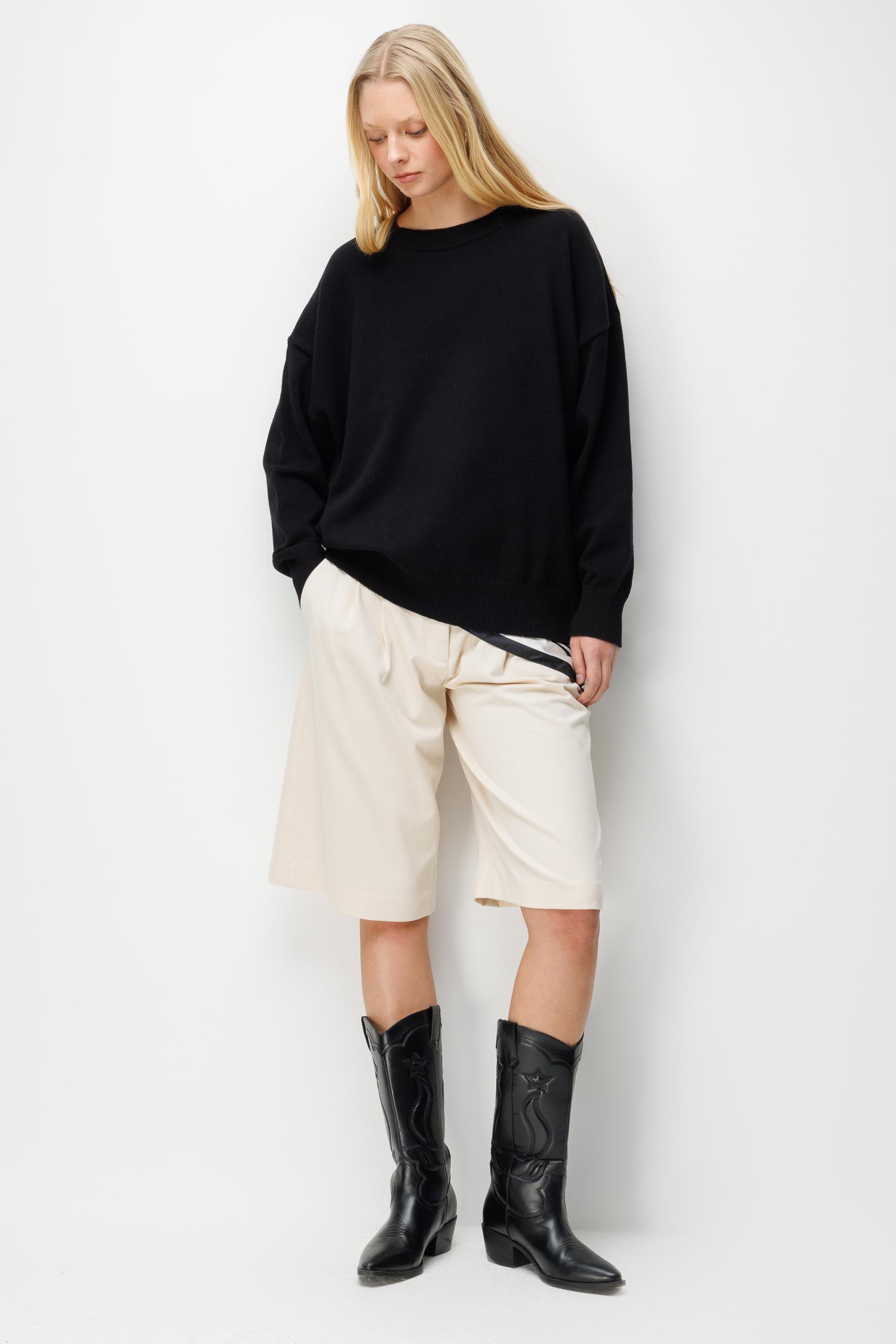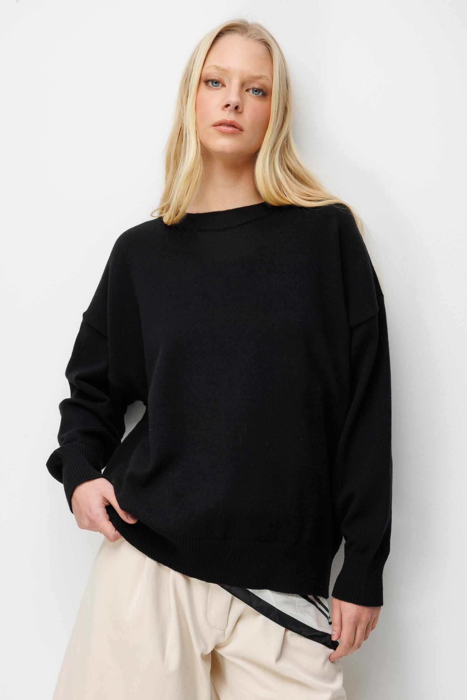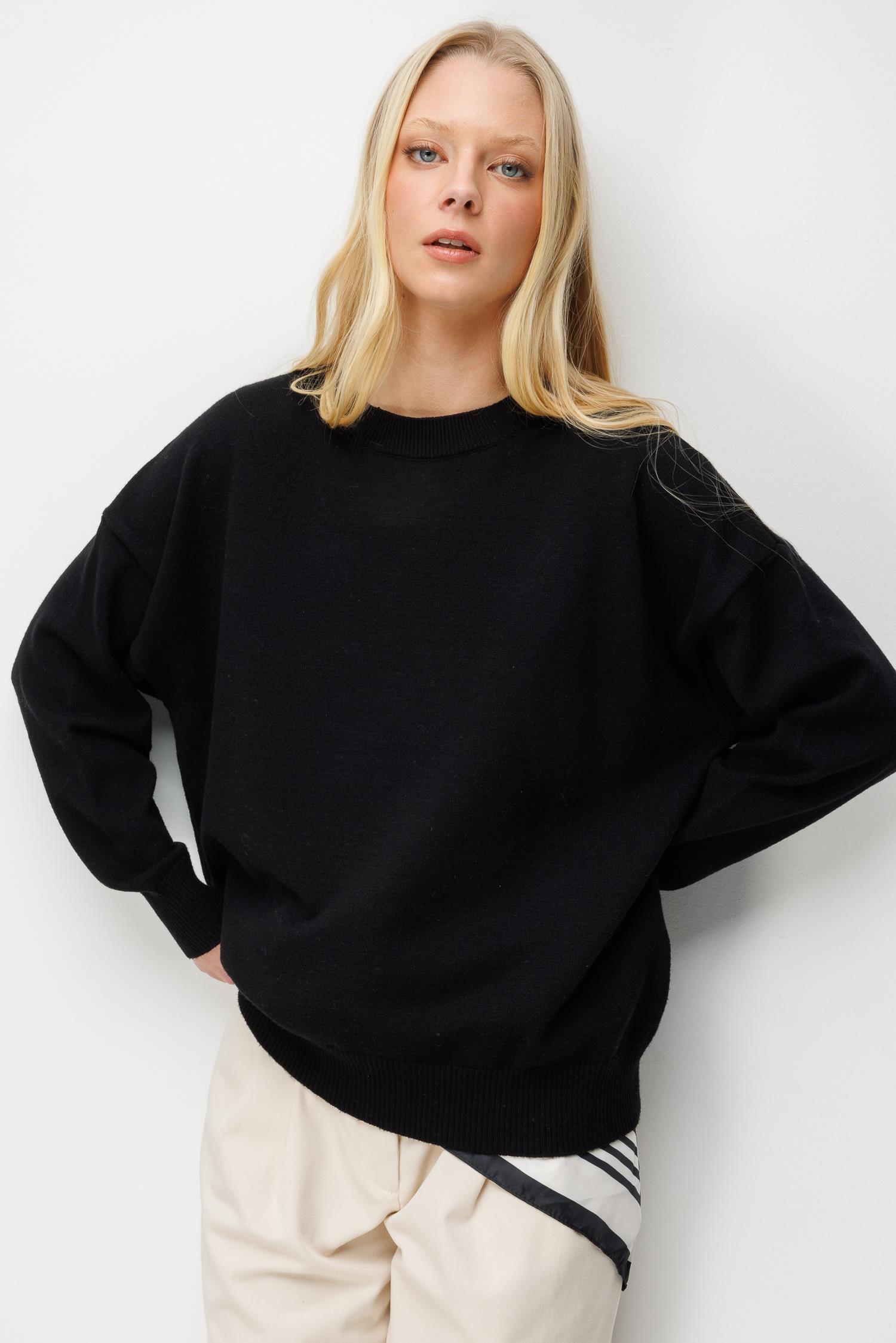 7021 Kadın Bisiklet Yaka Oversize Basic Premium Triko Kazak Siyah (K26KZK7021-001)