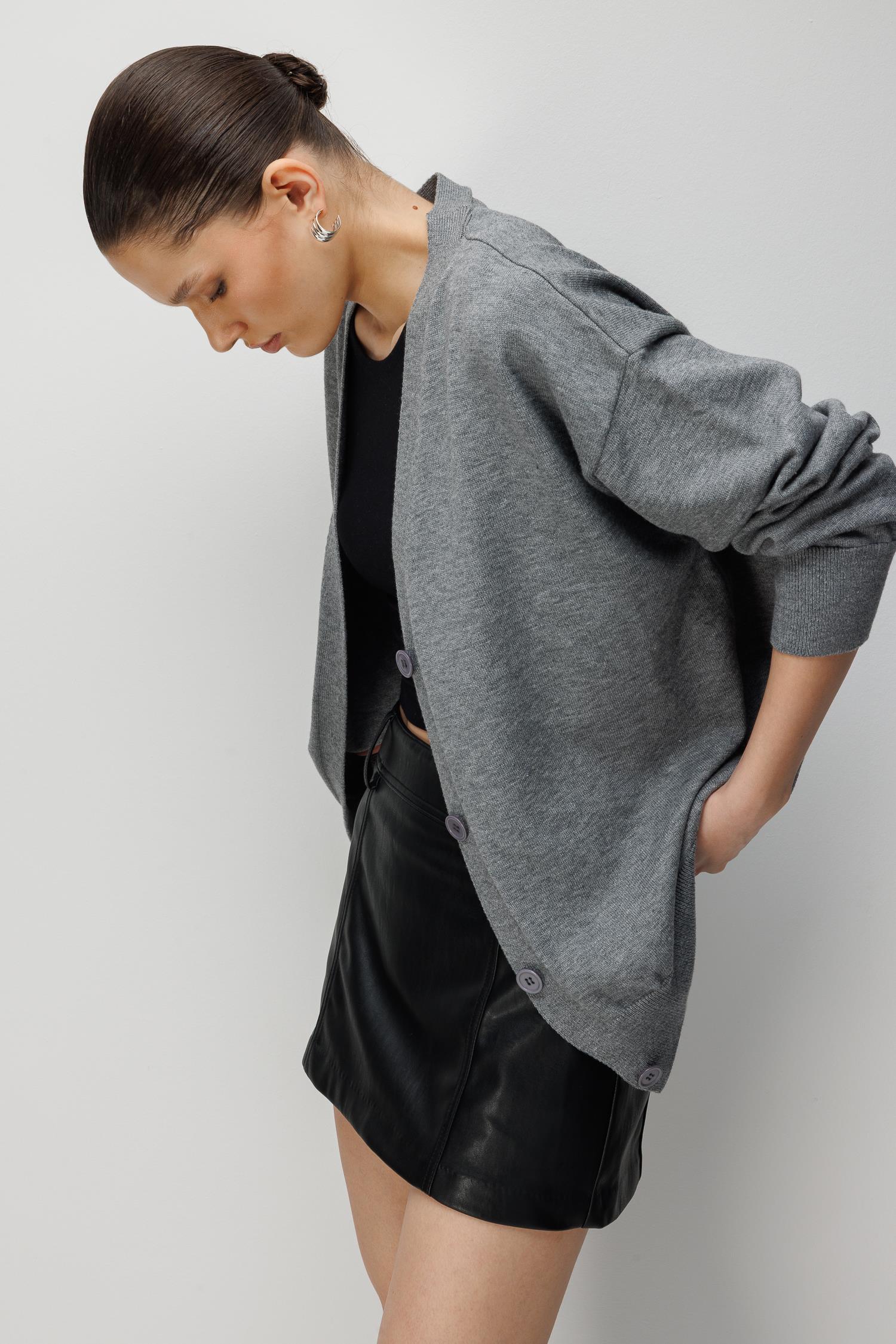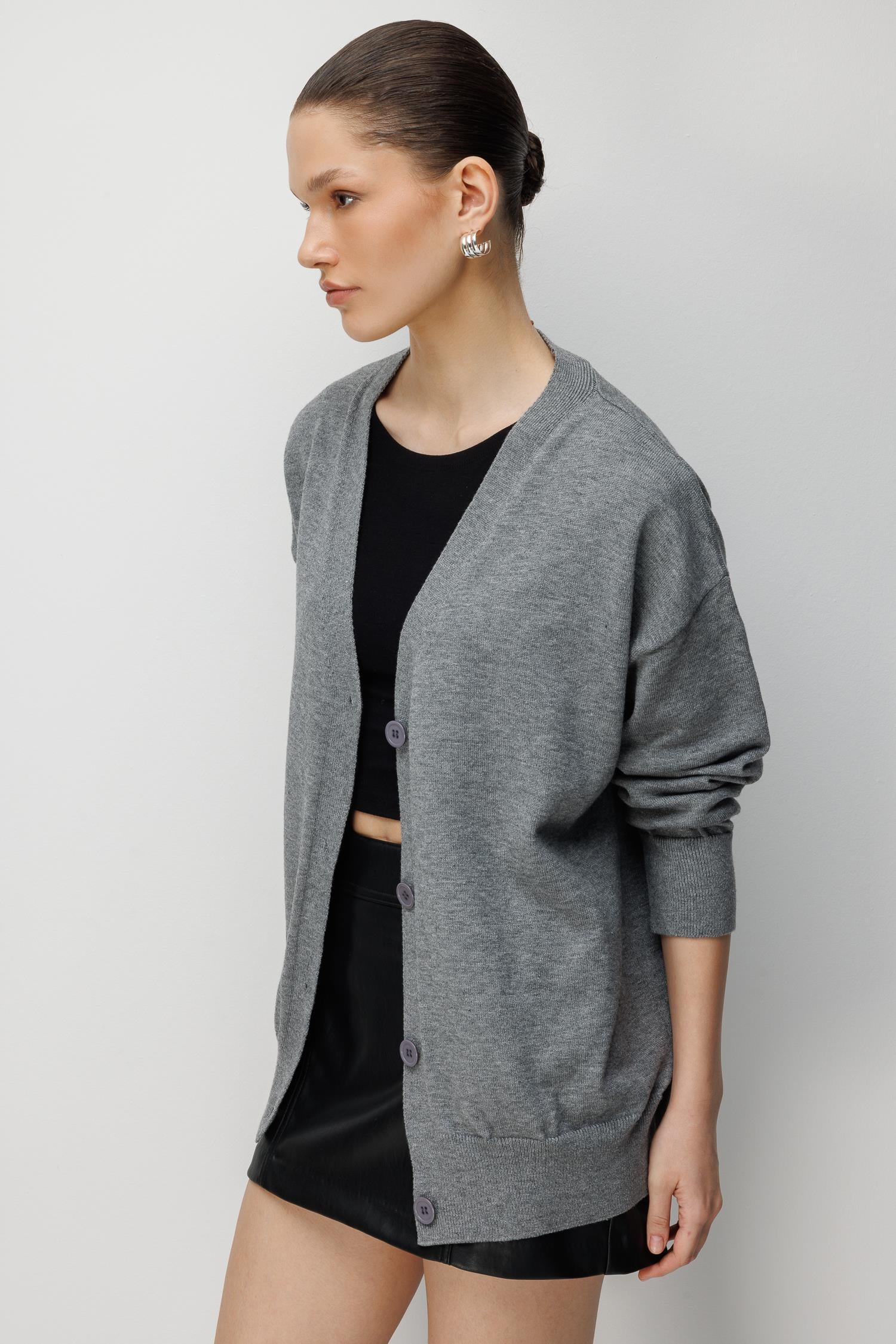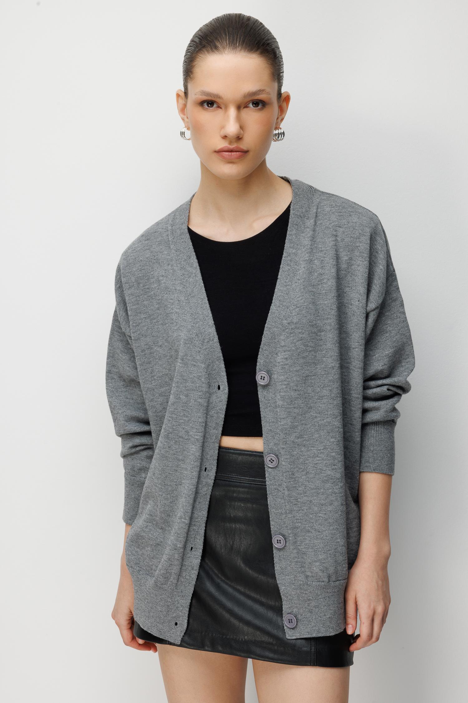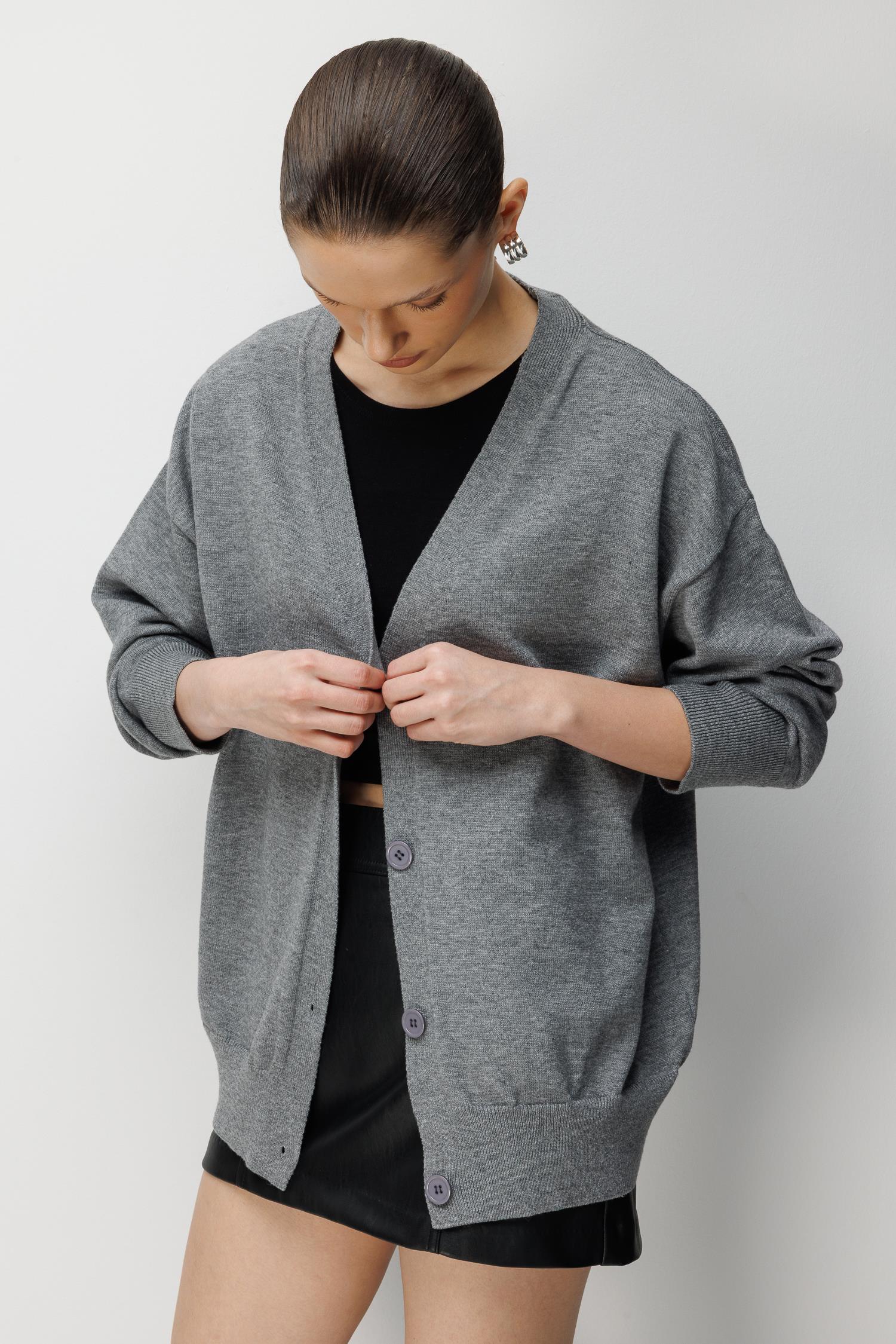 7023 Kadın Düğmeli Basic Premium Hırka Antrasit (K26HRK7023-108)