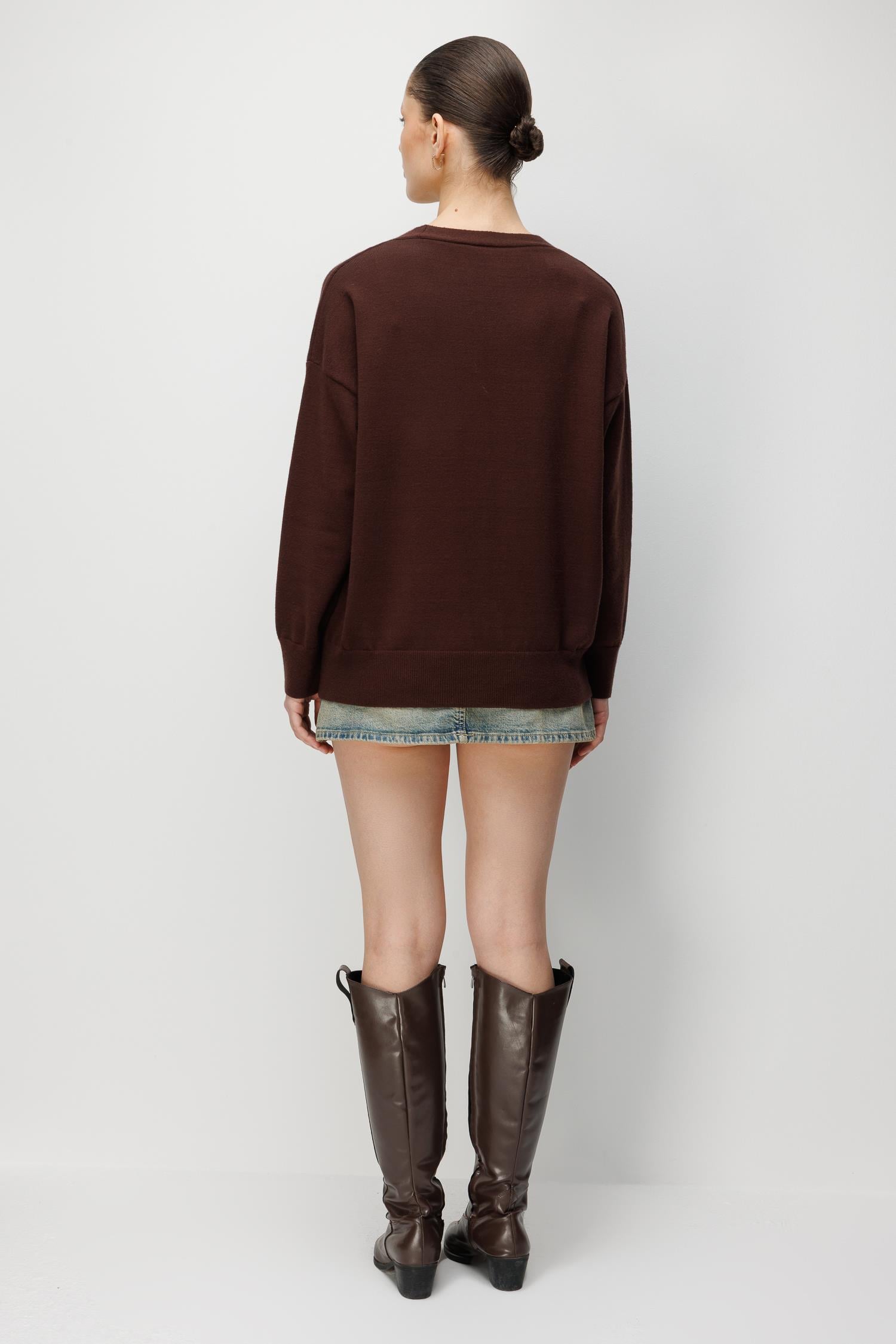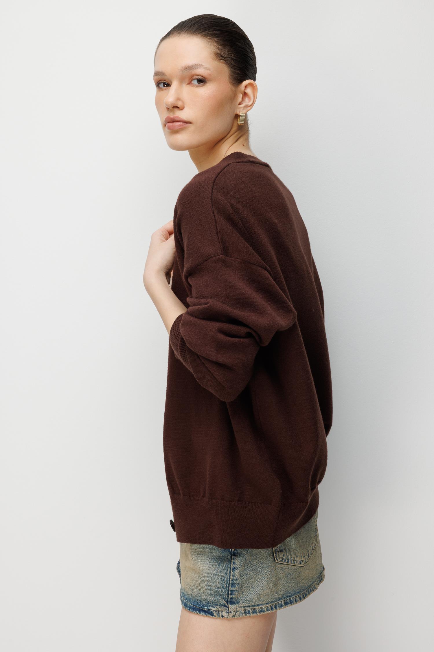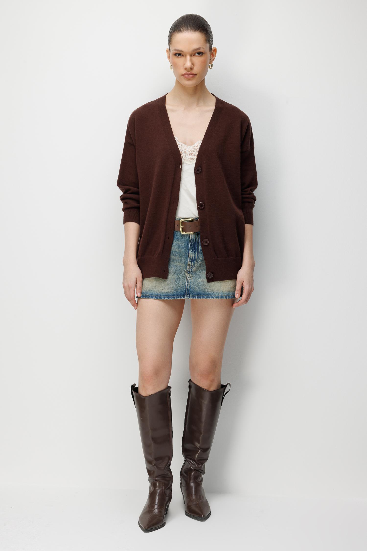 7023 Kadın Düğmeli Basic Premium Hırka Kahve (K26HRK7023-120)