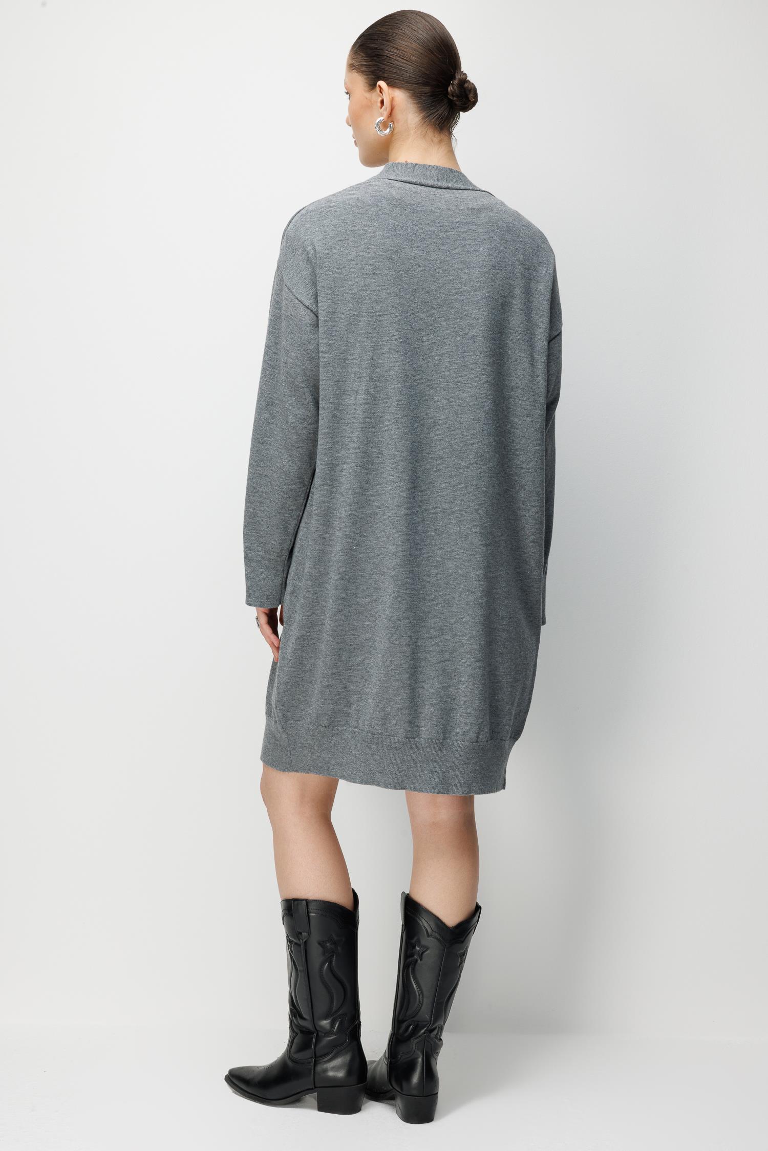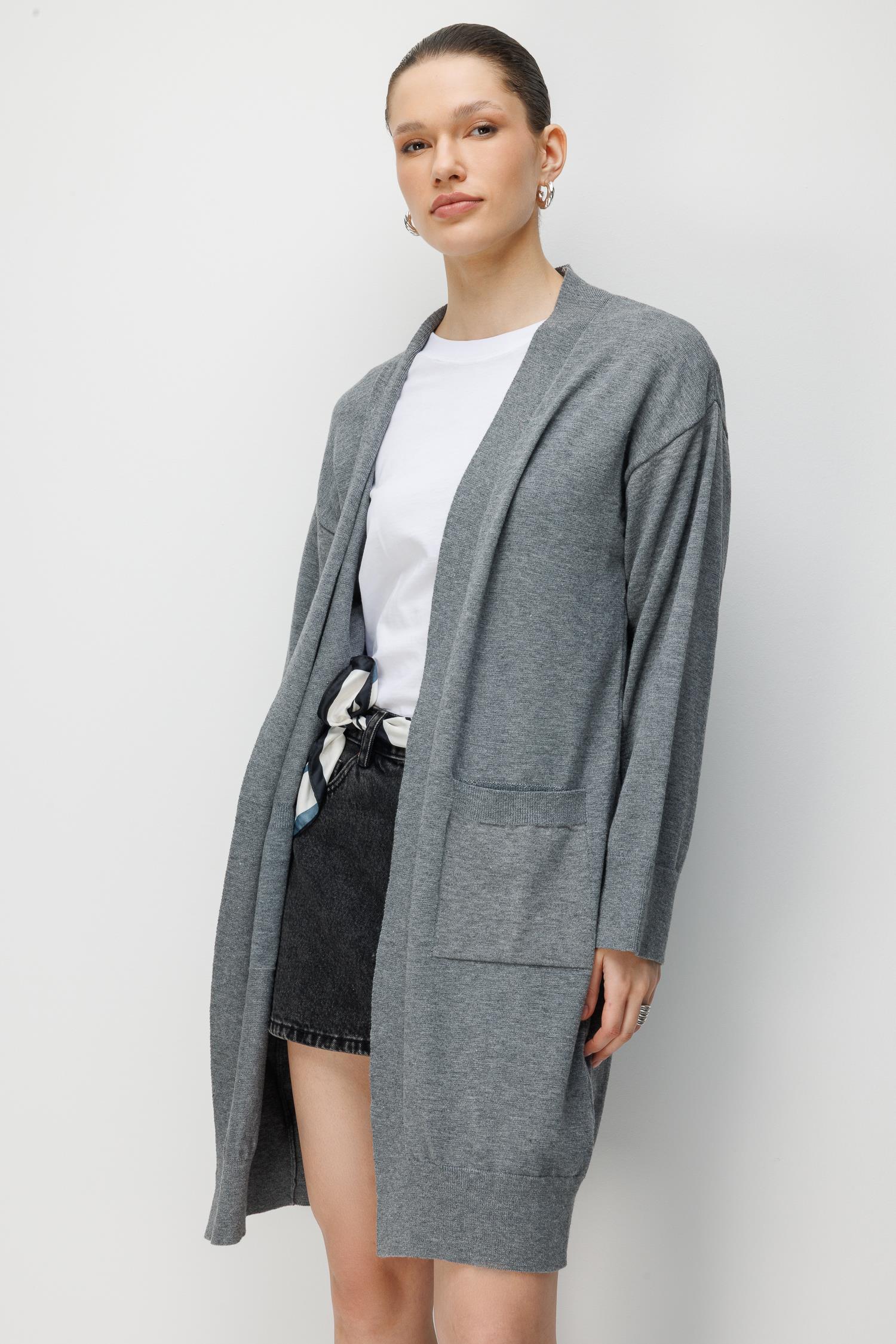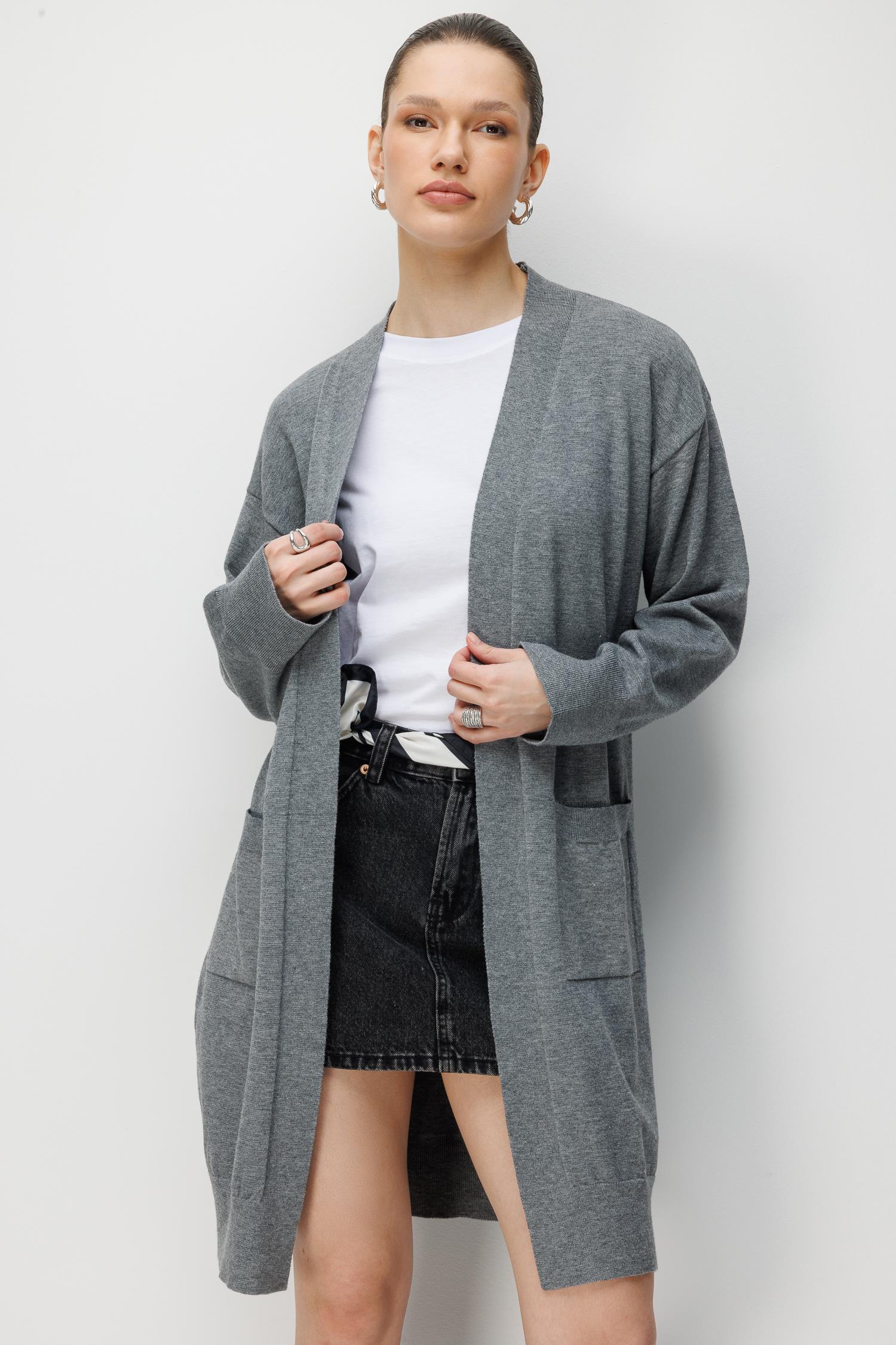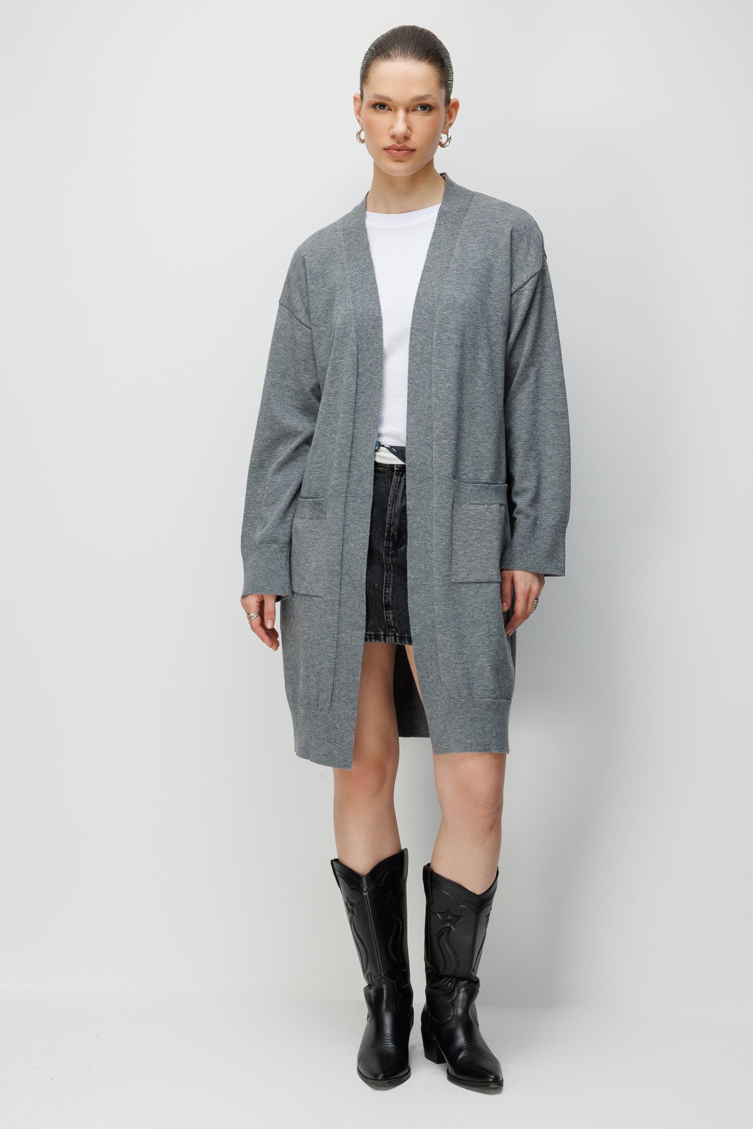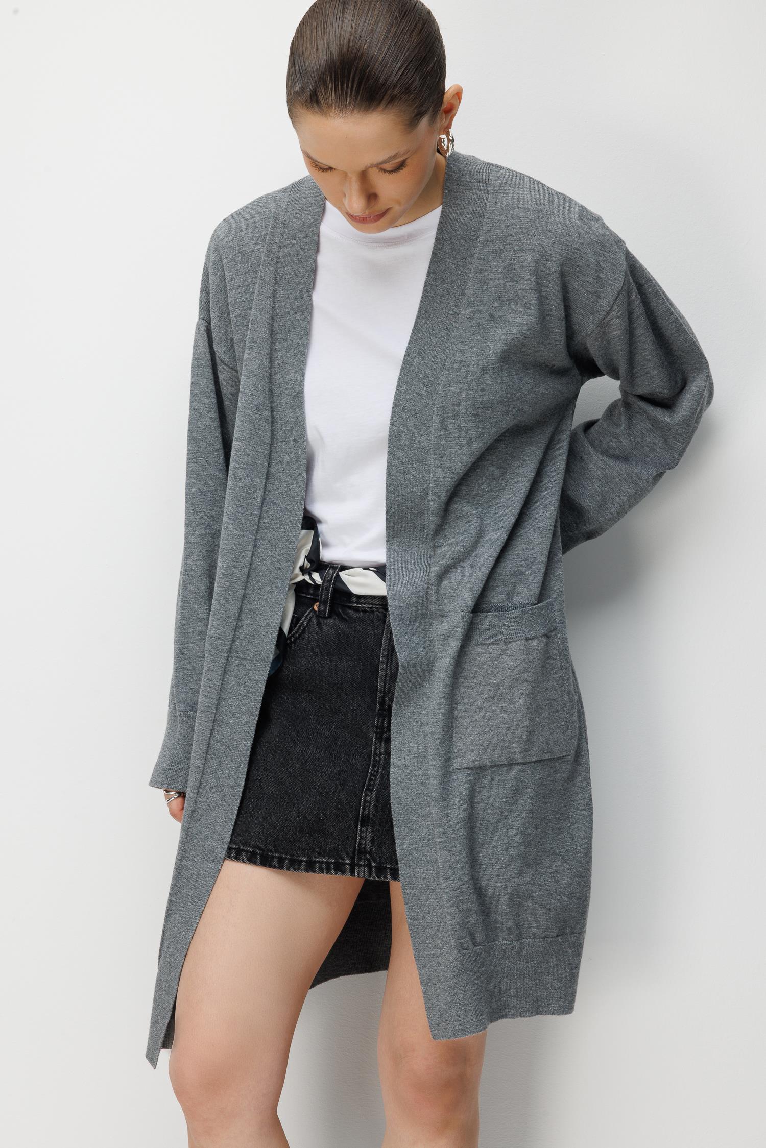 7026 Kadın Basic Cepli Triko Hırka Antrasit (K26HRK7026-108)