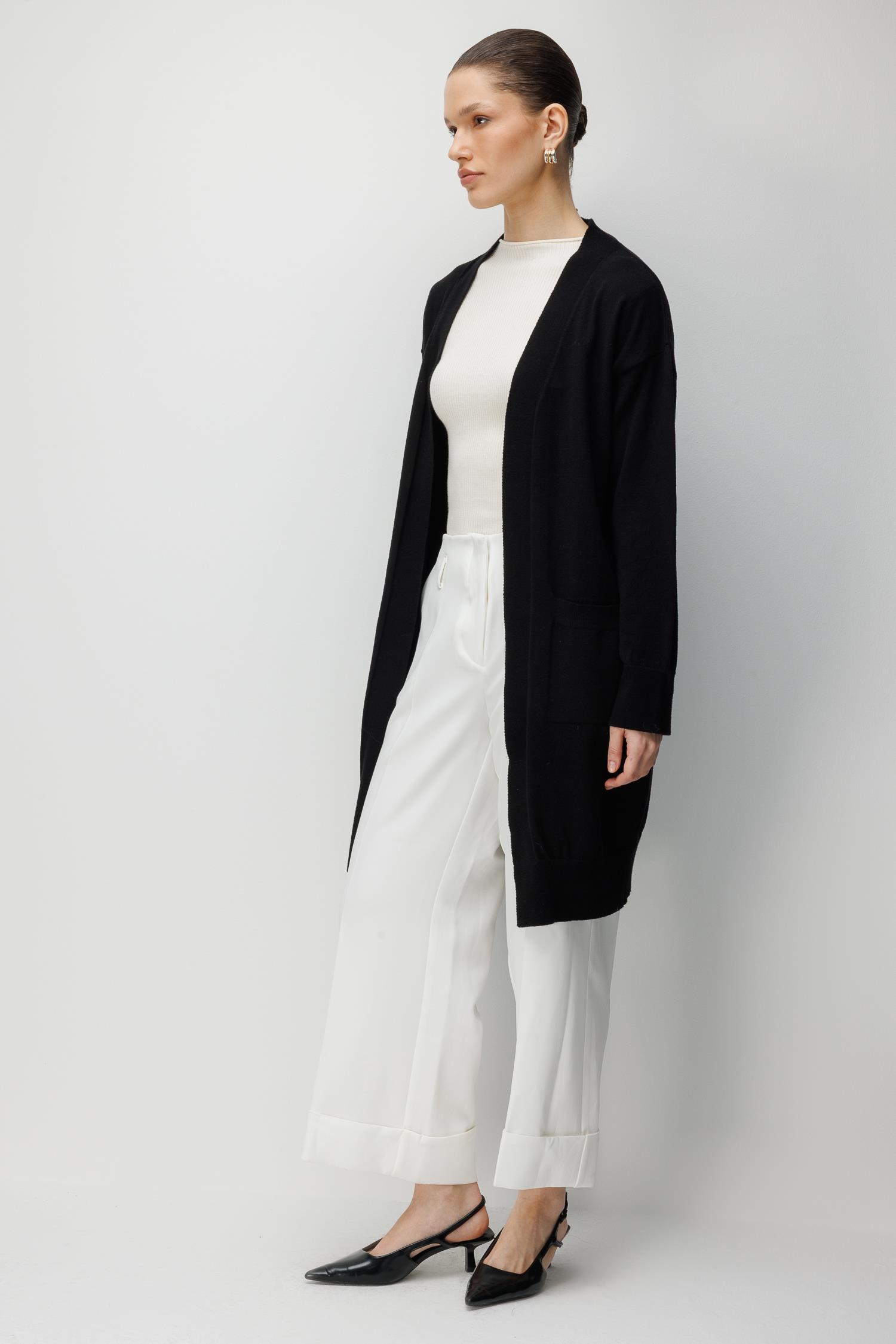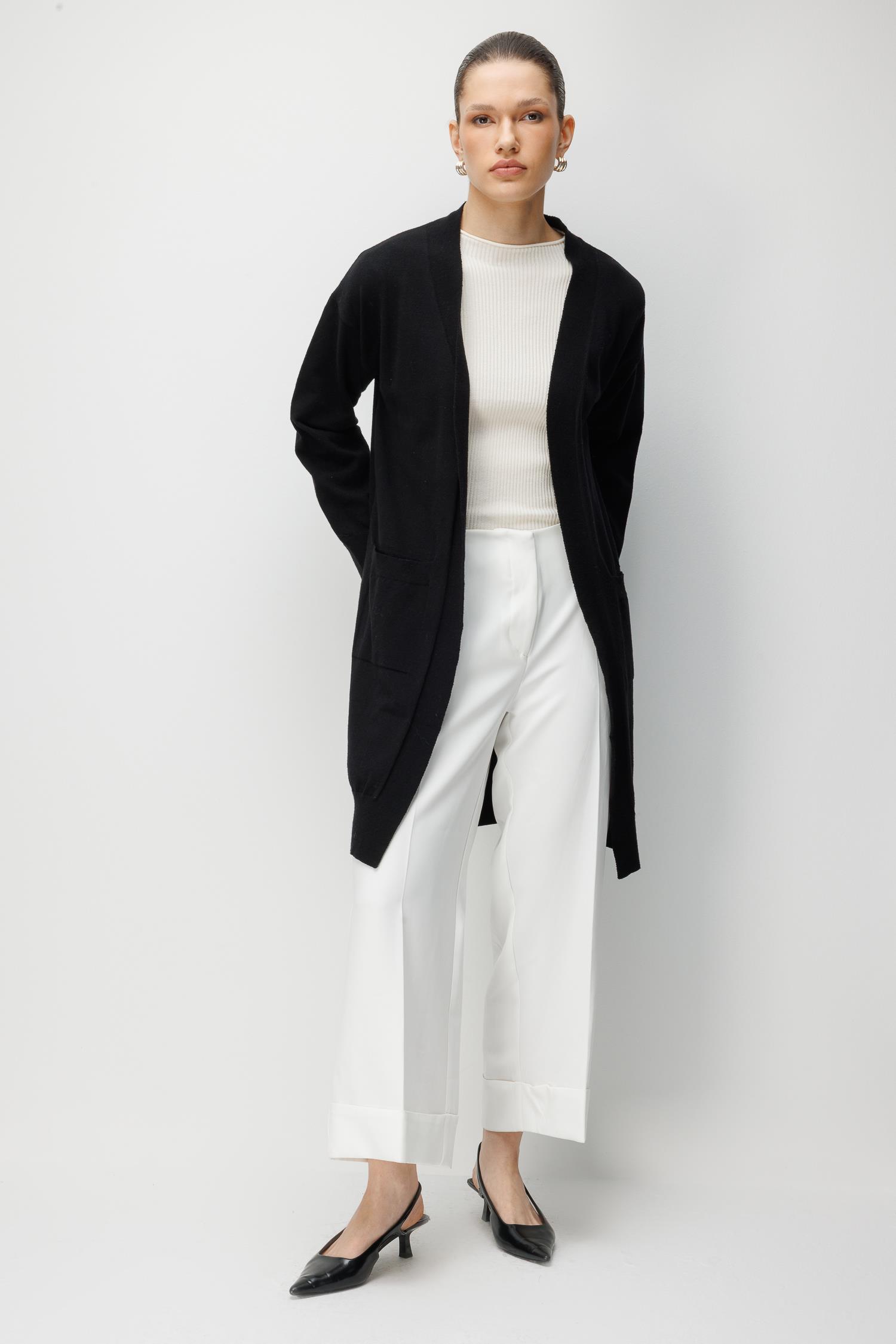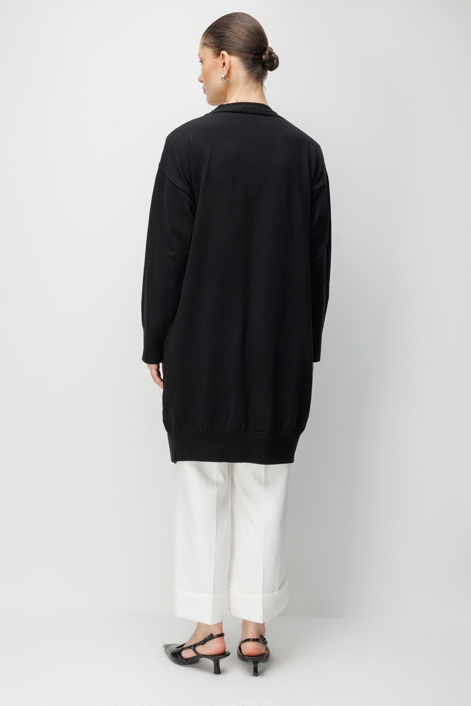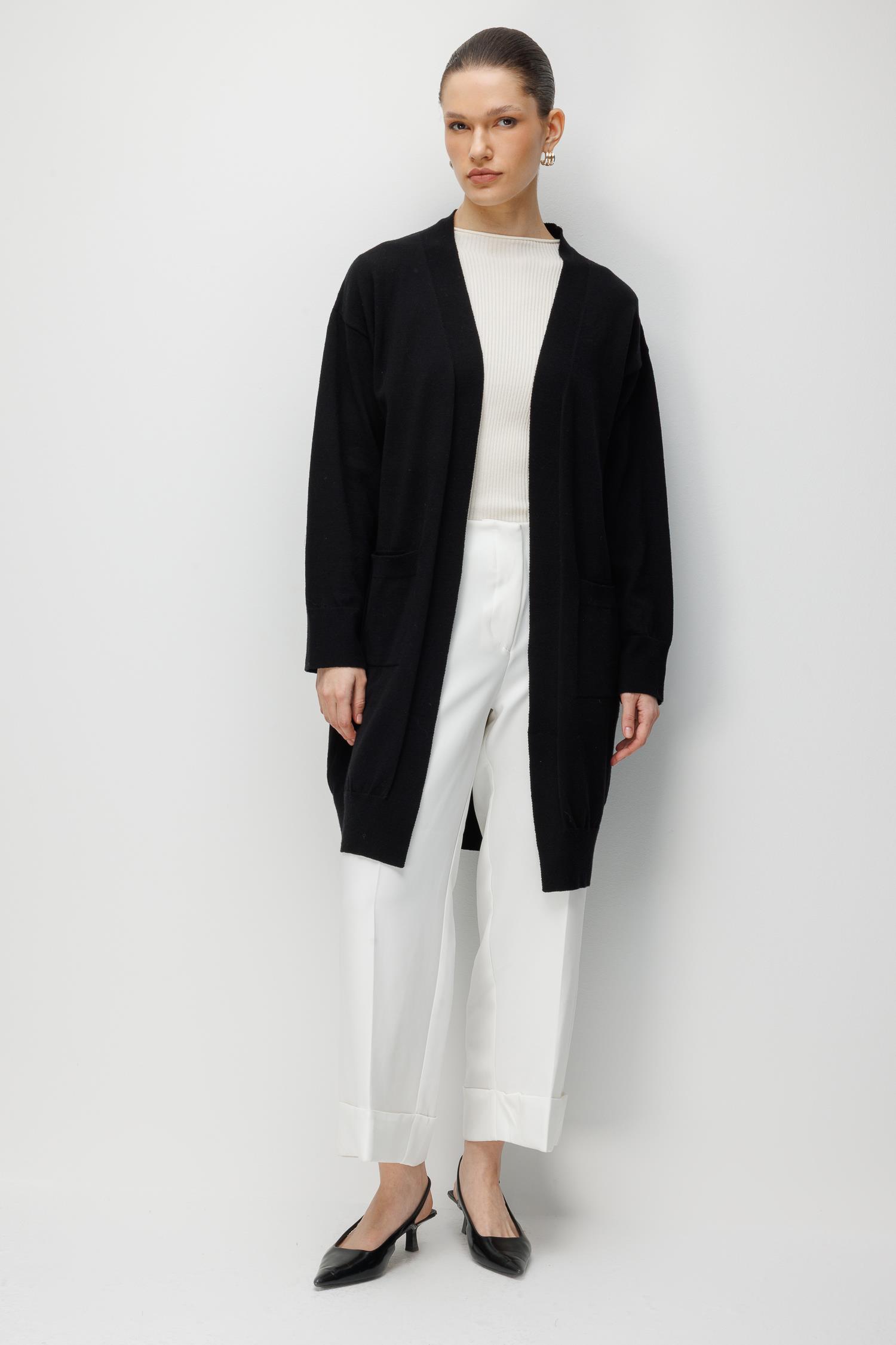 7026 Kadın Basic Cepli Triko Hırka Siyah (K26HRK7026-001)