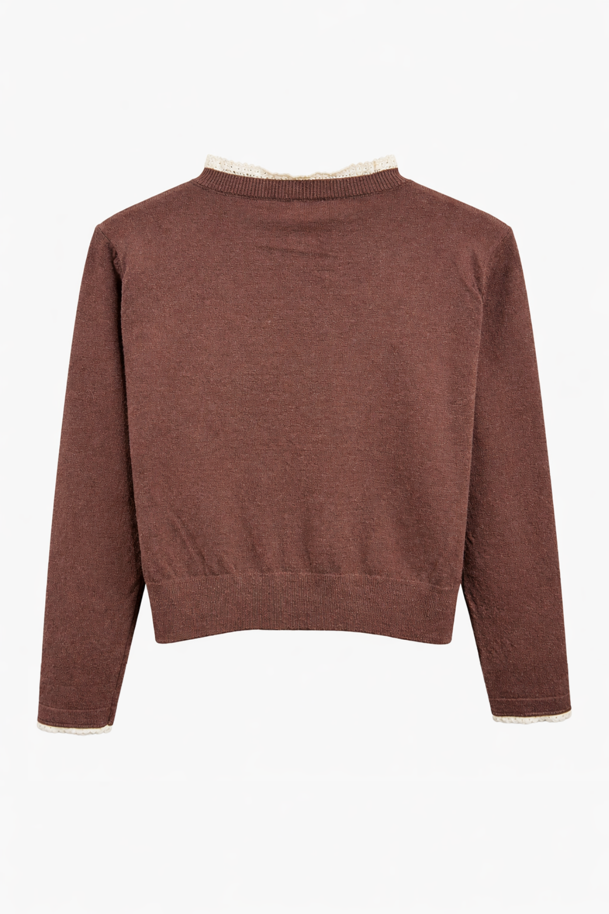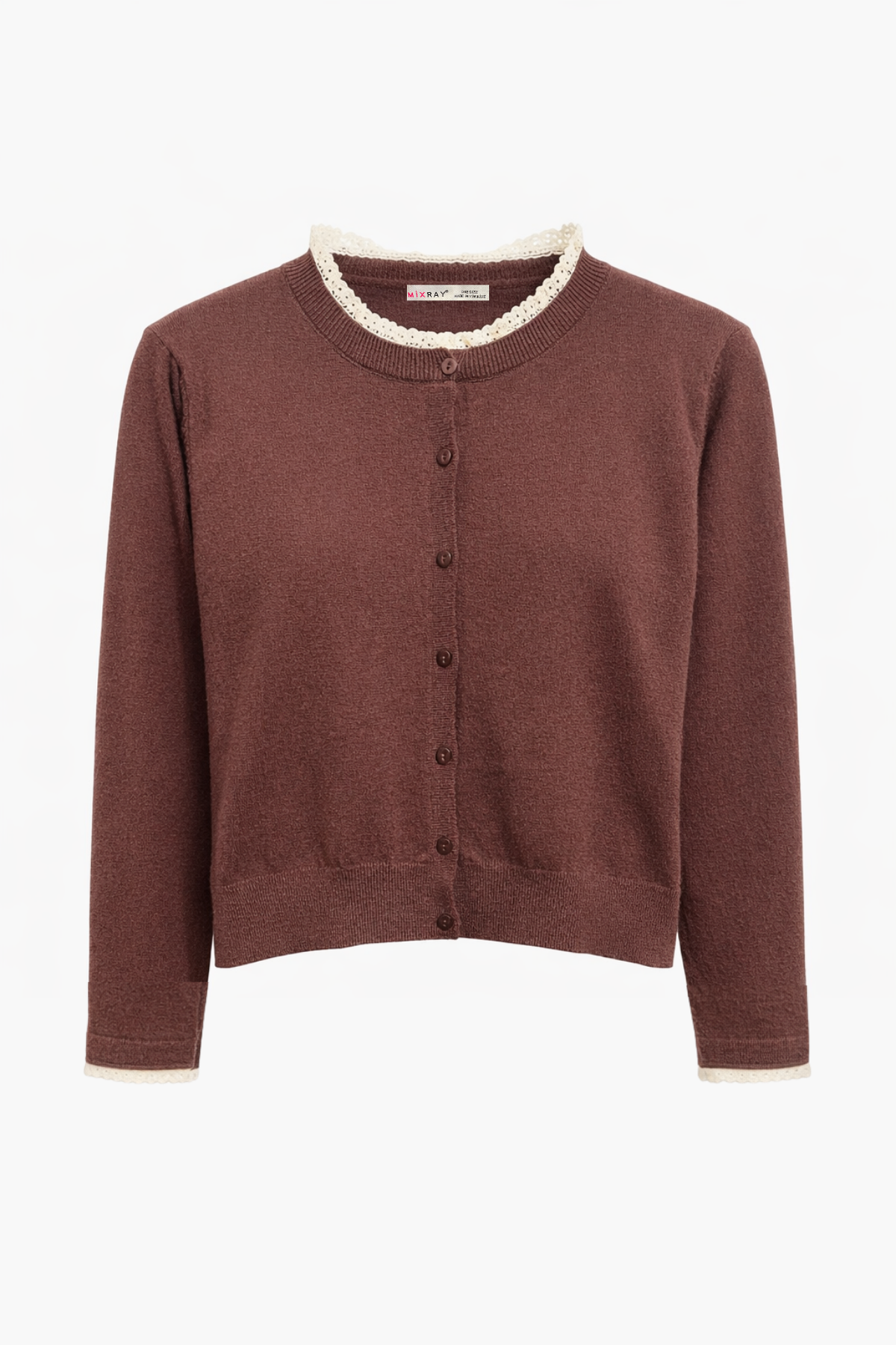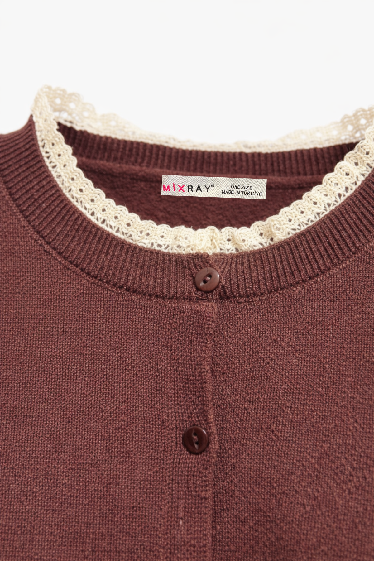 7027 Kadın Dantelli Basic Triko Hırka Kahve (K26HRK7027-120)