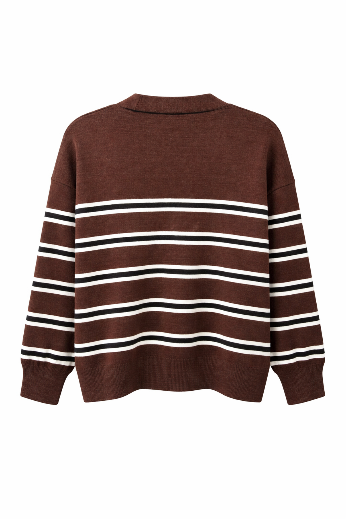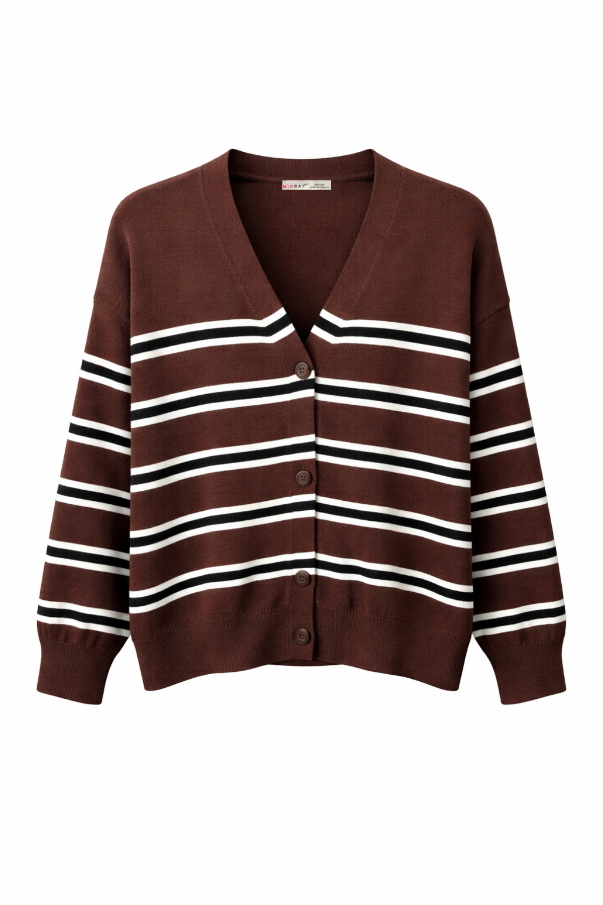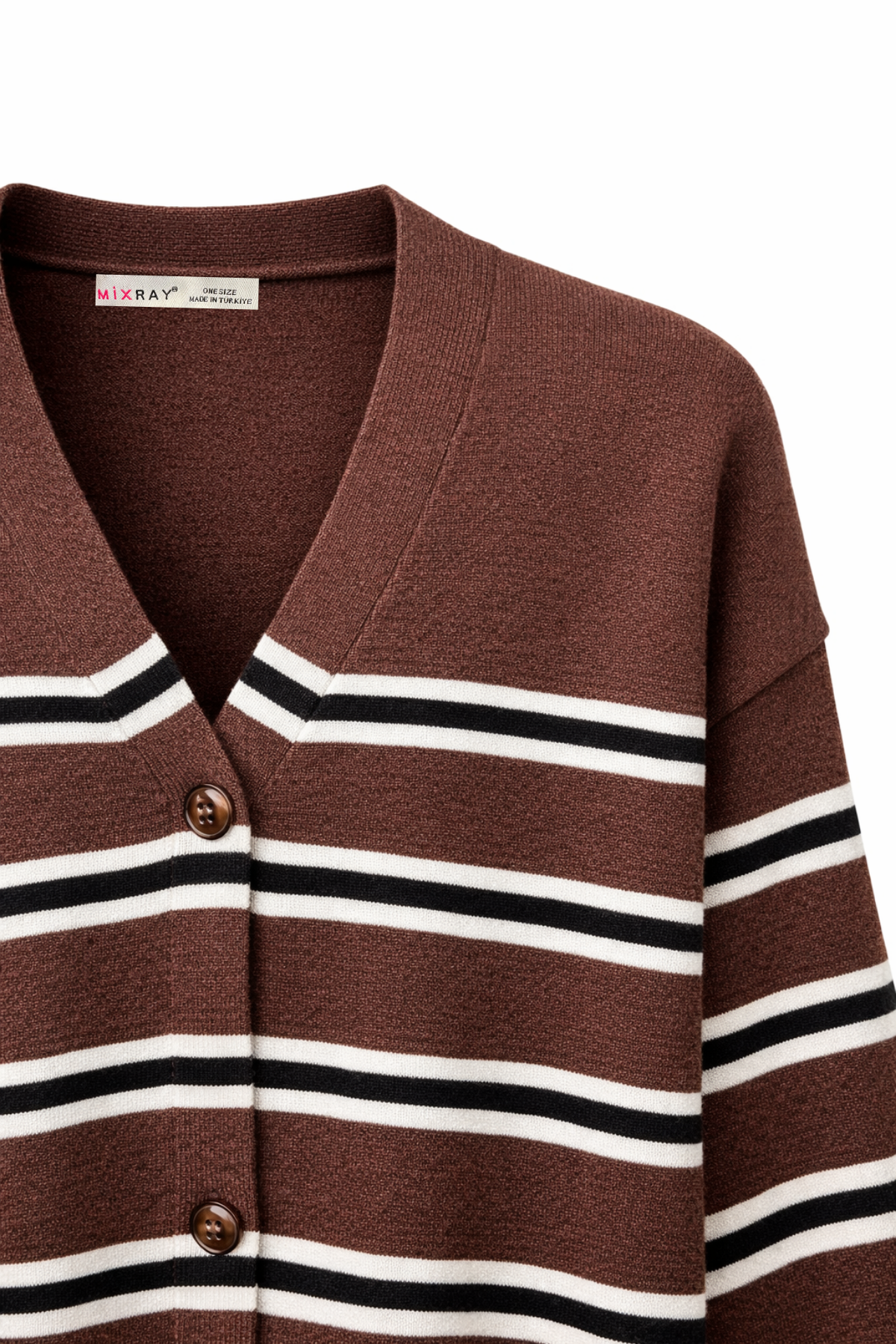 7028 Kadın Çizgili Basic Triko Hırka Çi.Kahve (K26HRK7028-225)