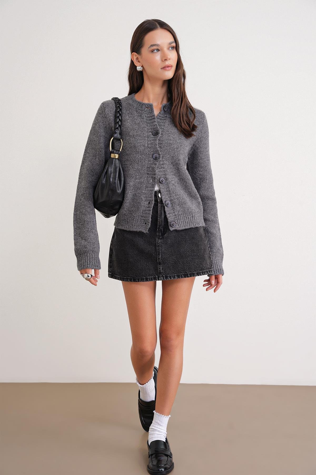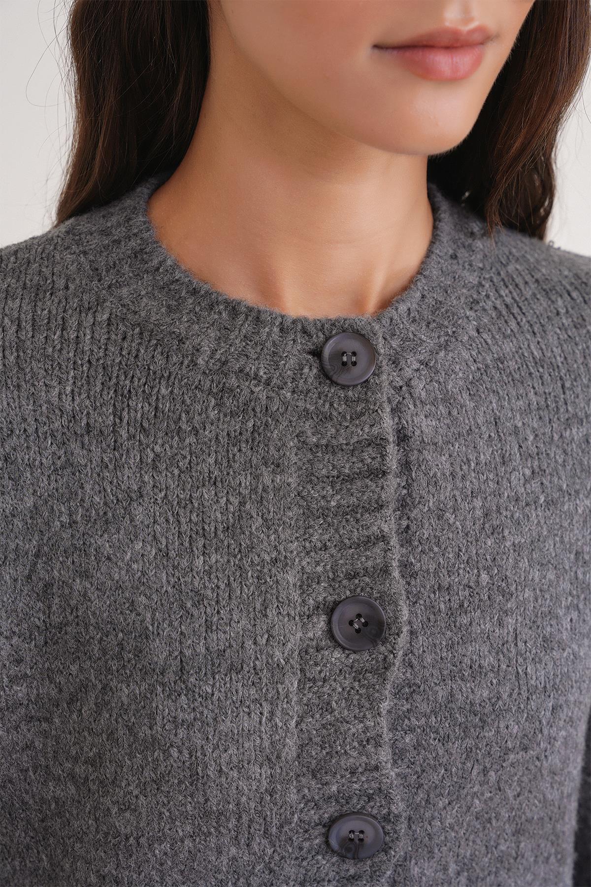 6951 Kadın Bisiklet Yaka Düğmeli Triko Kısa Hırka Antrasit (K25HRK6951-108)