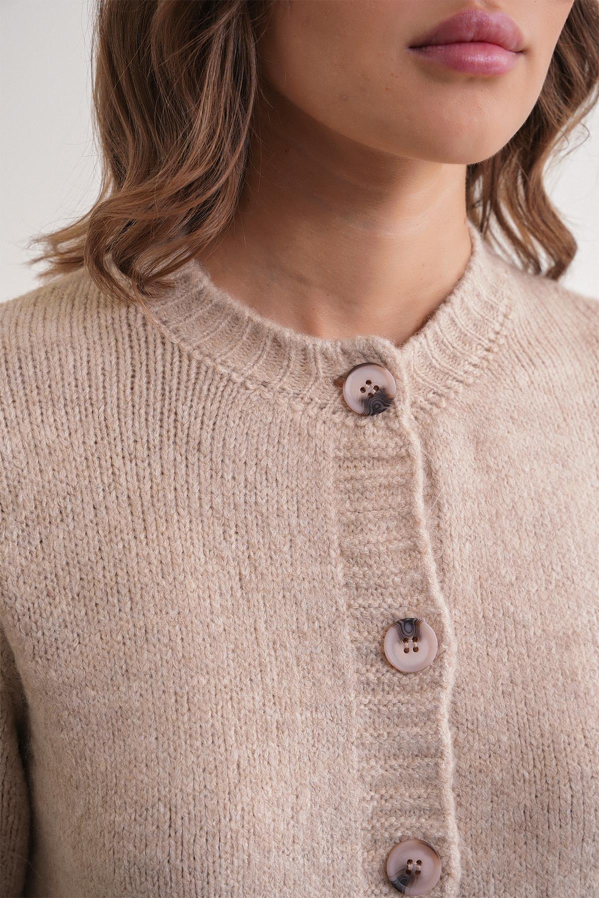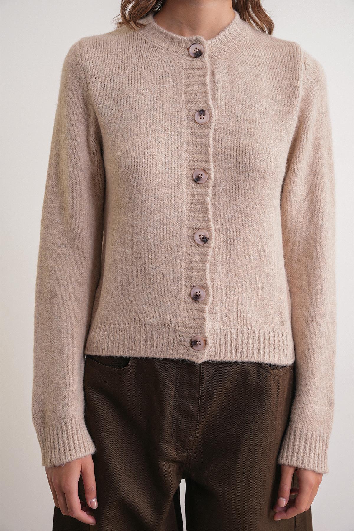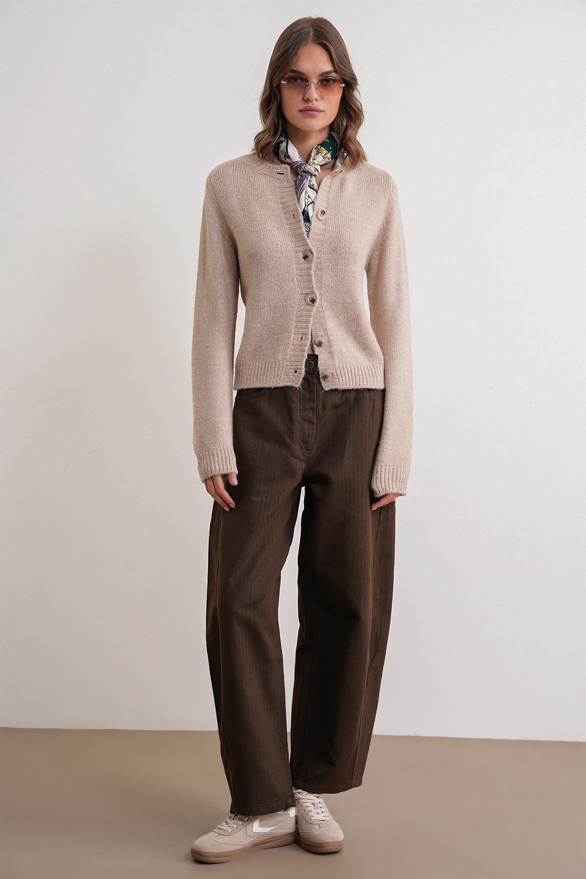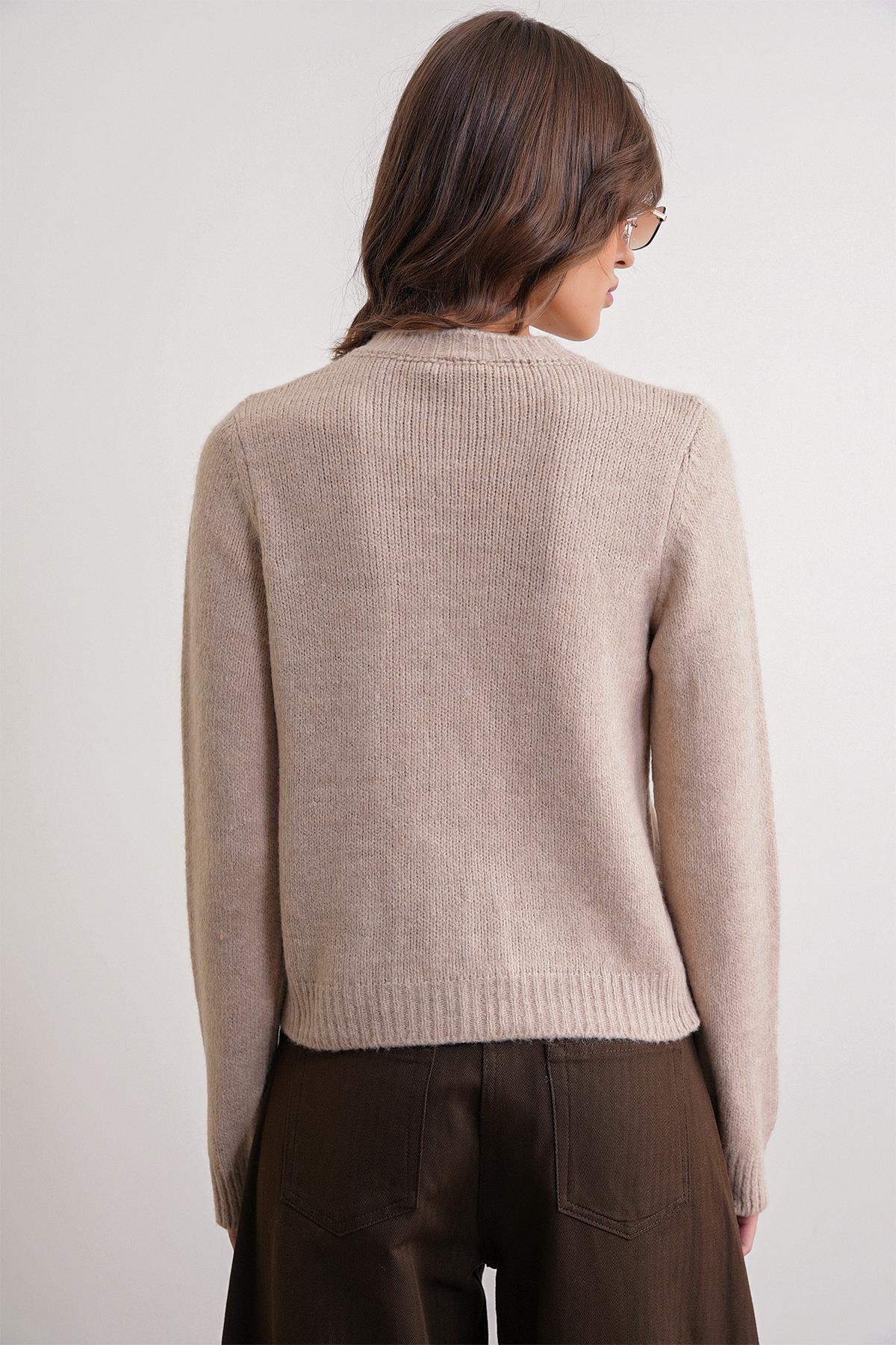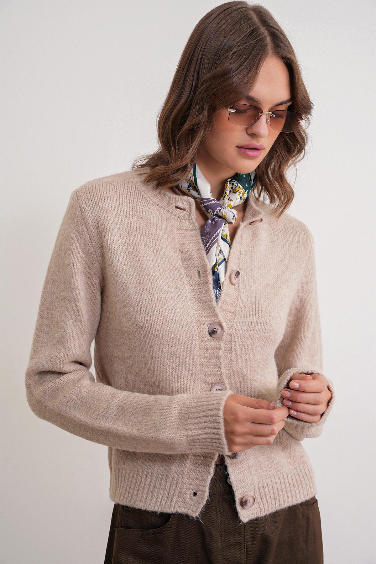6951 Kadın Bisiklet Yaka Düğmeli Triko Kısa Hırka Bej (K25HRK6951-125)