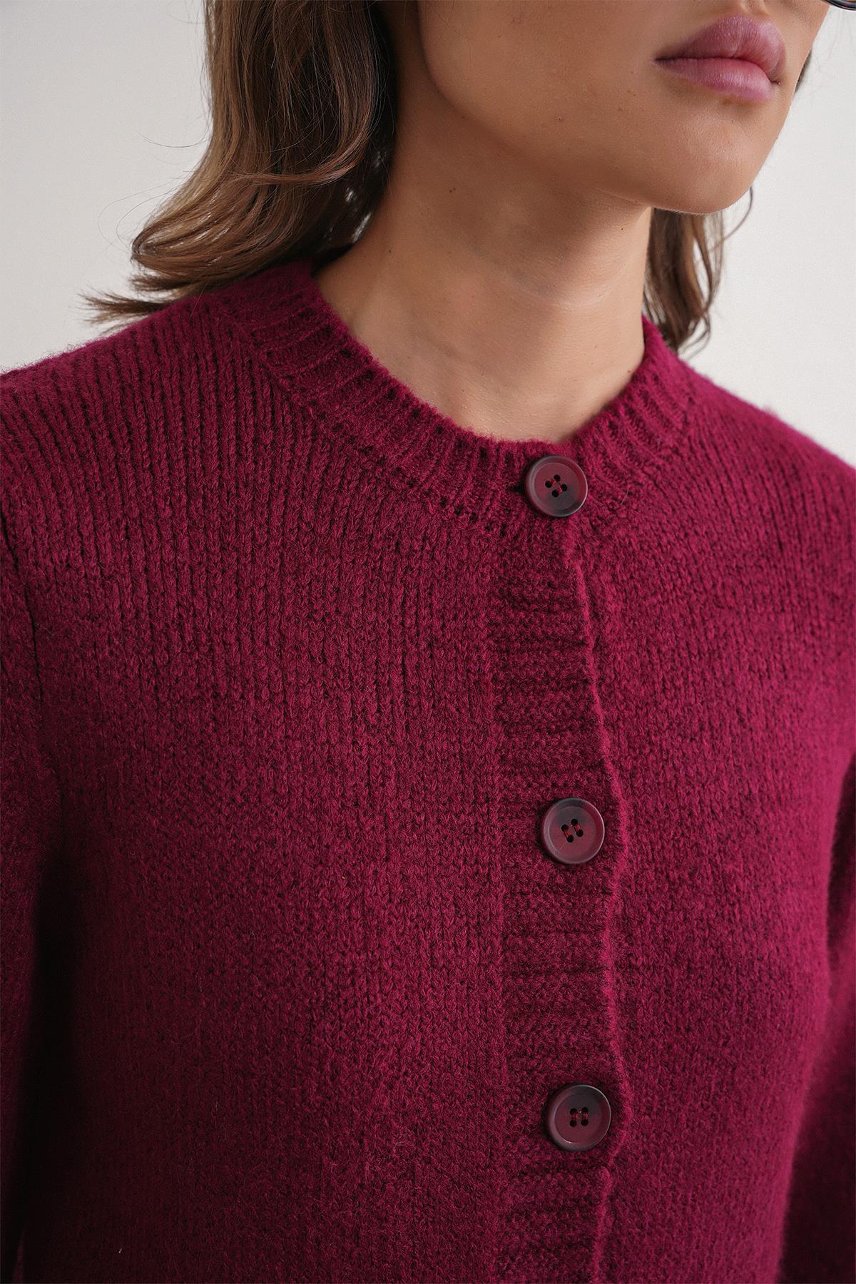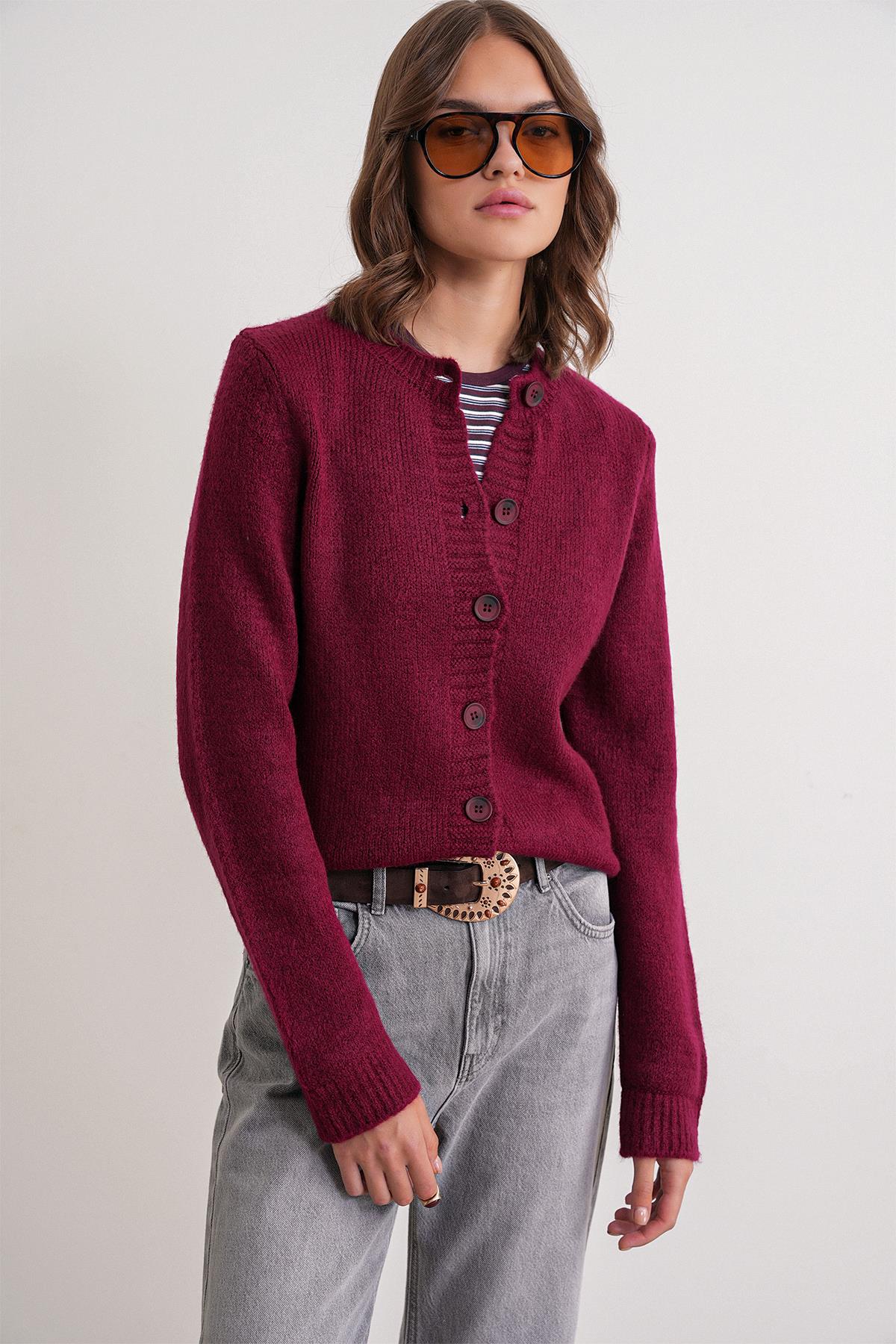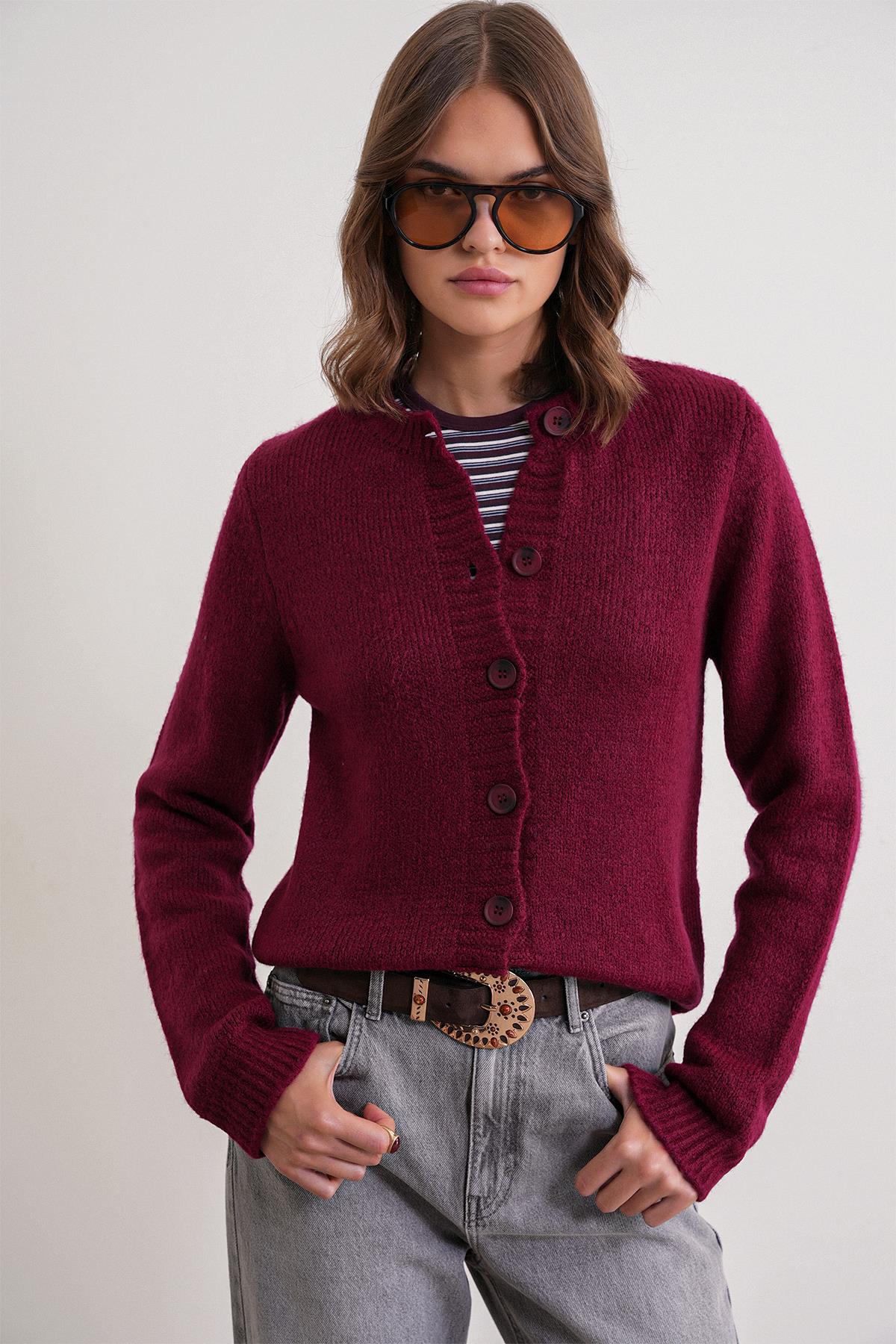 6951 Kadın Bisiklet Yaka Düğmeli Triko Kısa Hırka Bordo (K25HRK6951-128)
