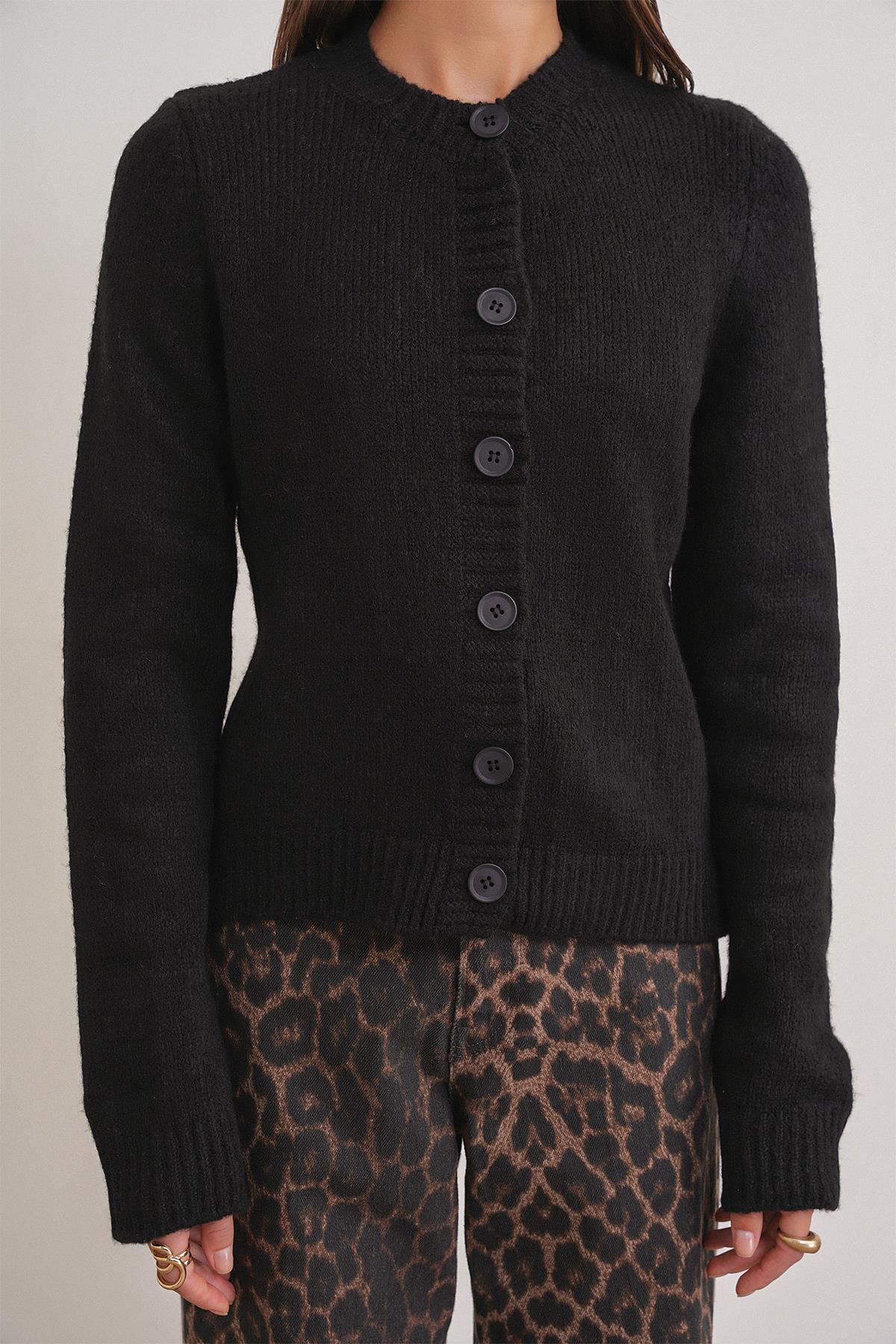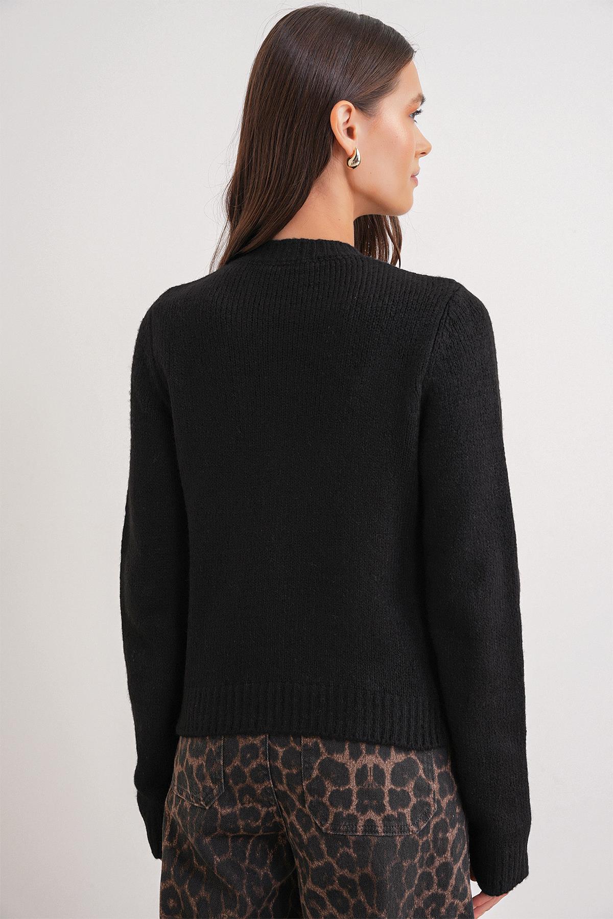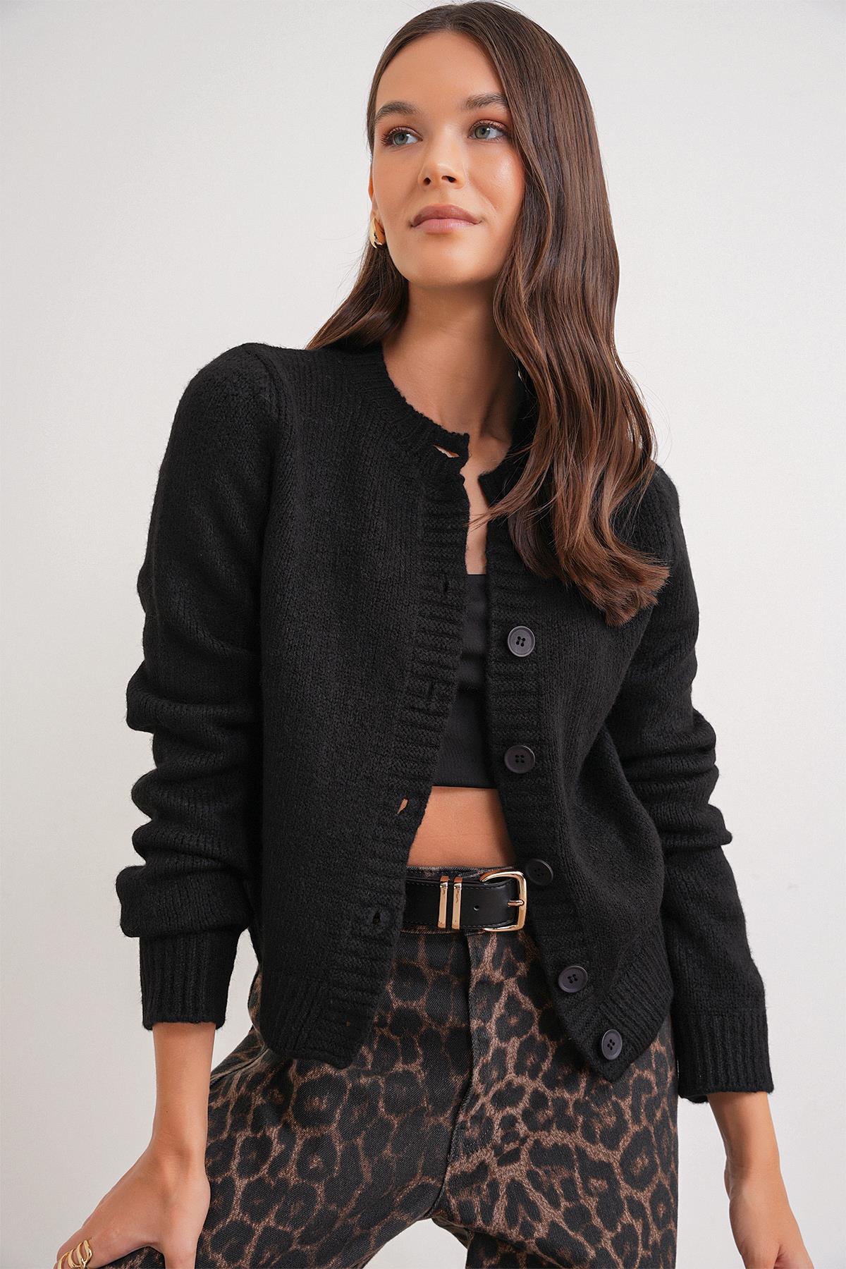 6951 Kadın Bisiklet Yaka Düğmeli Triko Kısa Hırka Siyah (K25HRK6951-001)